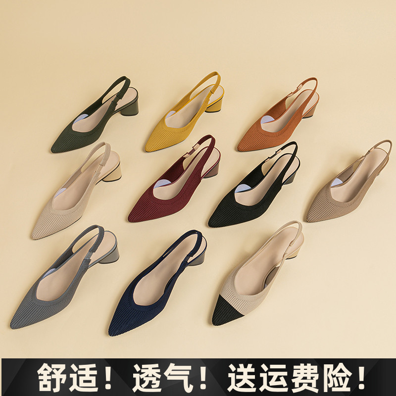 Princess shoes sandals women's 2024 new versatile flying weave hollow toe back mix belt thick heel pointed toe mid-heel work shoes