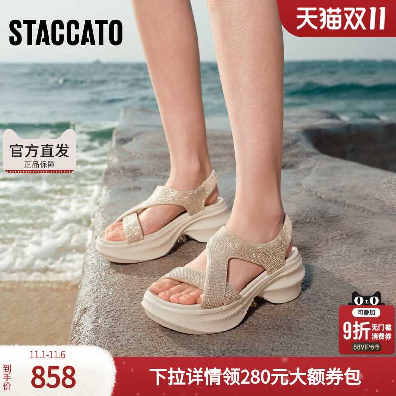 Belle platform rhinestone French casual sports sandals 2025 summer new heightening shoes E2W1DBL5