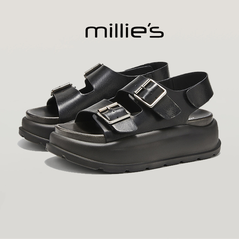 MILLIE'S/Miao Li Open Toe Thick Sole Heightened Super Fire Sandals Leather Buckle 2025 Summer New Women's Shoes Casual Shoes