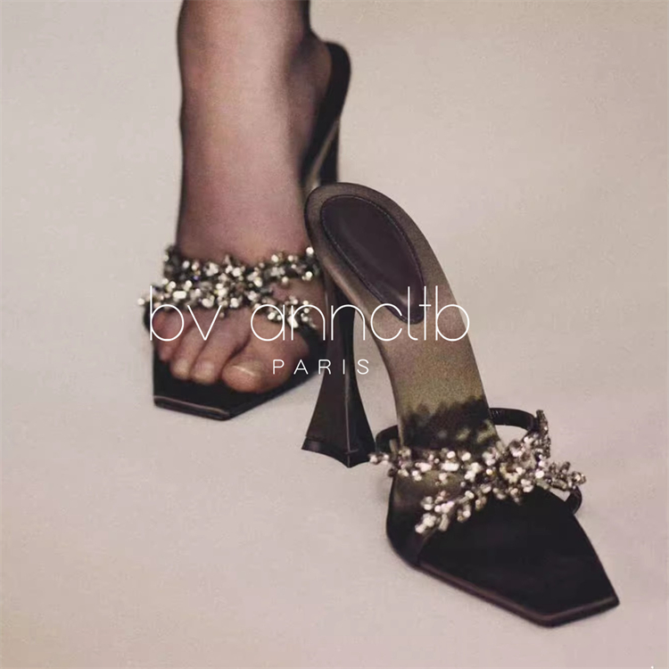 BV AnnCLTB French Satin Rhinestone Sandals Women's Summer Poplar Forest Same Sexy Cross Strap High Heeled Sandals