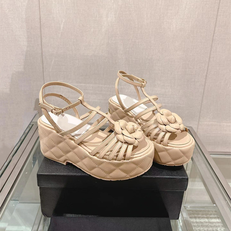 2025 New Genuine Leather Open Toe Sandals Women's Platform Heightened Casual Shoes Wedge Camellia Summer Wear Women's Shoes White