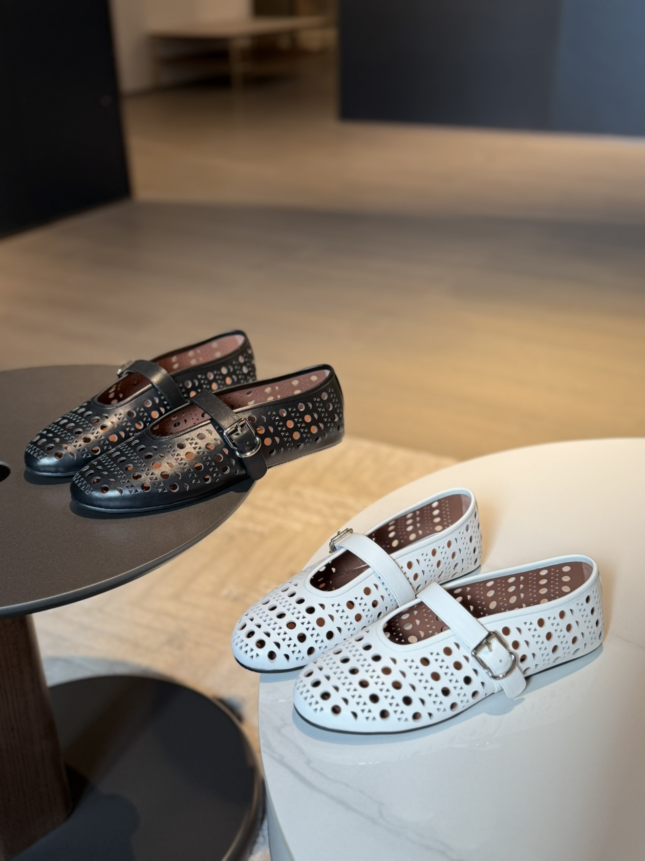 Relaxation|Handmade hollow leather adjustment buckle breathable ballet flat Mary Jane shoes women's summer size 43