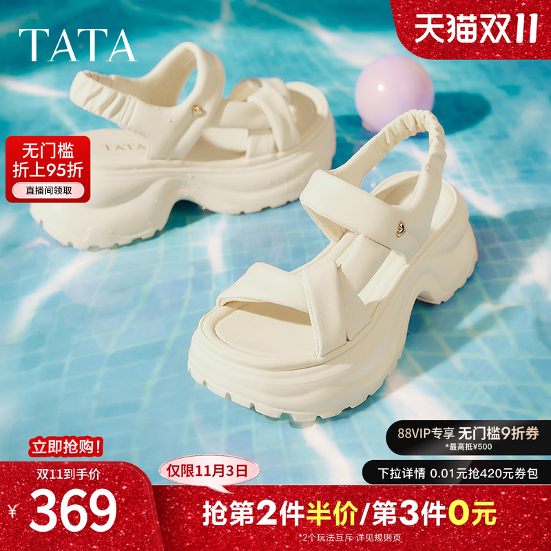 TATA He She Casual Sports Sandals Women's Shoes Platform Sole Comfortable Beach Sandals 2025 Summer New 7G304BL5