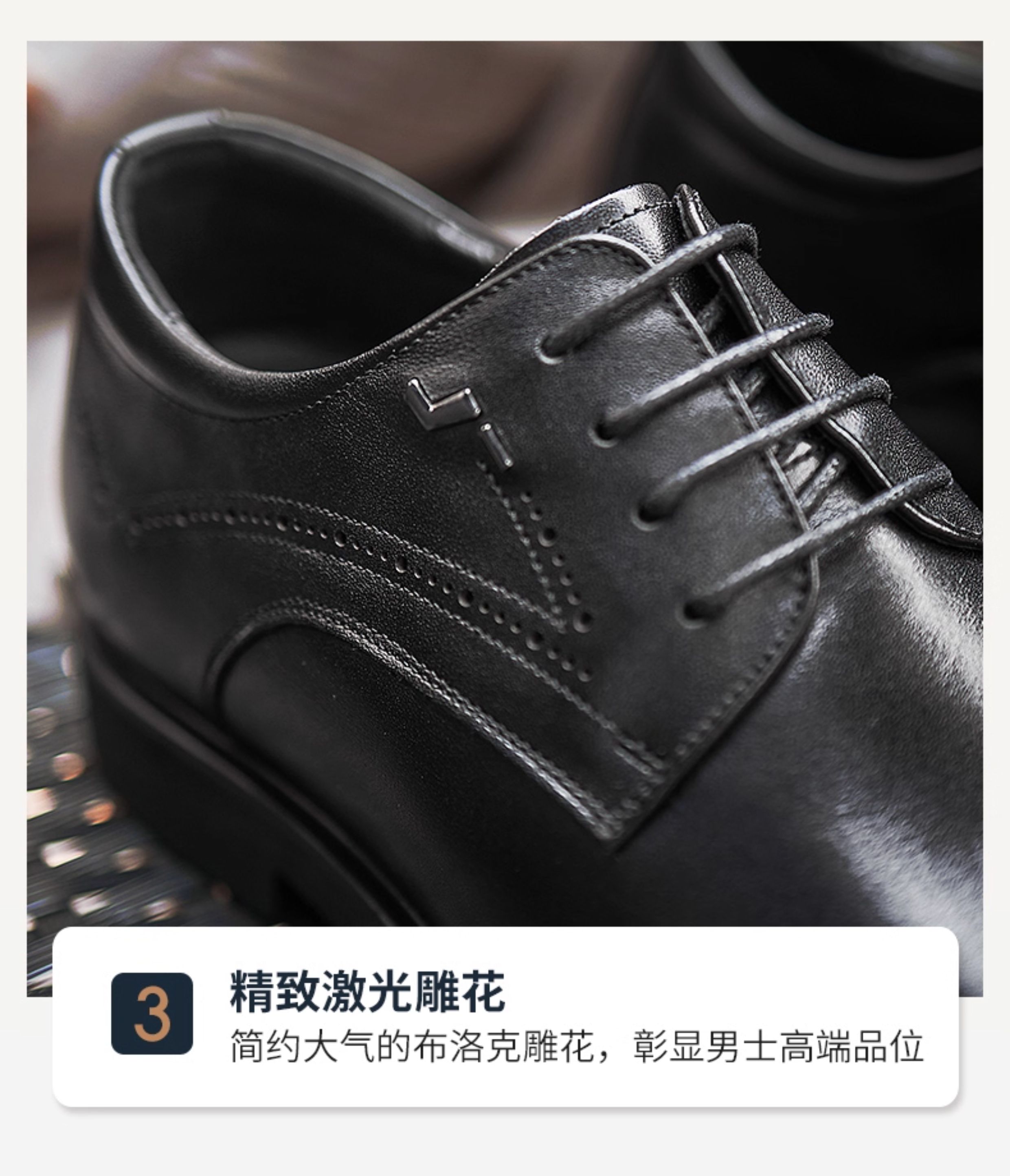 Gao Ge 8cm Height-Increasing Shoes for Men, Business Genuine Leather Shoes, Lightweight Fleece-Lined Shoes, Wedding Invisible Height-Increasing Leather Shoes