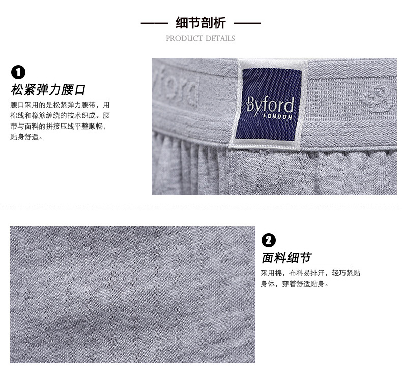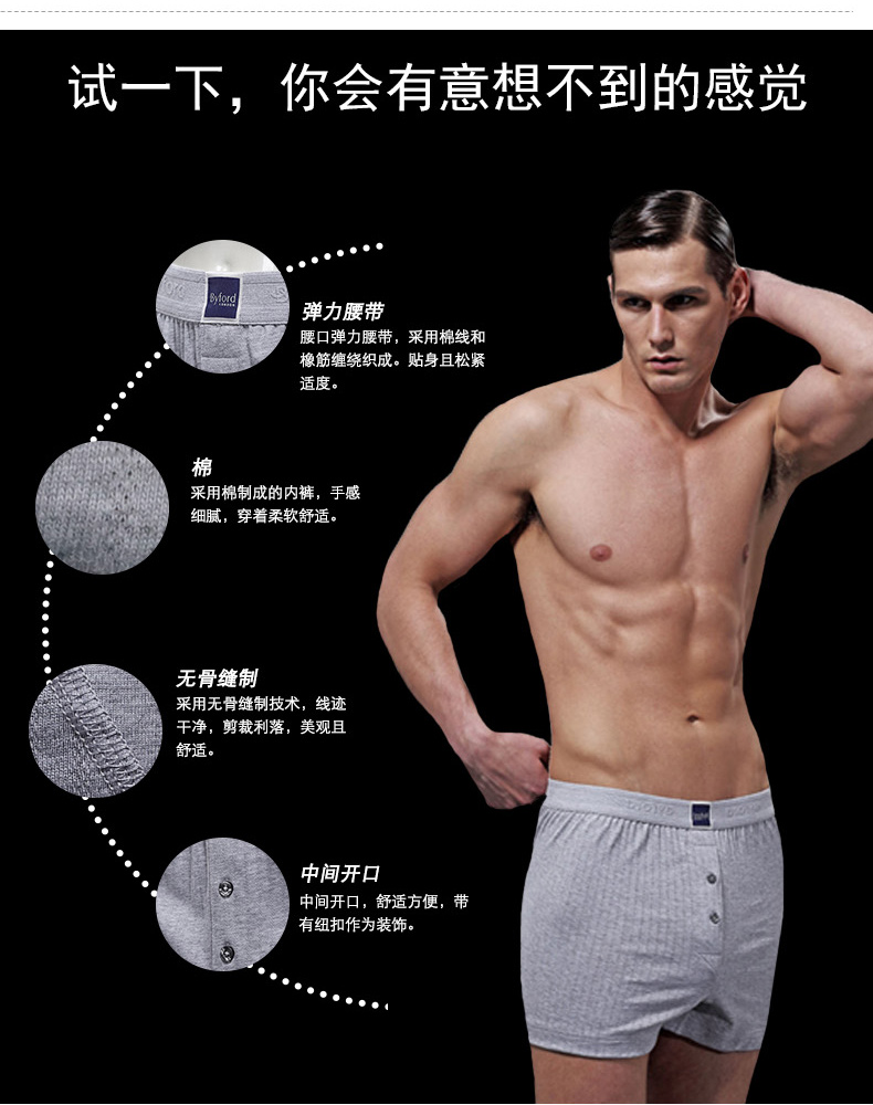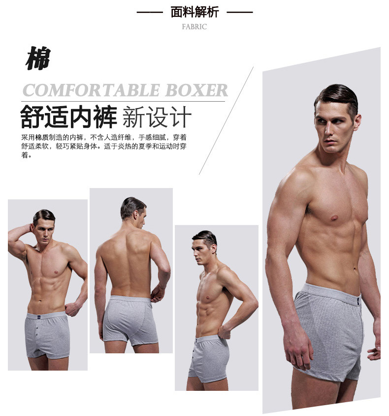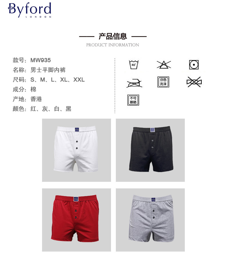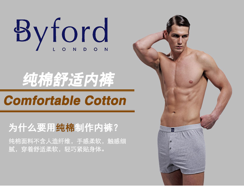 Byford Men's Pure Cotton Boxer Briefs Breathable Antibacterial Comfortable Home Underwear Mw935