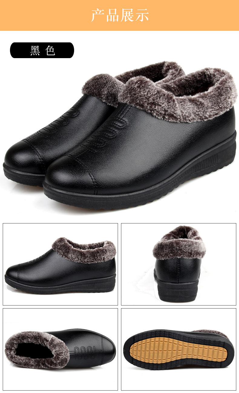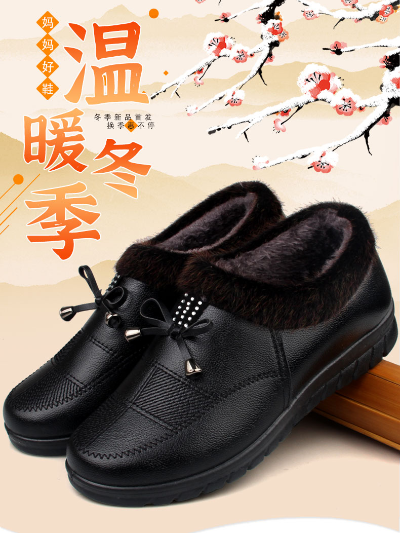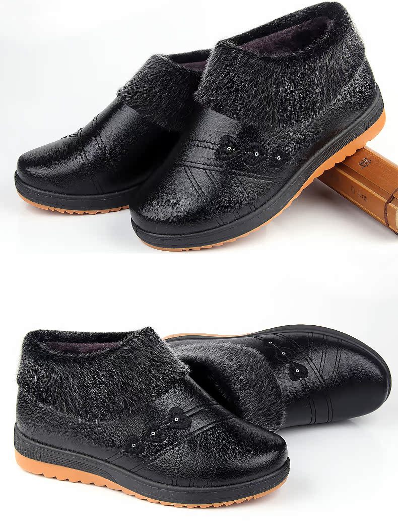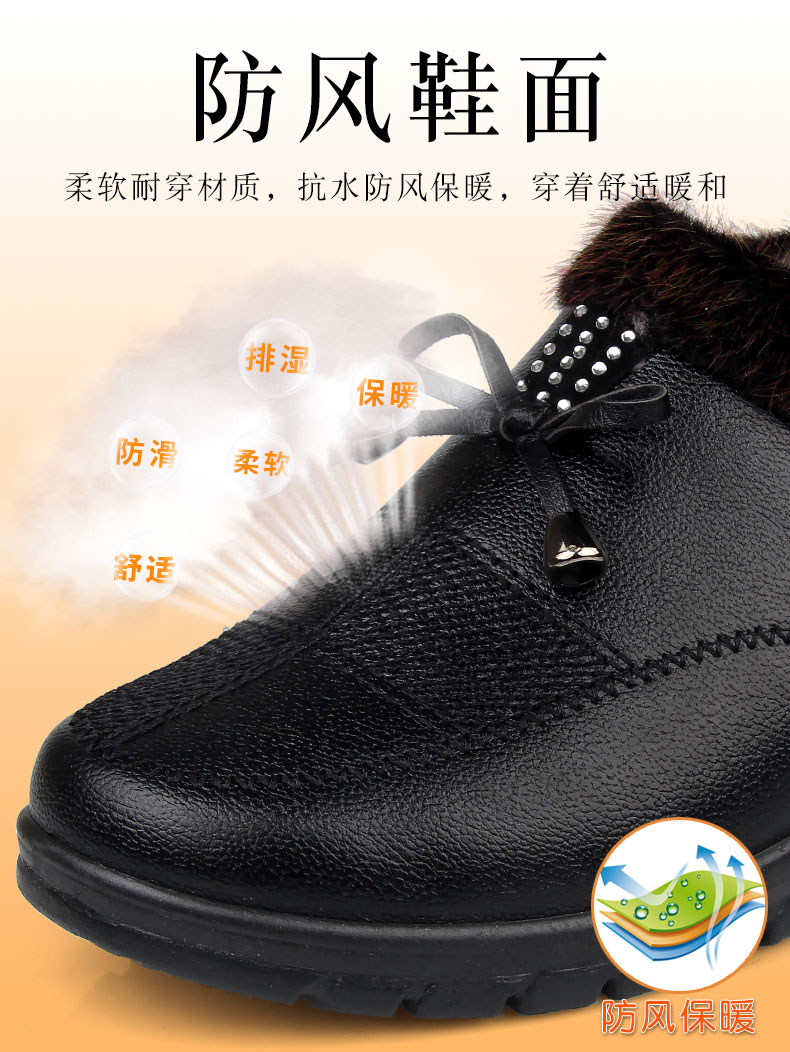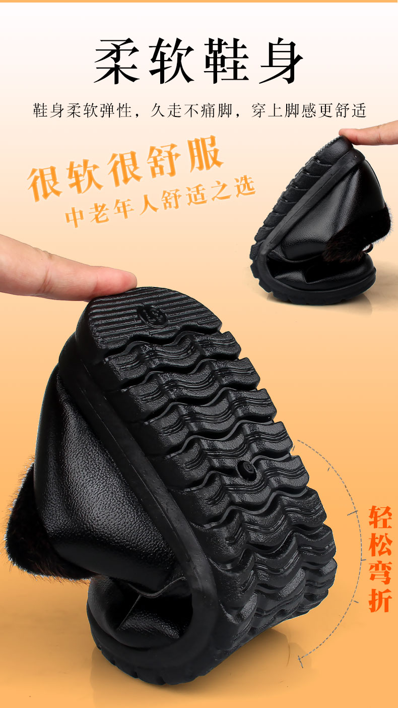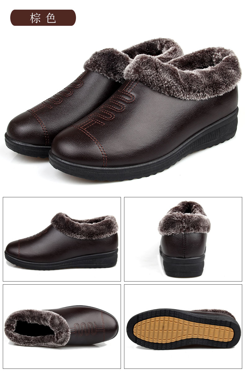Mom's Cotton Shoes for Women, Winter Waterproof and Warm Shoes, Middle-Aged and Elderly Leather Shoes, Soft-Soled Non-Slip Shoes for the Elderly, Fleece-Lined Grandma Shoes