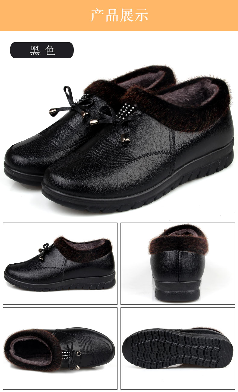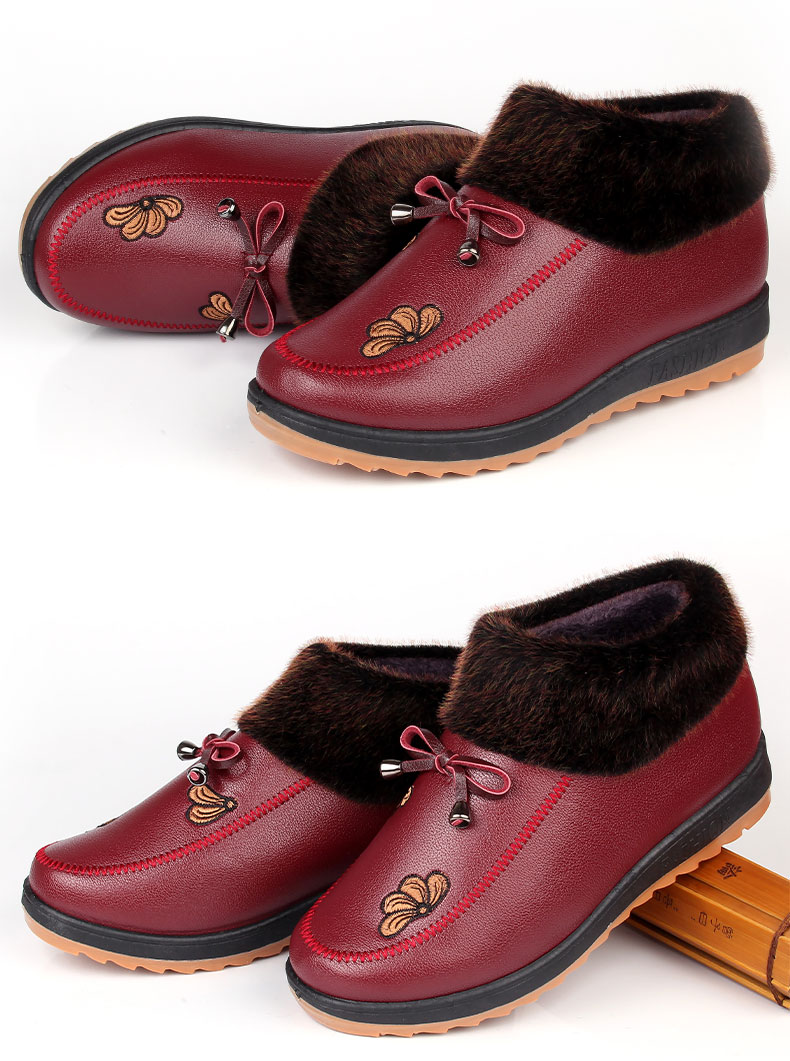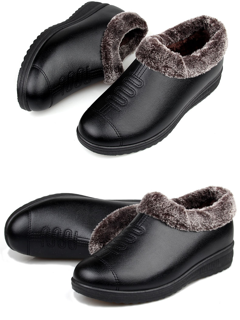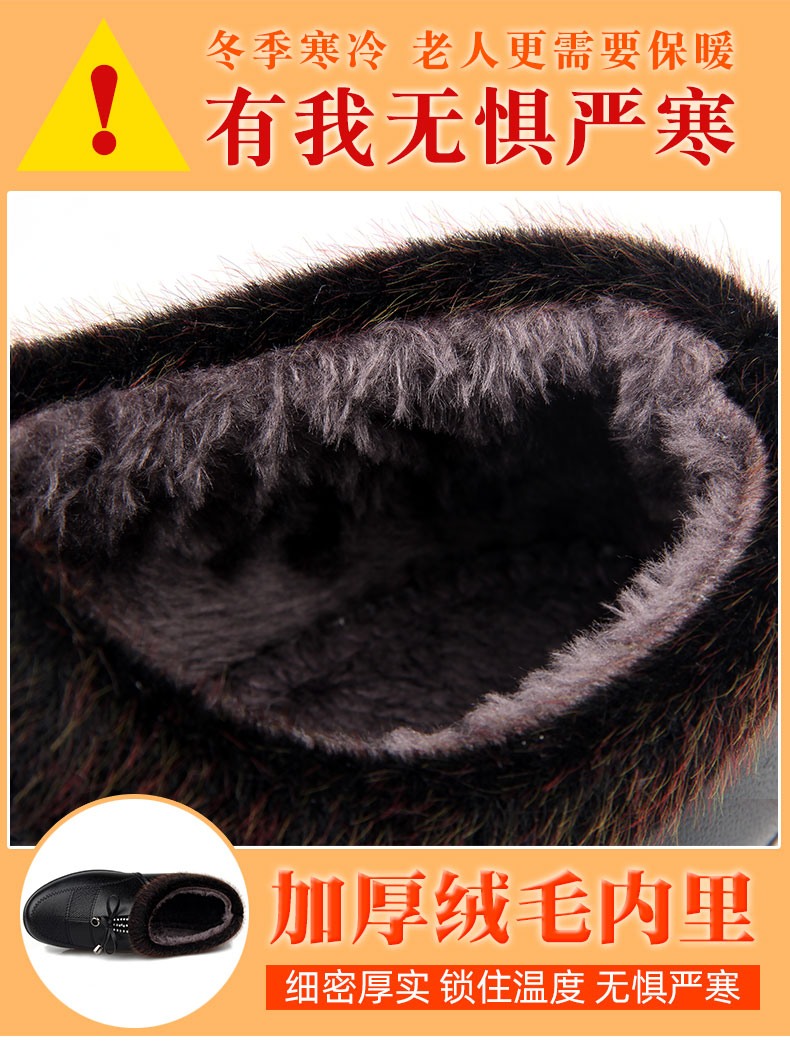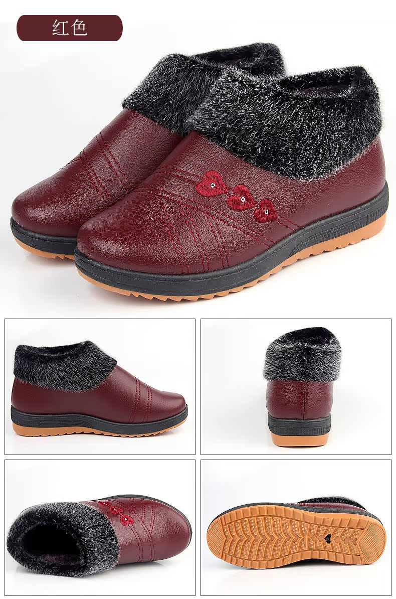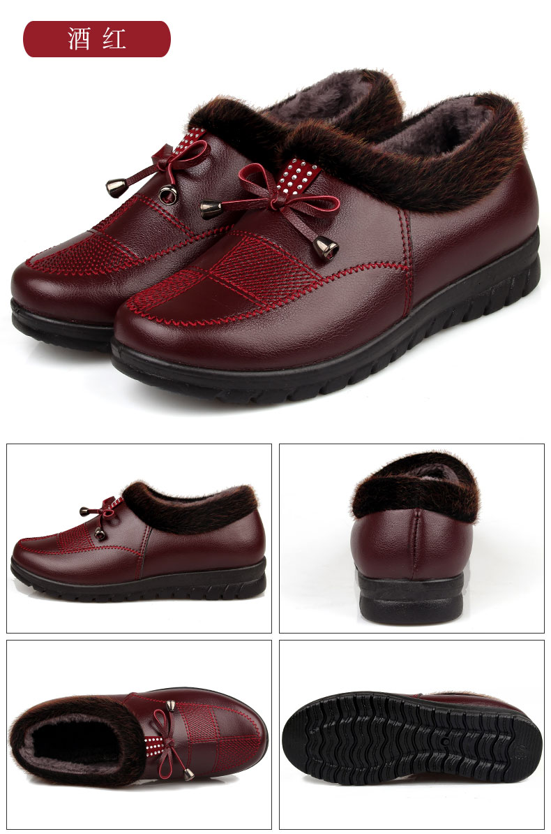 Mom's Cotton Shoes for Women, Winter Waterproof and Warm Shoes, Middle-Aged and Elderly Leather Shoes, Soft-Soled Non-Slip Shoes for the Elderly, Fleece-Lined Grandma Shoes