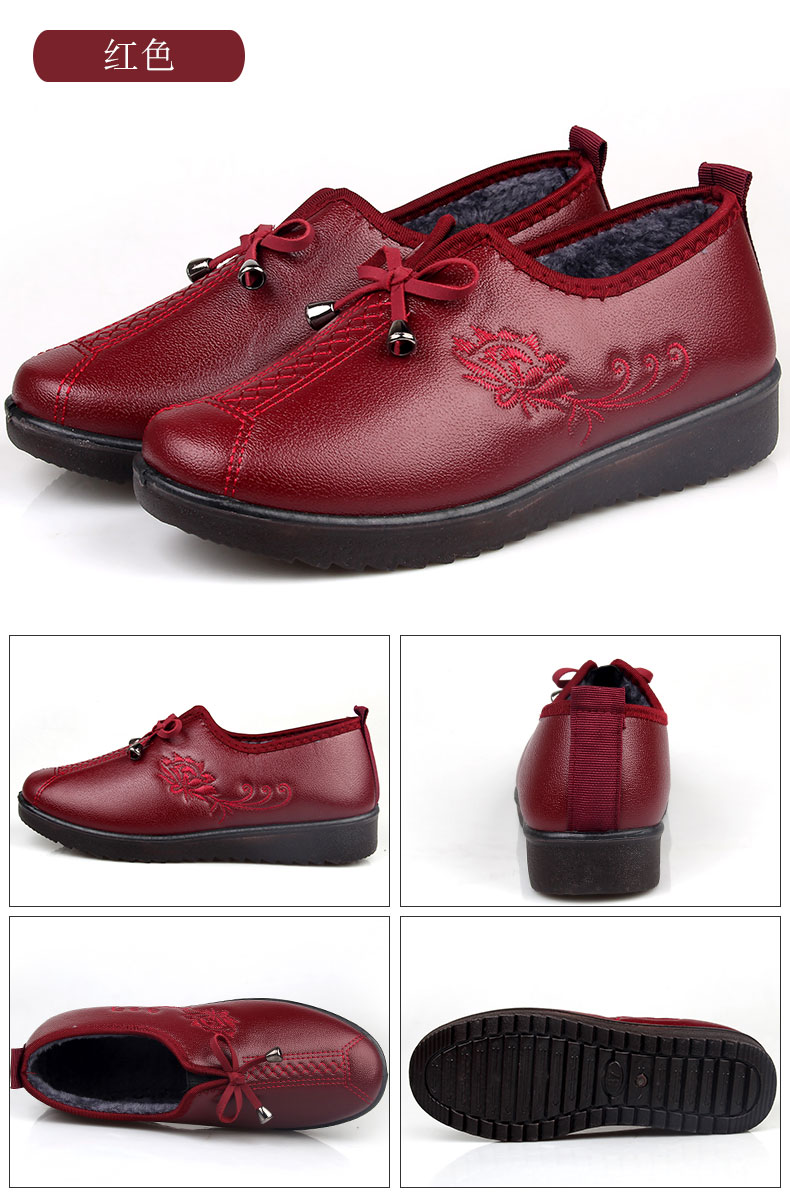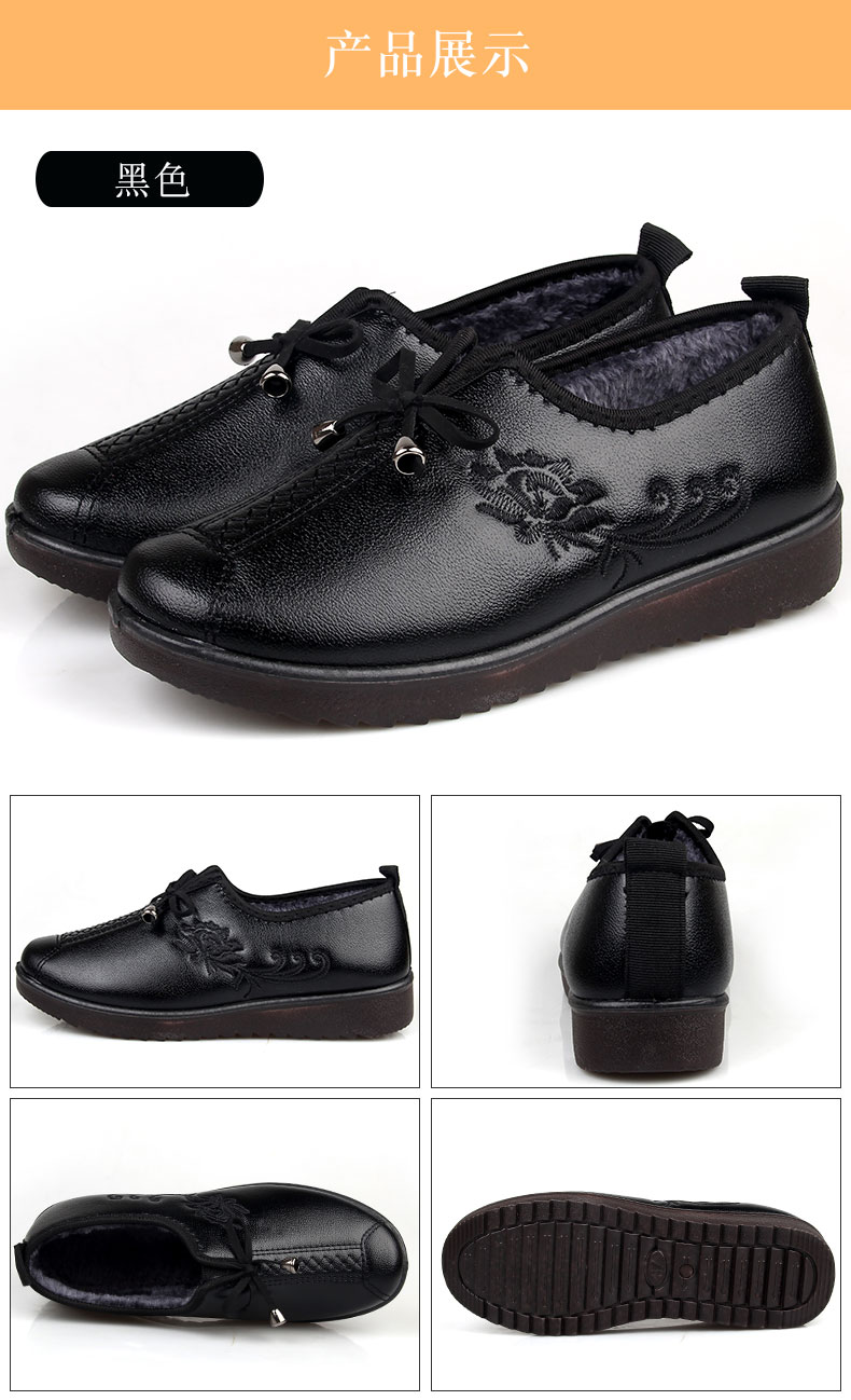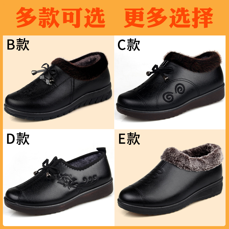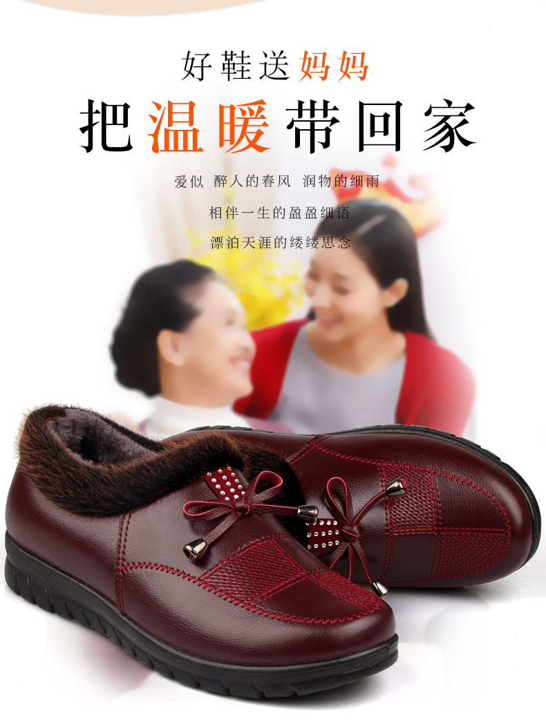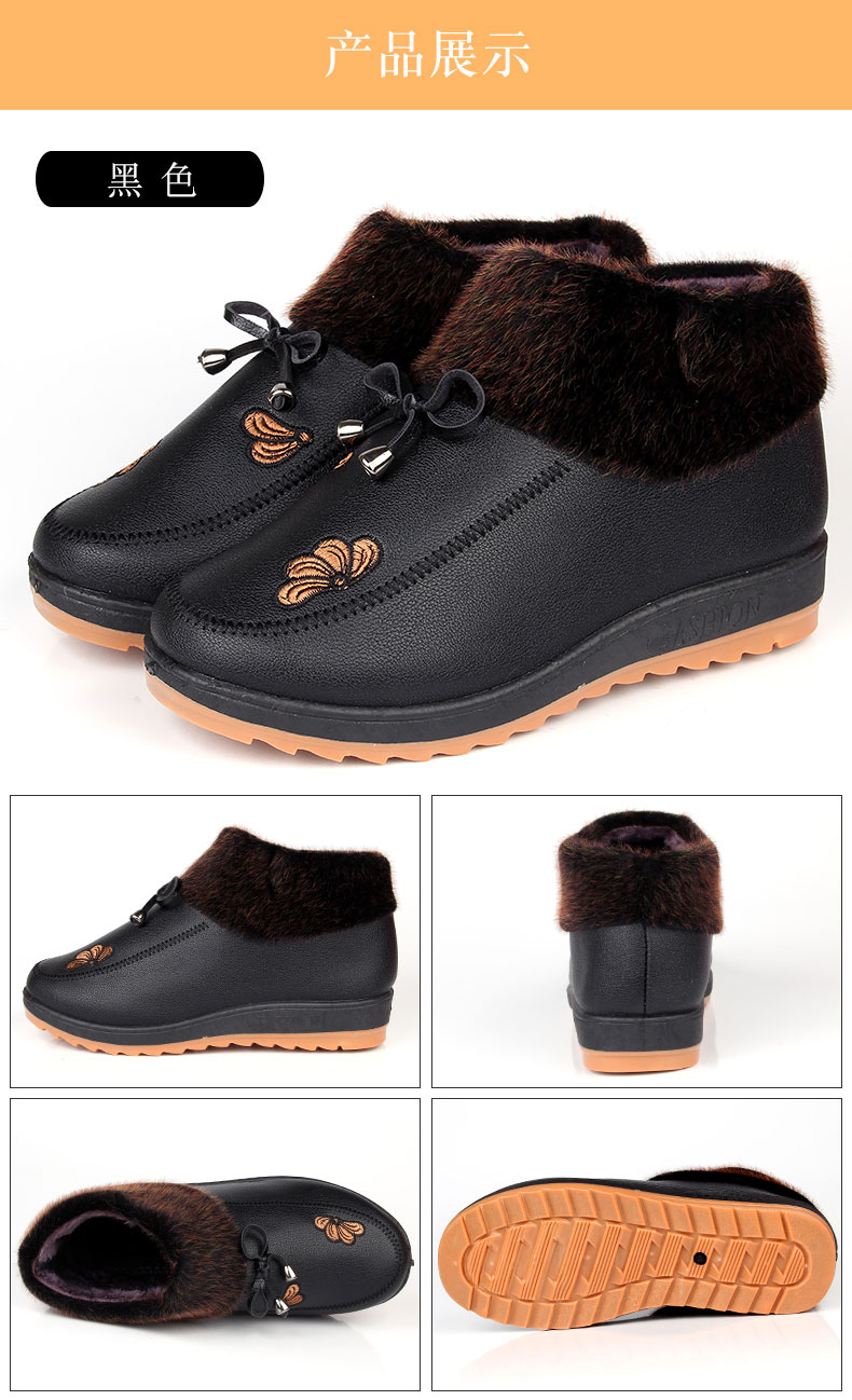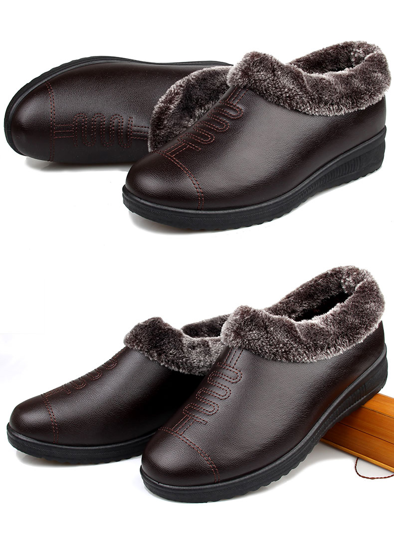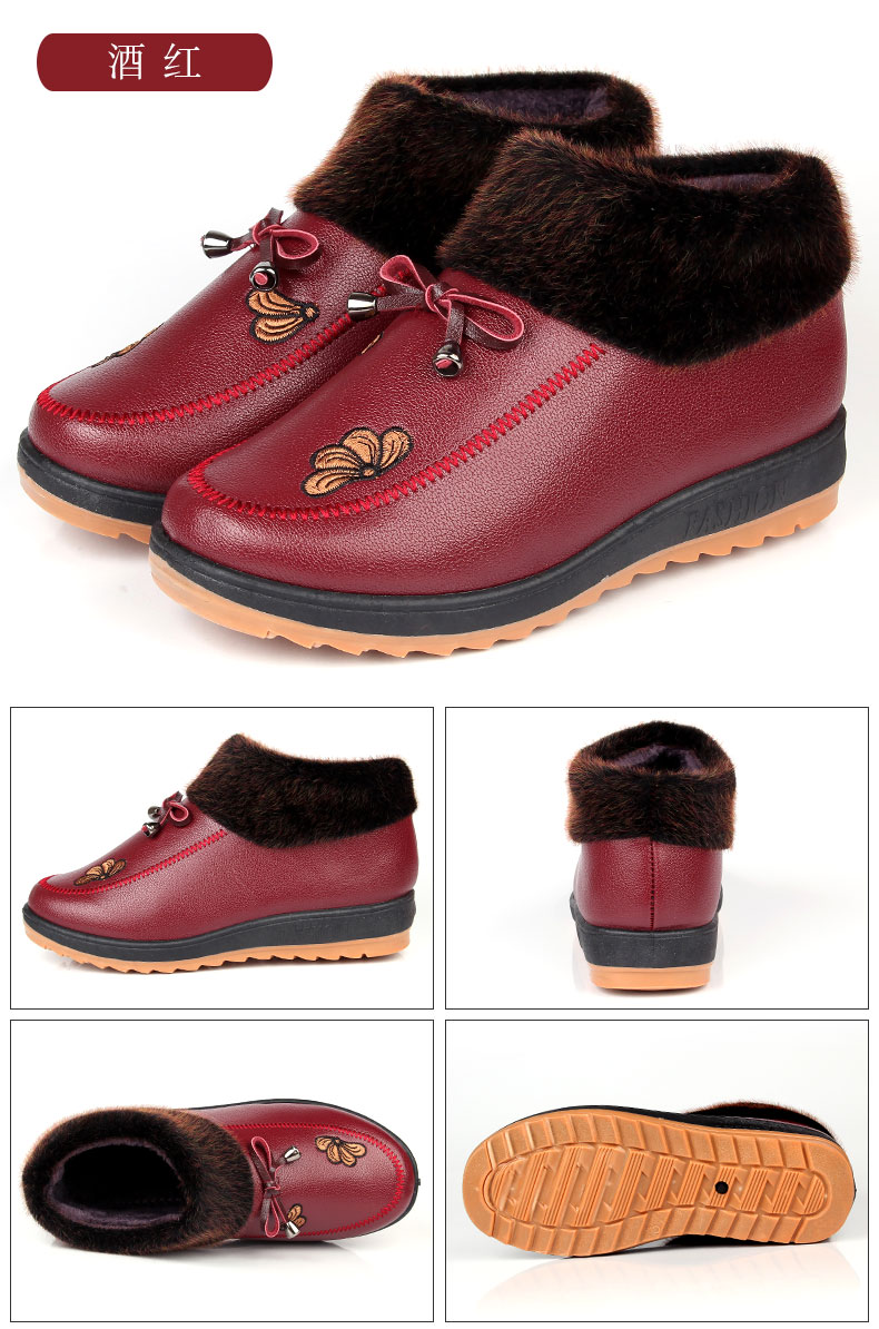 Mom's Cotton Shoes for Women, Winter Waterproof and Warm Shoes, Middle-Aged and Elderly Leather Shoes, Soft-Soled Non-Slip Shoes for the Elderly, Fleece-Lined Grandma Shoes