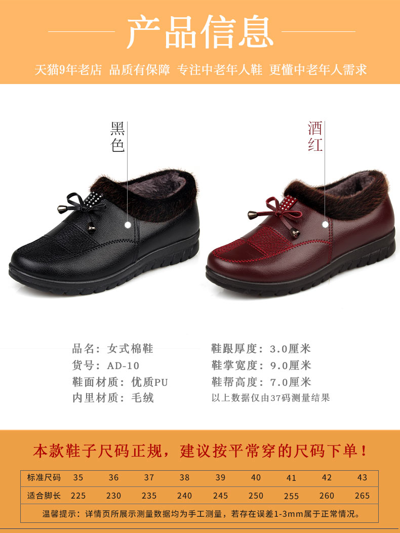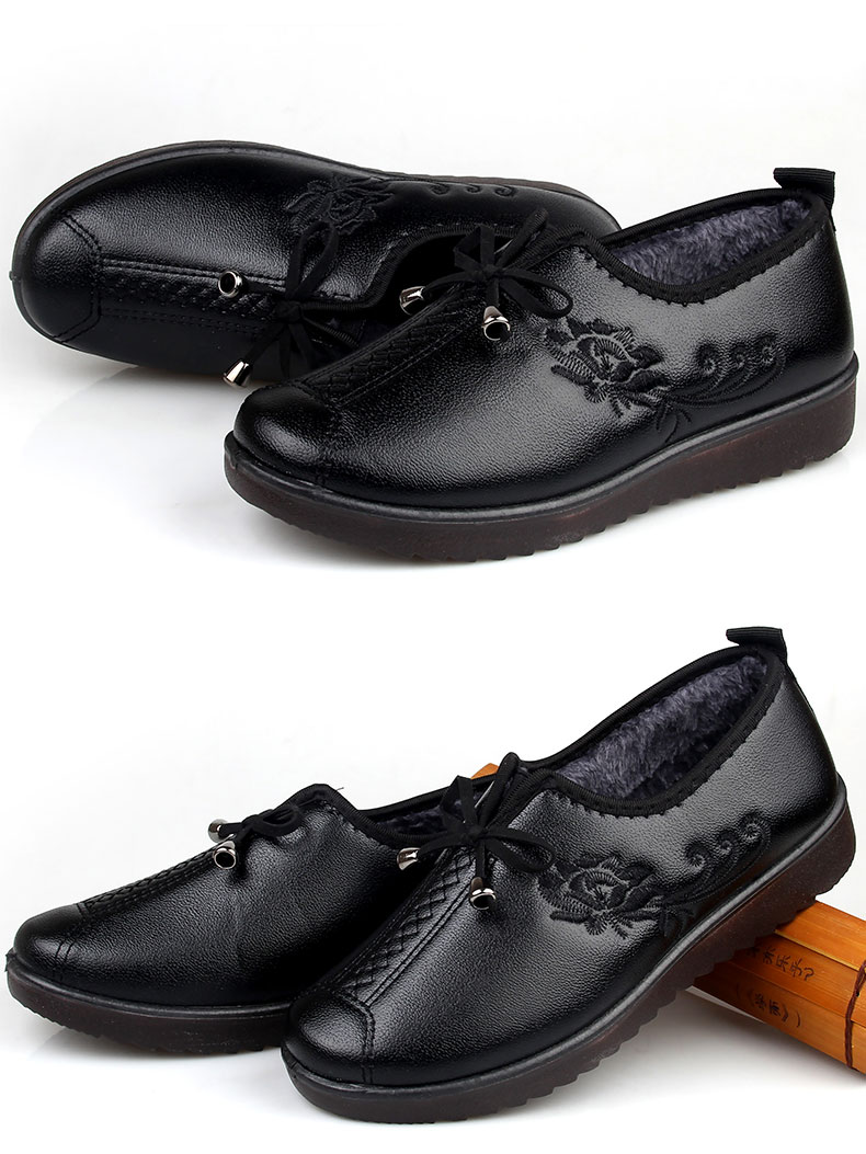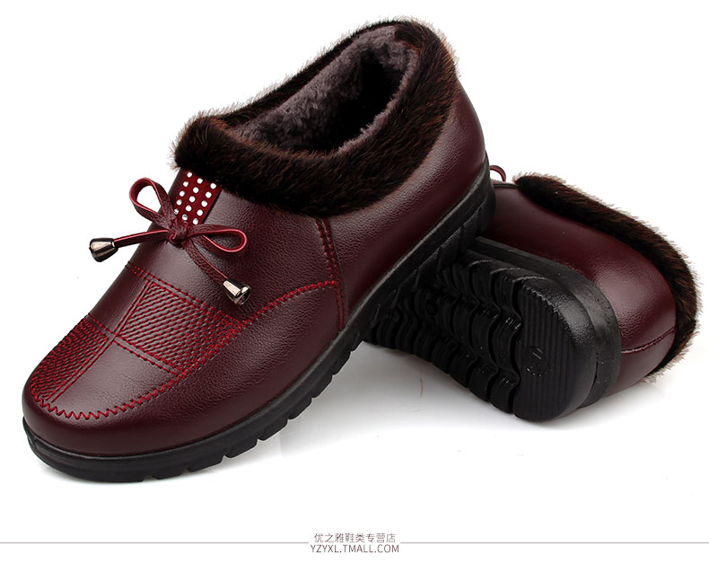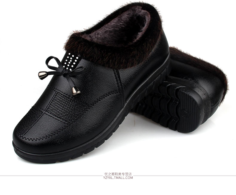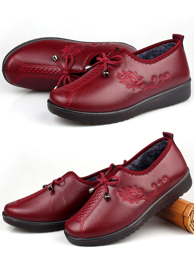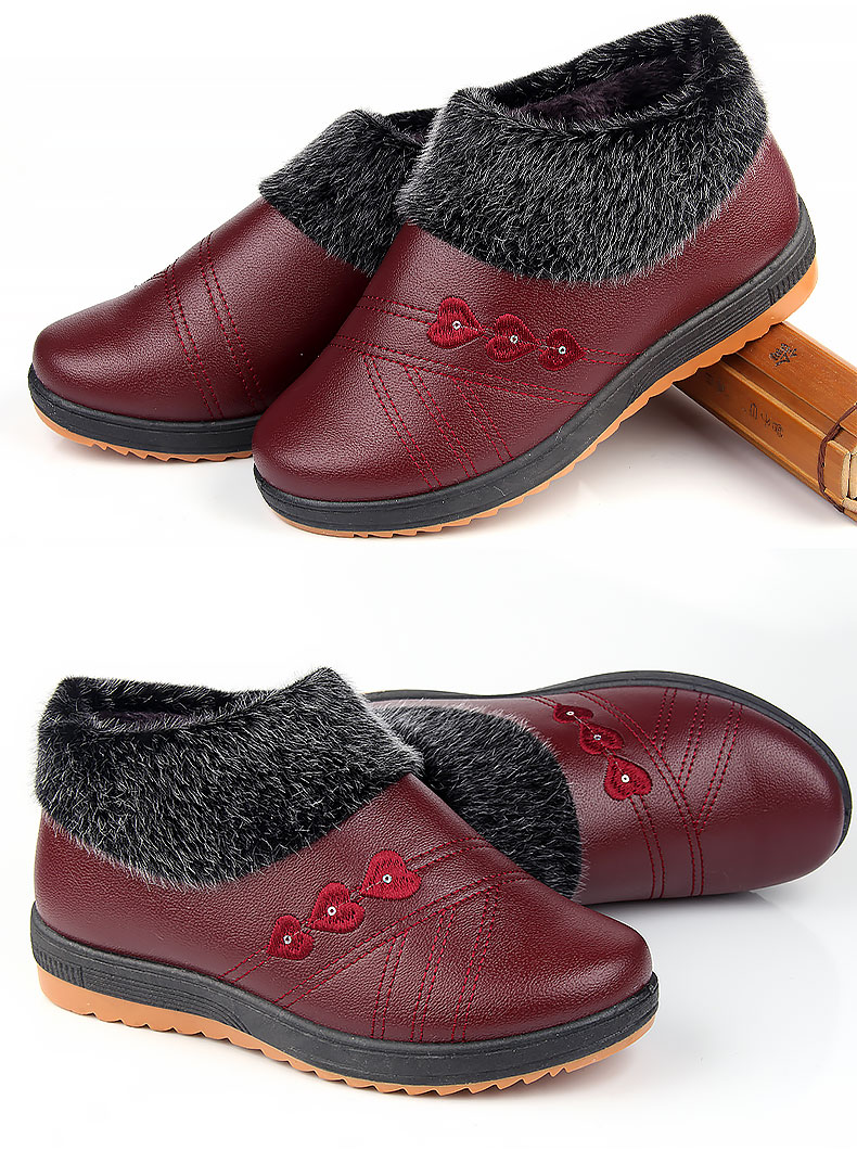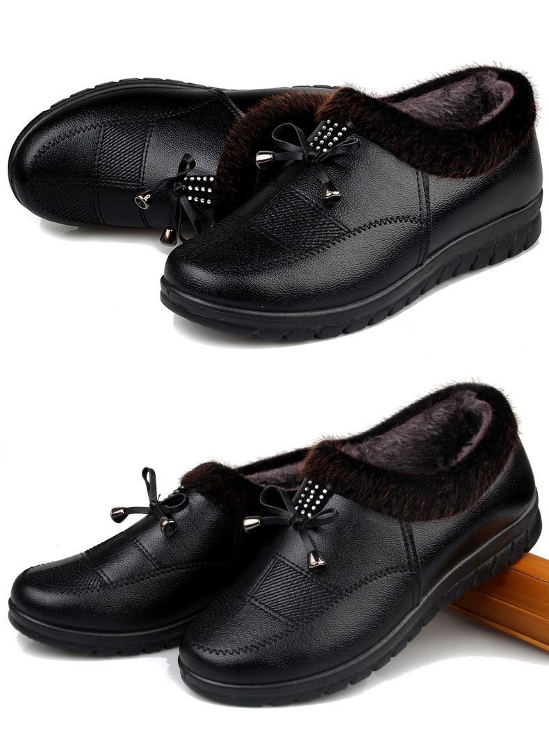 Mom's Cotton Shoes for Women, Winter Waterproof and Warm Shoes, Middle-Aged and Elderly Leather Shoes, Soft-Soled Non-Slip Shoes for the Elderly, Fleece-Lined Grandma Shoes