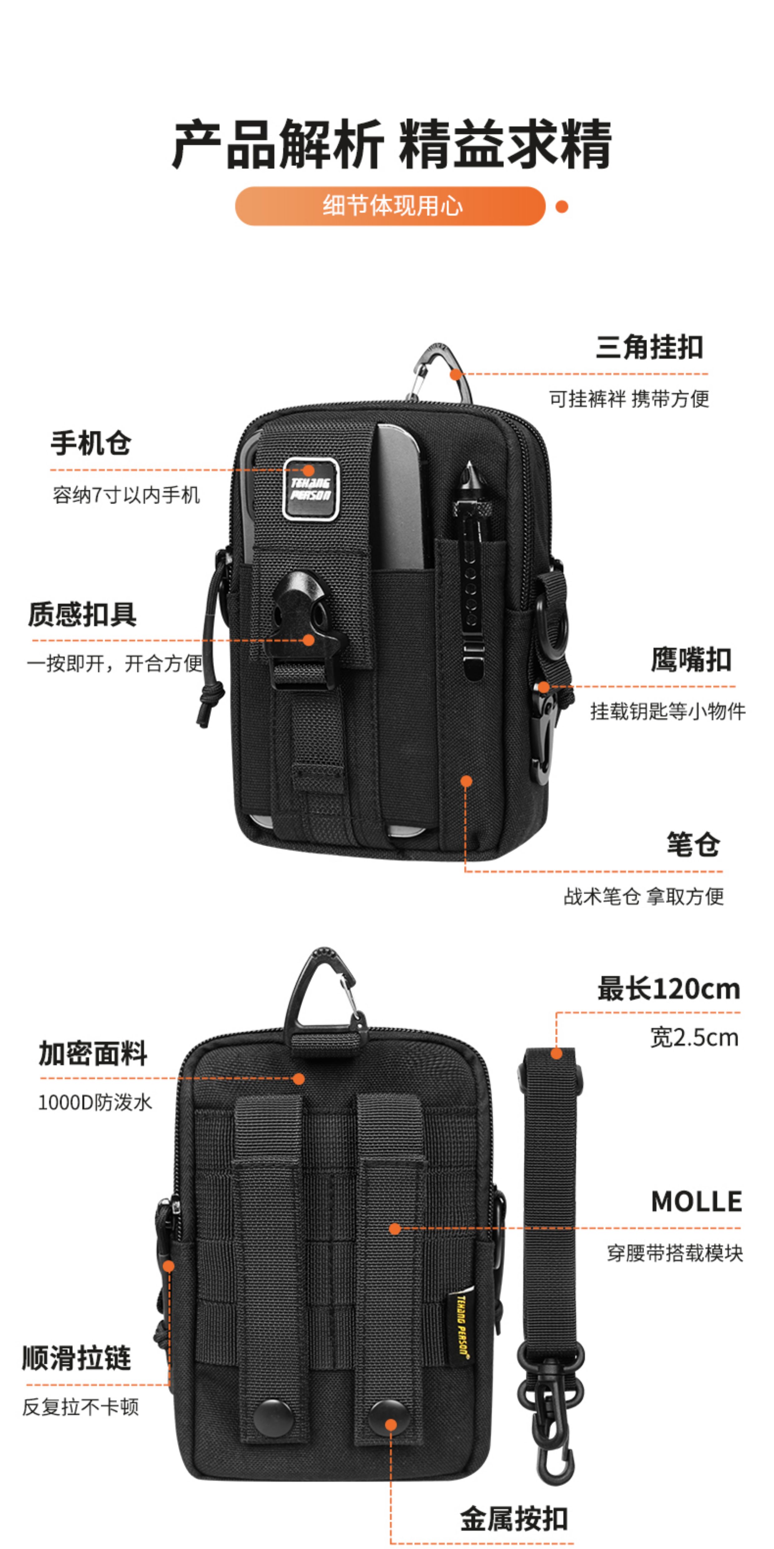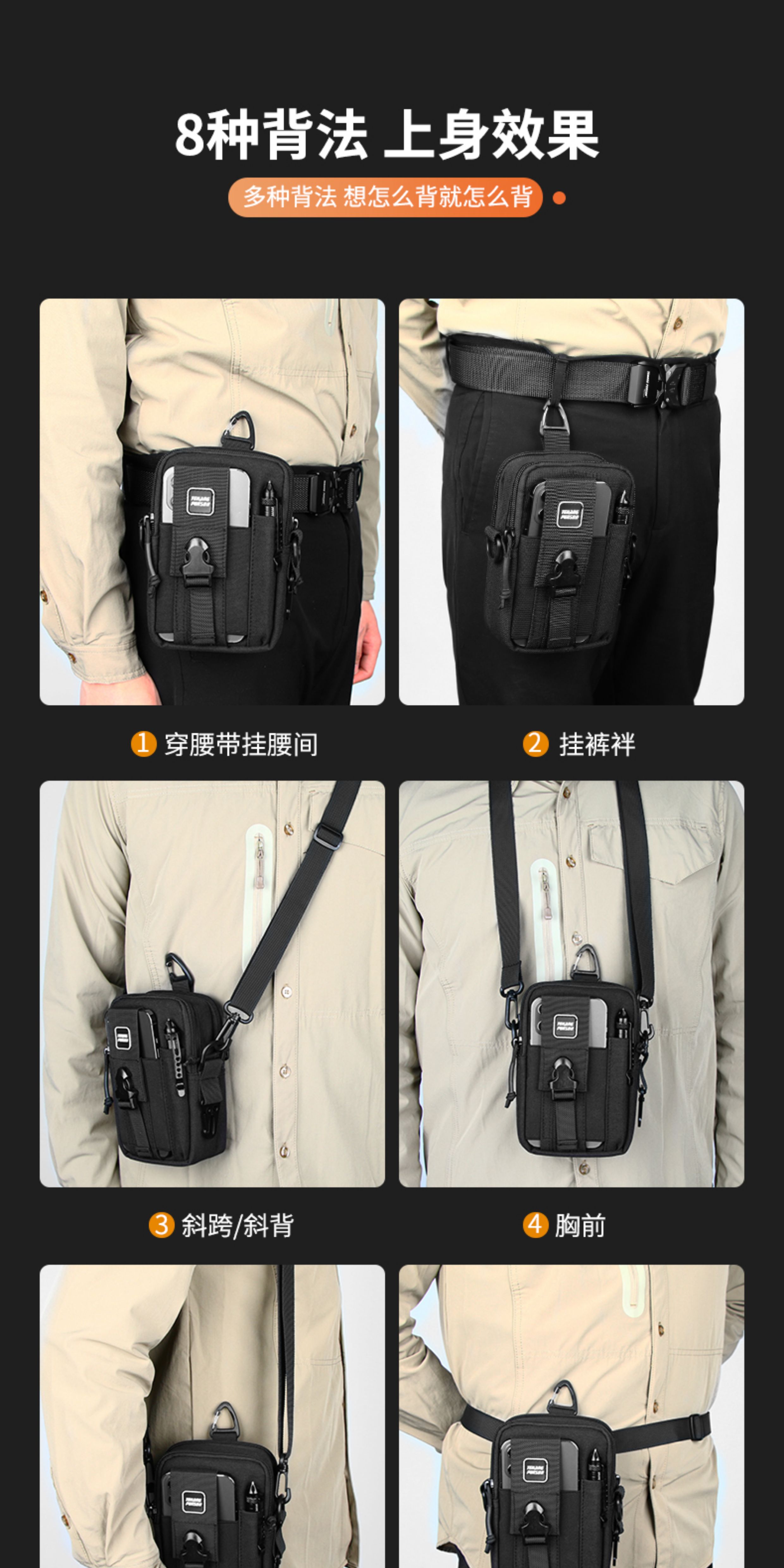 Multifunctional Waist Bag for Men, Outdoor Belt Bag, 7inch Mountaineering Work Site Phone Bag, Tactical Shoulder Crossbody Bag