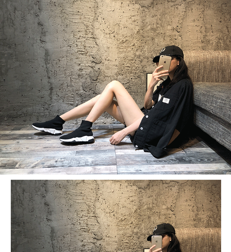 2025 New Elastic White Sock Shoes for Women, Internet Celebrity Style, Super Popular High-Top Sports Shoes with Hidden Height Increase for Men, Casual Thick-Soled