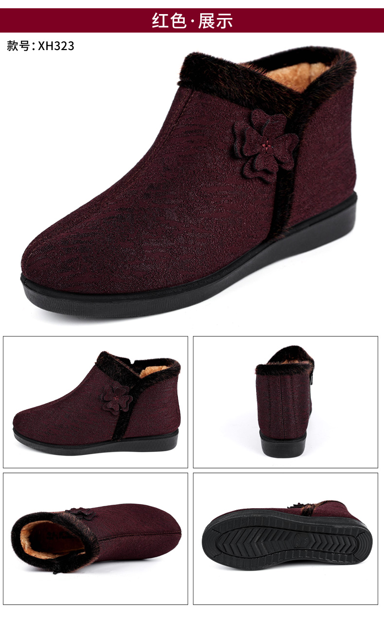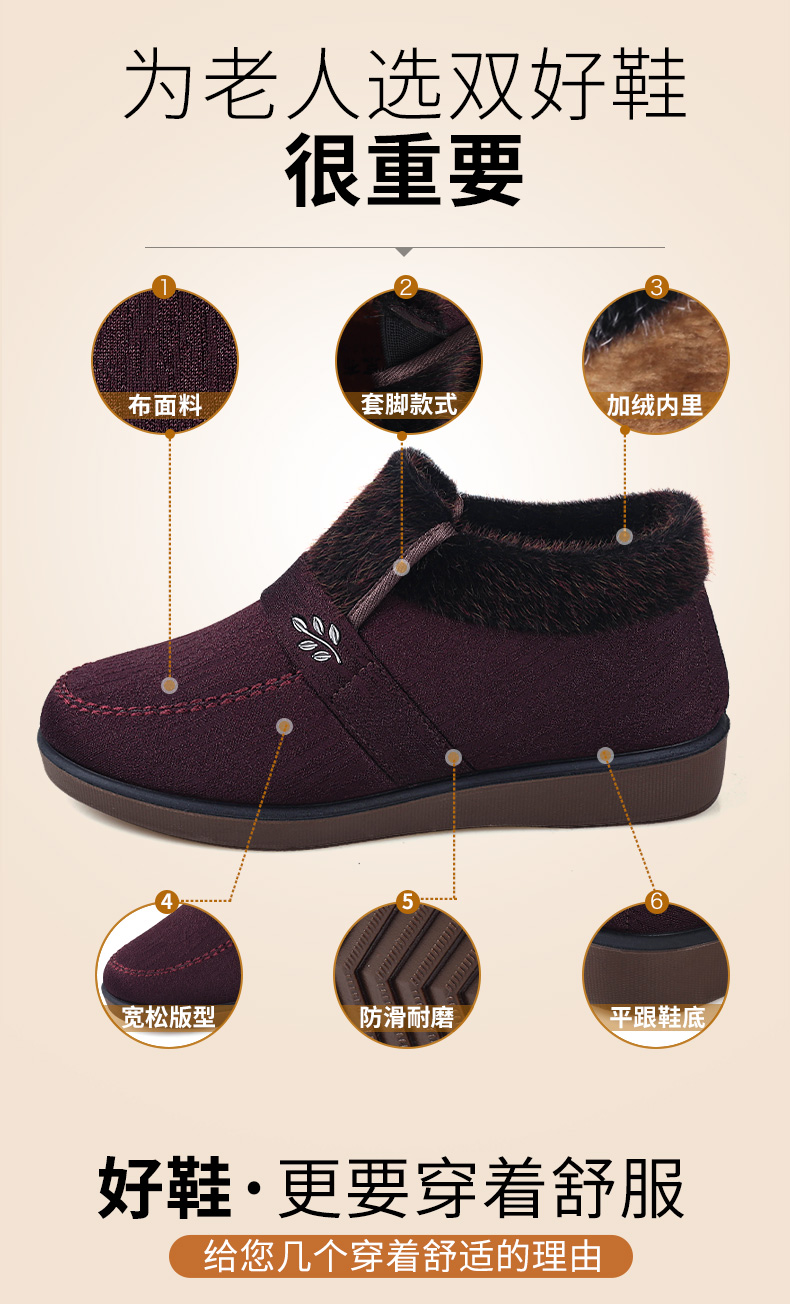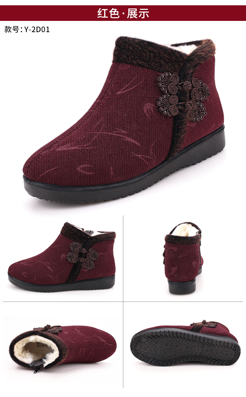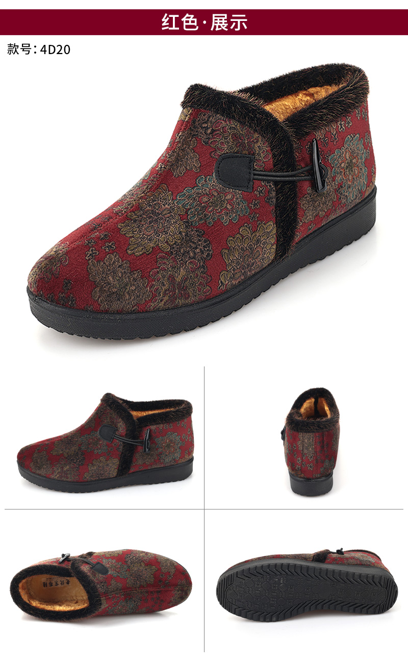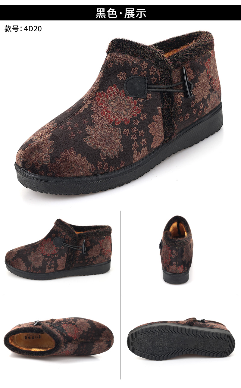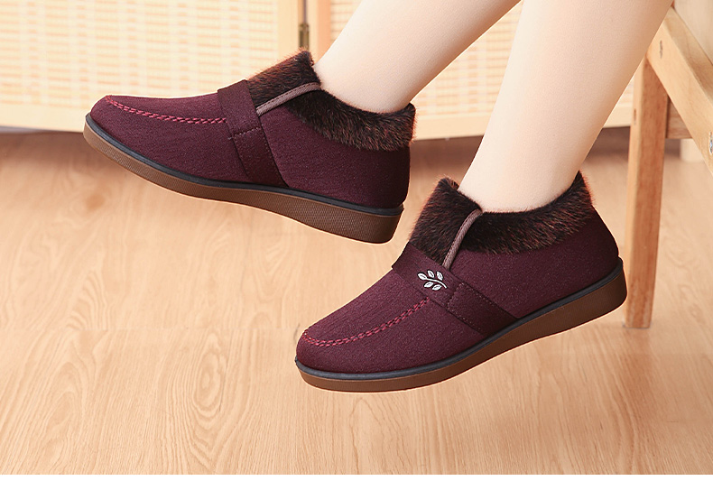Winter Fleece-Lined Warm Shoes for Elderly Women, Non-Slip Mother's Shoes, Elderly Cotton Shoes, Old Beijing Cloth Shoes for Women, Thickened
