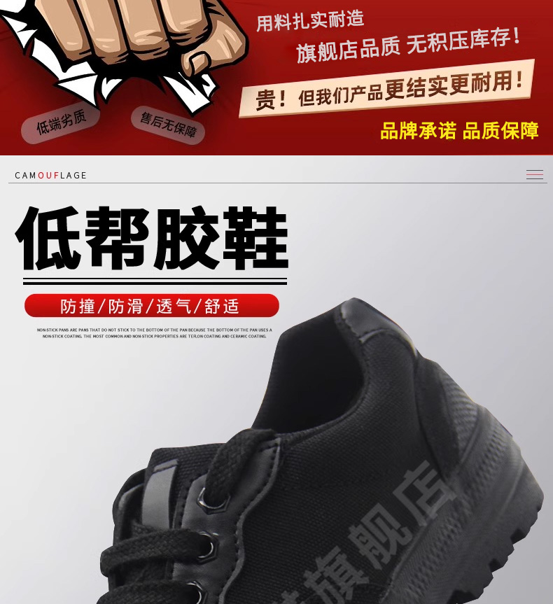 Jihua 3537 Genuine Liberation Shoes for Men, Low-Top Training Shoes, Wear-Resistant Construction Site Work Rubber Shoes, Odor-Resistant Canvas Safety Shoes
