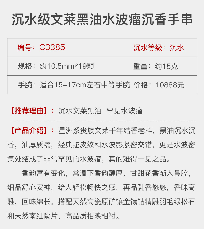 Water Tumor ● Submersible ● Brunei Black Oil Agarwood 10.5mm Sweet Floral Fragrance Men's and Women's Bracelet 15g C3385