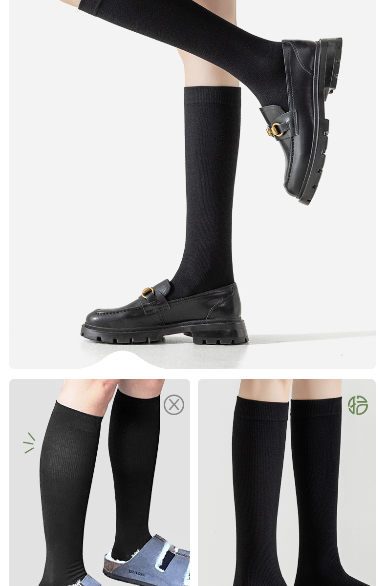 Compression Calf Socks for Women, Autumn and Winter, Strong Compression Slimming Mid-Calf Jk Socks, Long Socks, Over-The-Knee Socks, Non-Slip Black Long Socks