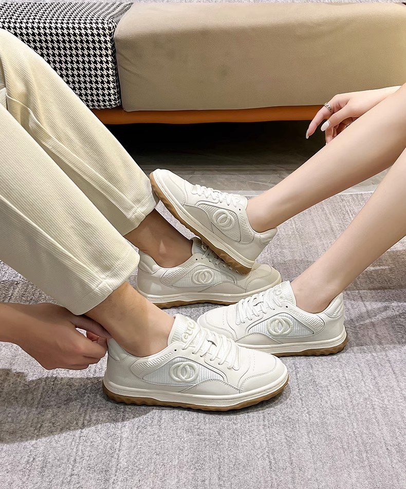 Hong Kong Style Genuine Leather White Sneakers for Women 2025 Spring and Autumn New Versatile Mesh Breathable Sports Casual Sneakers