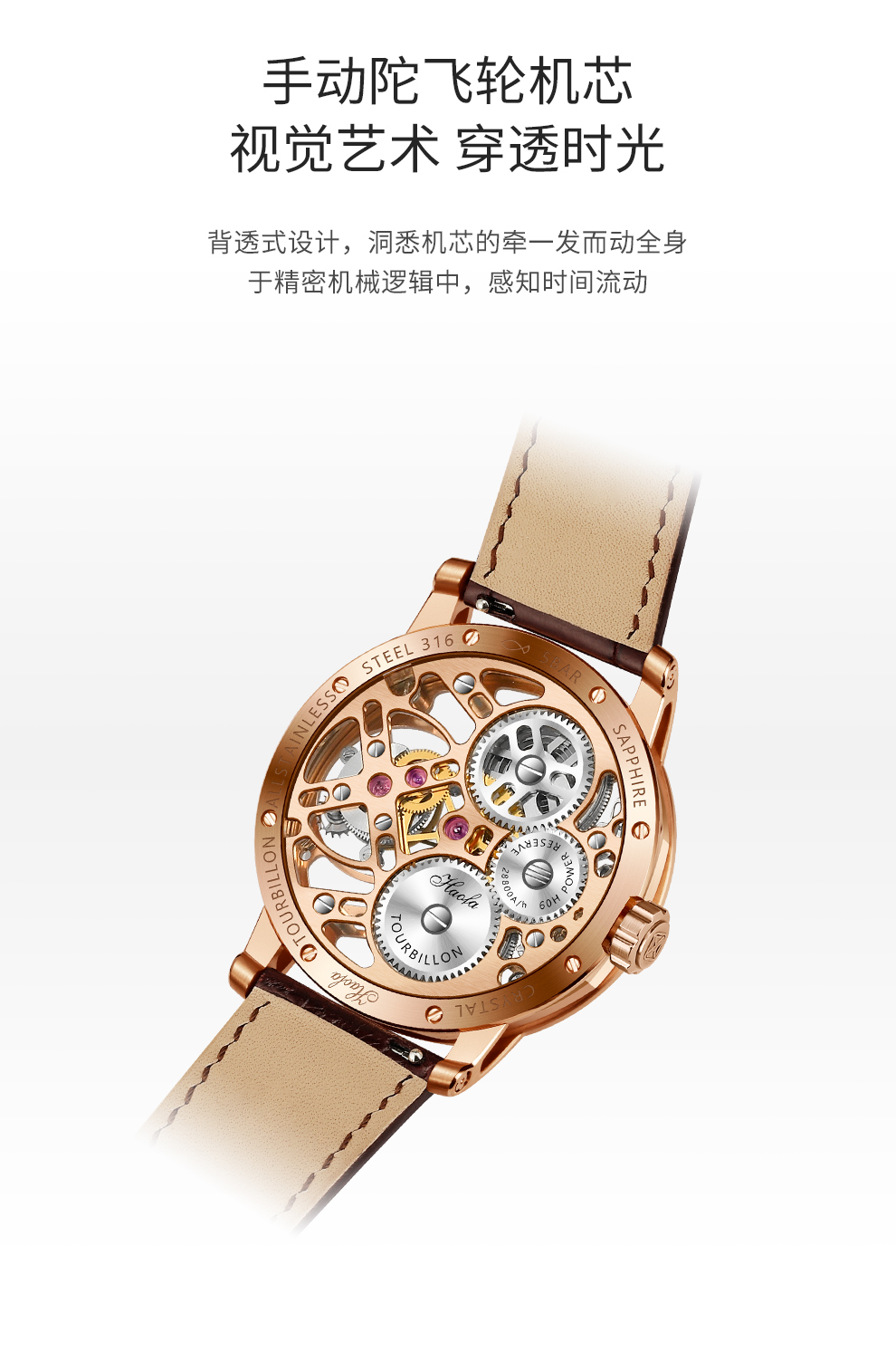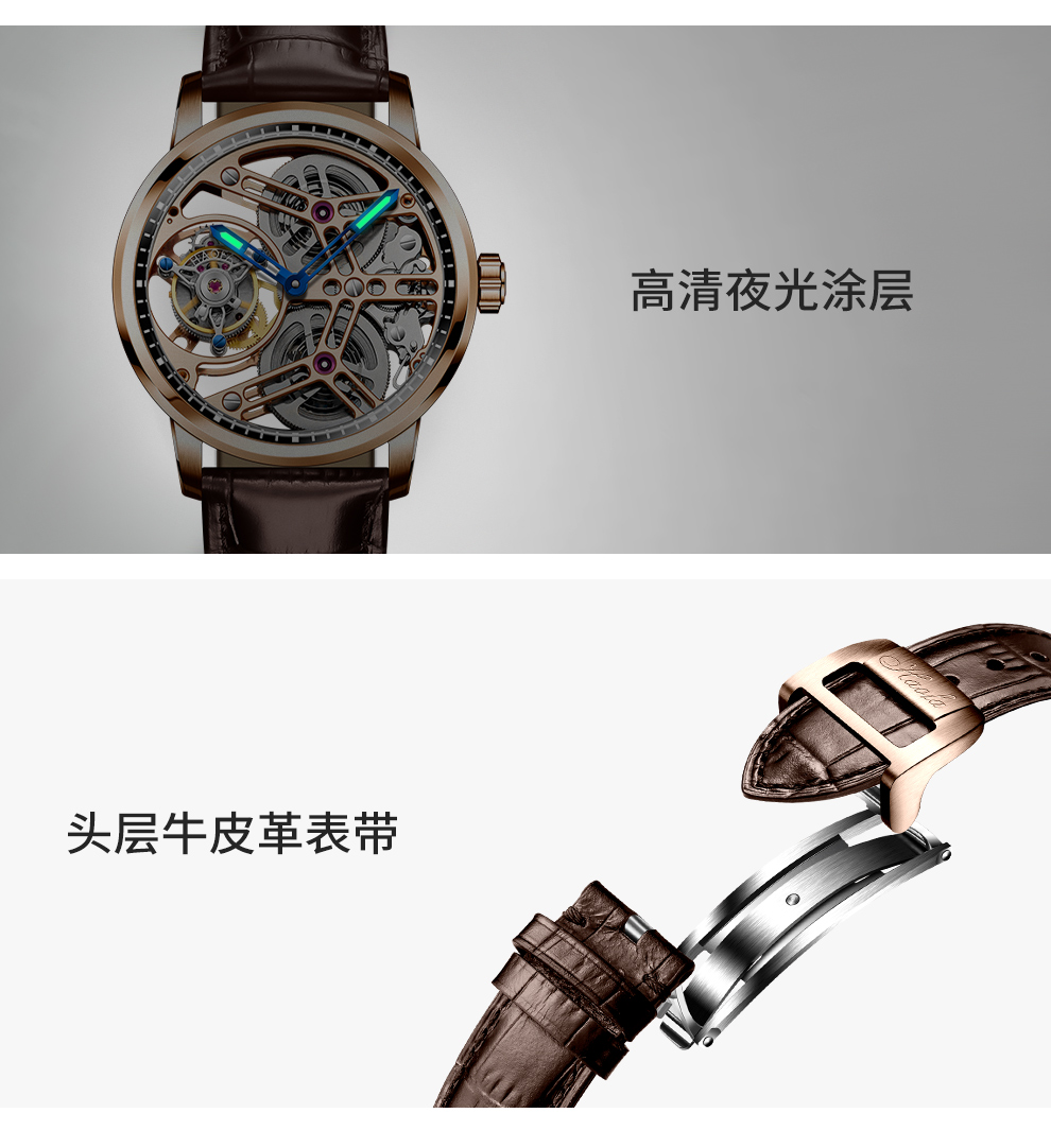 [Double 11 Huge Discount] Haofa Watch Skeleton Tourbillon Mechanical Wristwatch for Men, Business Casual Double Spring Stainless Steel Watch