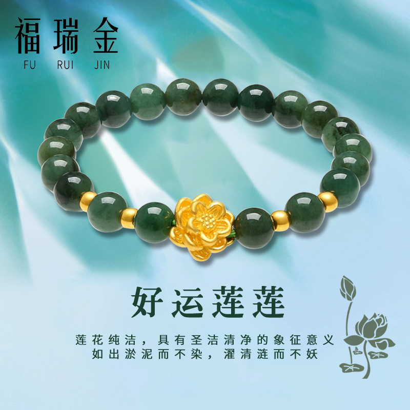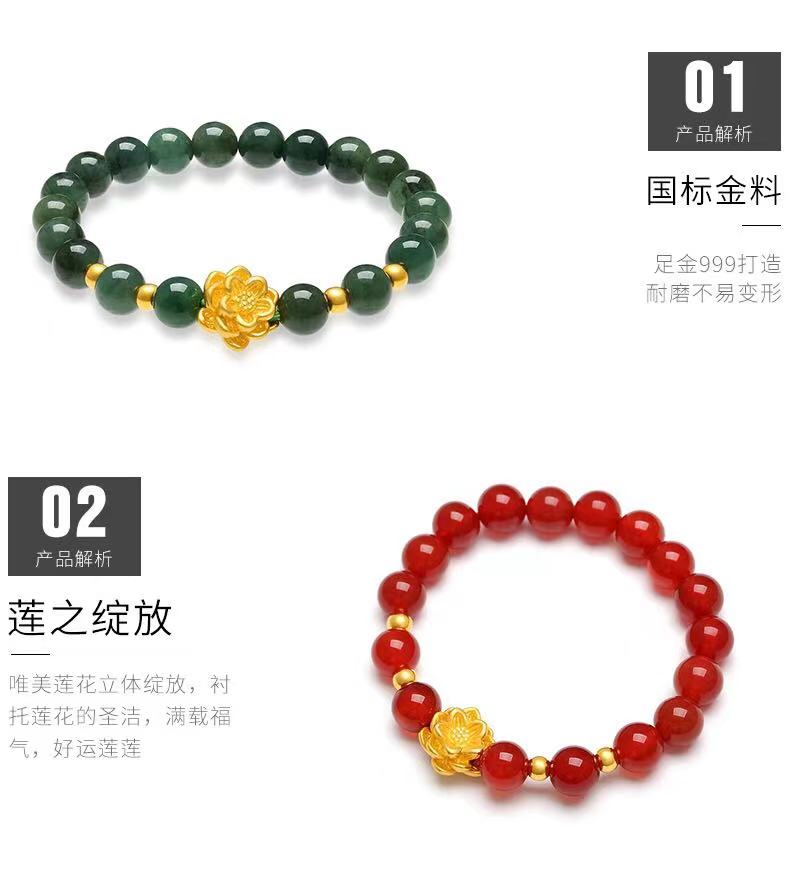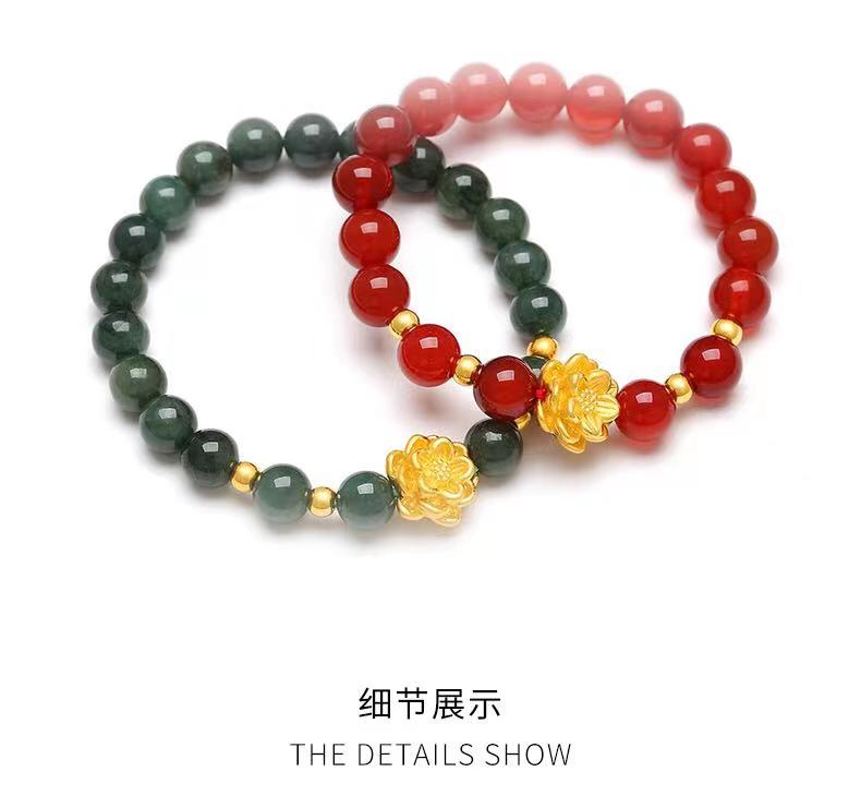 Gold Lotus Bracelet for Women, Pure Gold Fortune Bead Jade Bracelet, Birthday Gift for Mom or Mother-In-Law