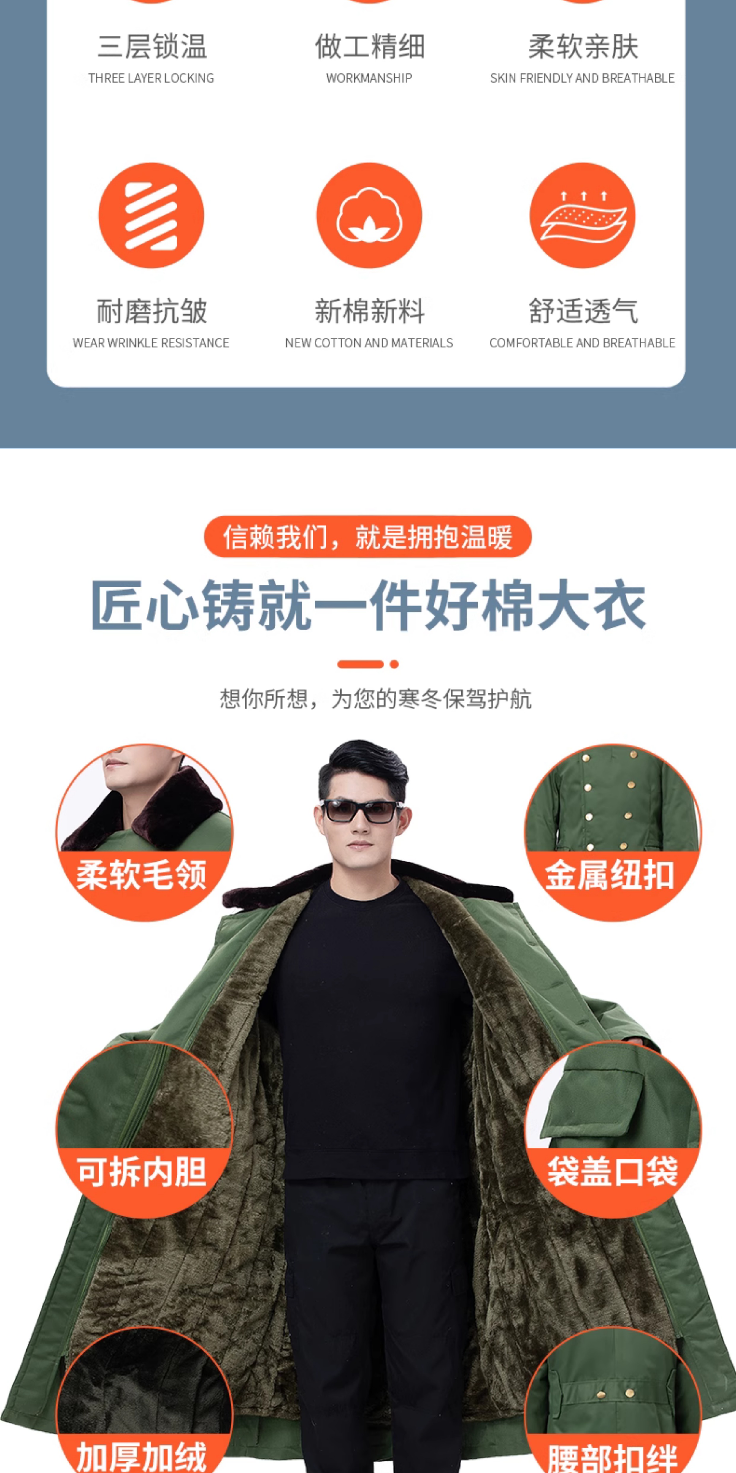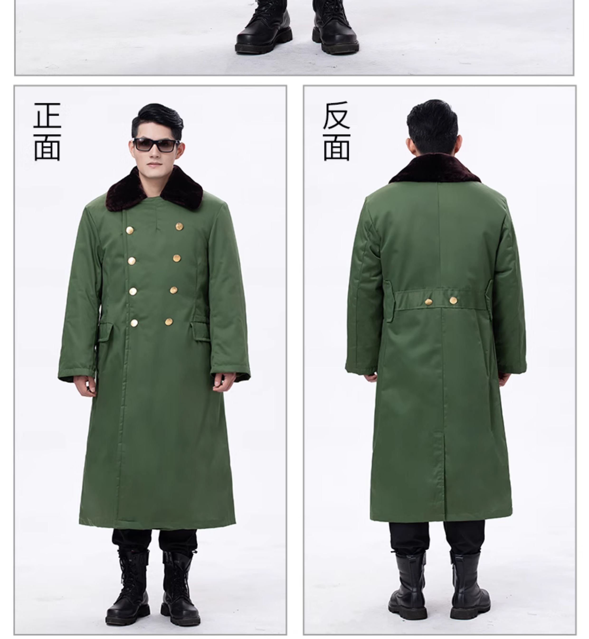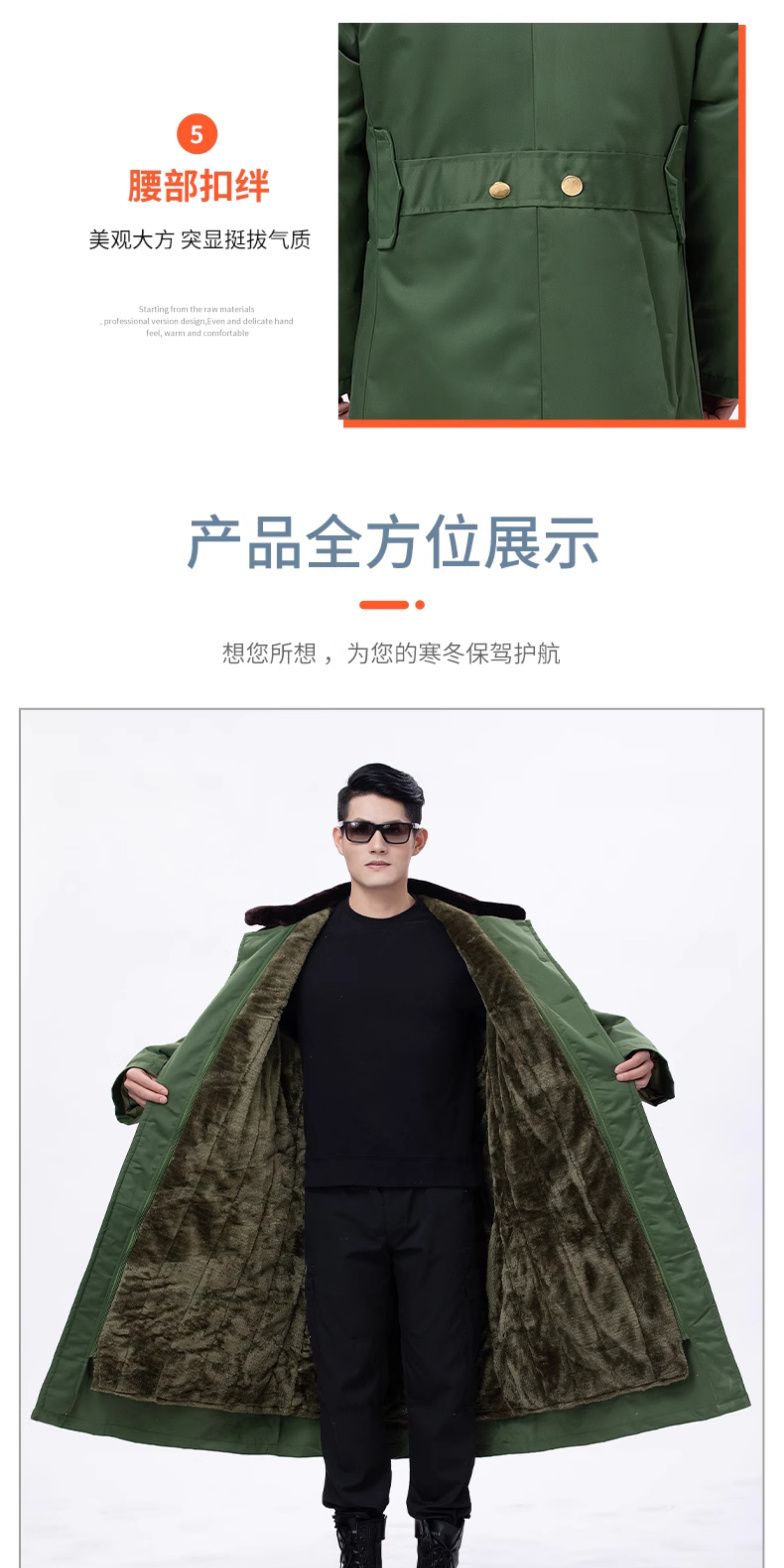 Winter Thickeneded Velvet Long Military Coat Men's Labor Protection Green Northeastern Cotton Coat Military Winter Coat Freezer Cold-Proof Cotton Coat