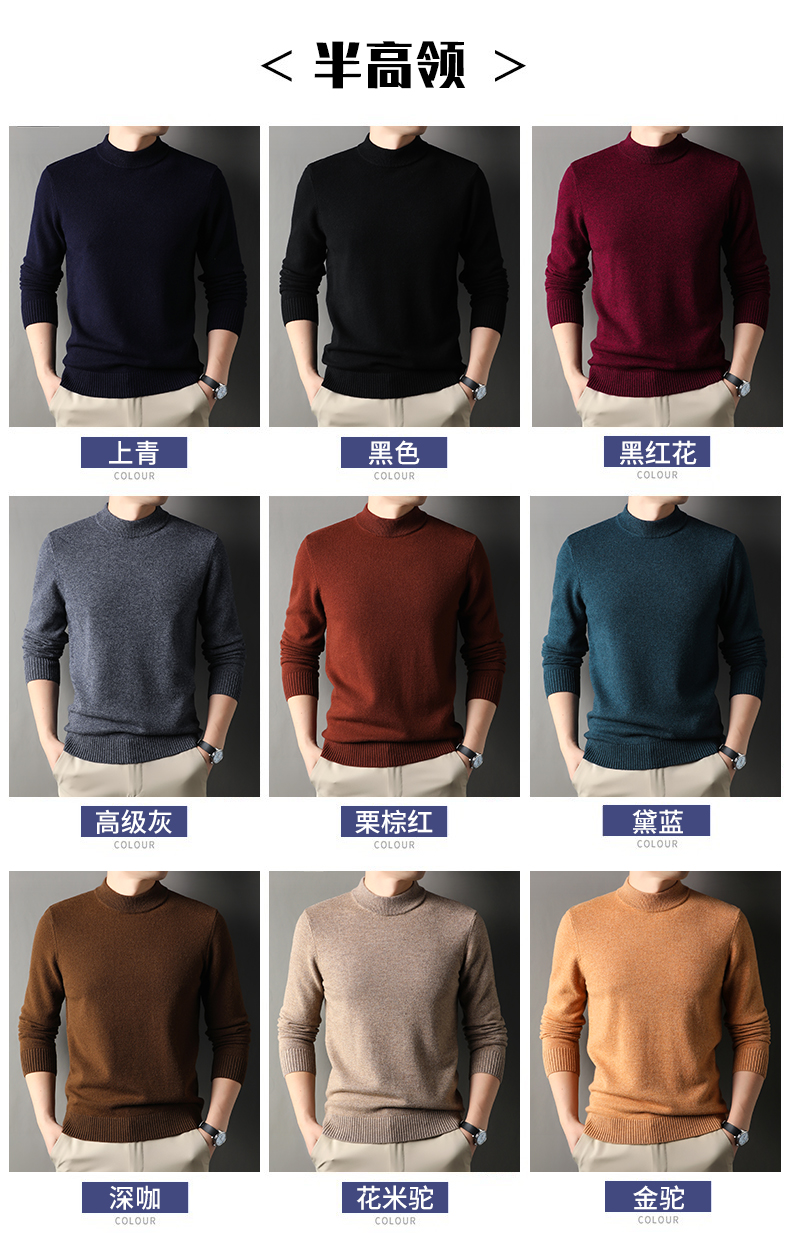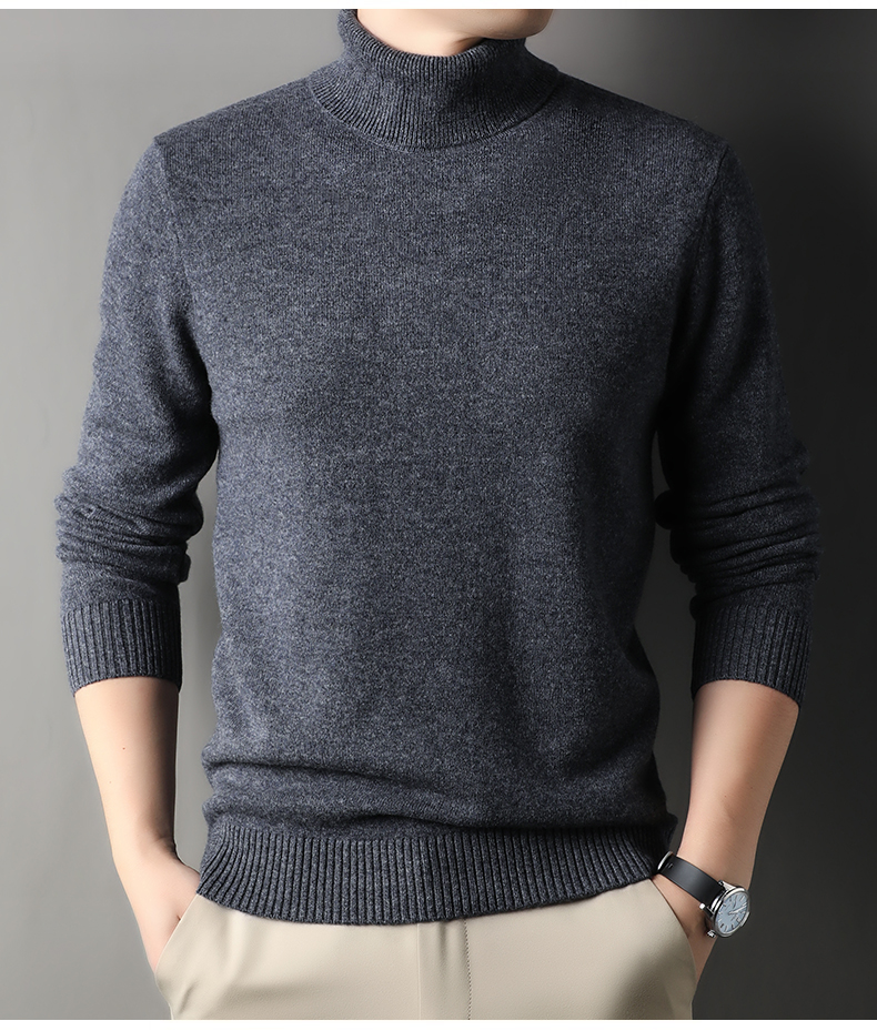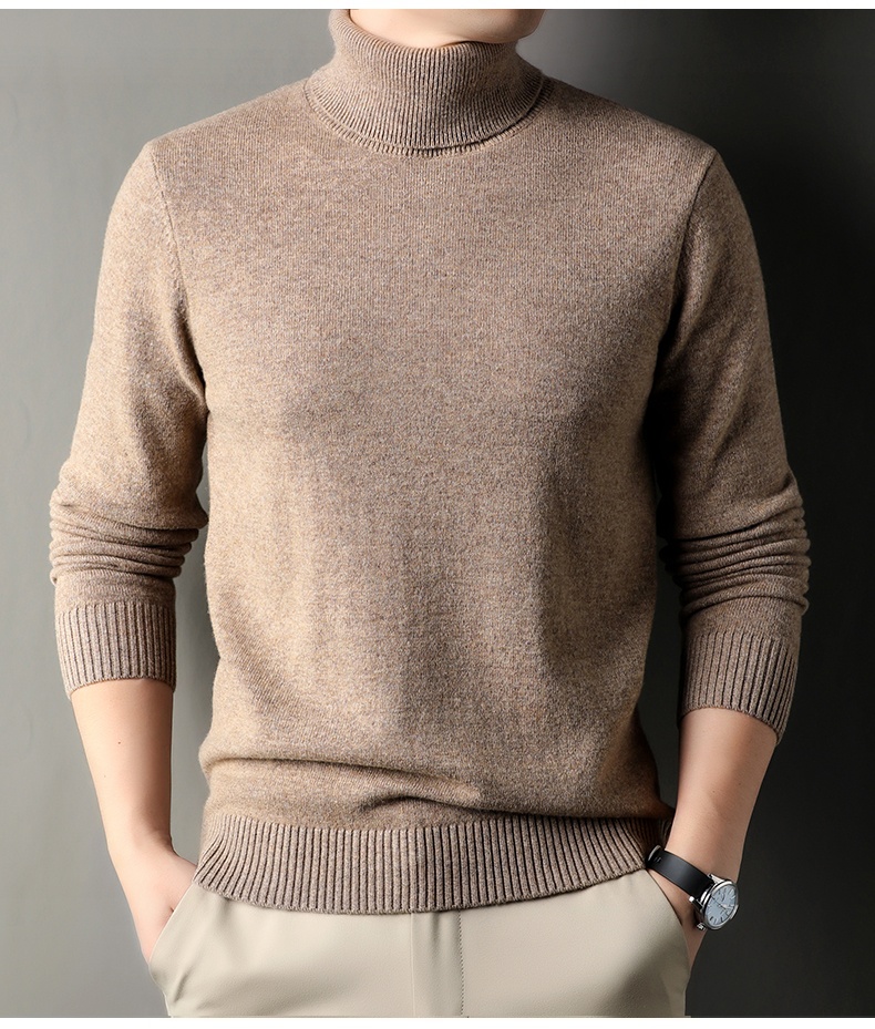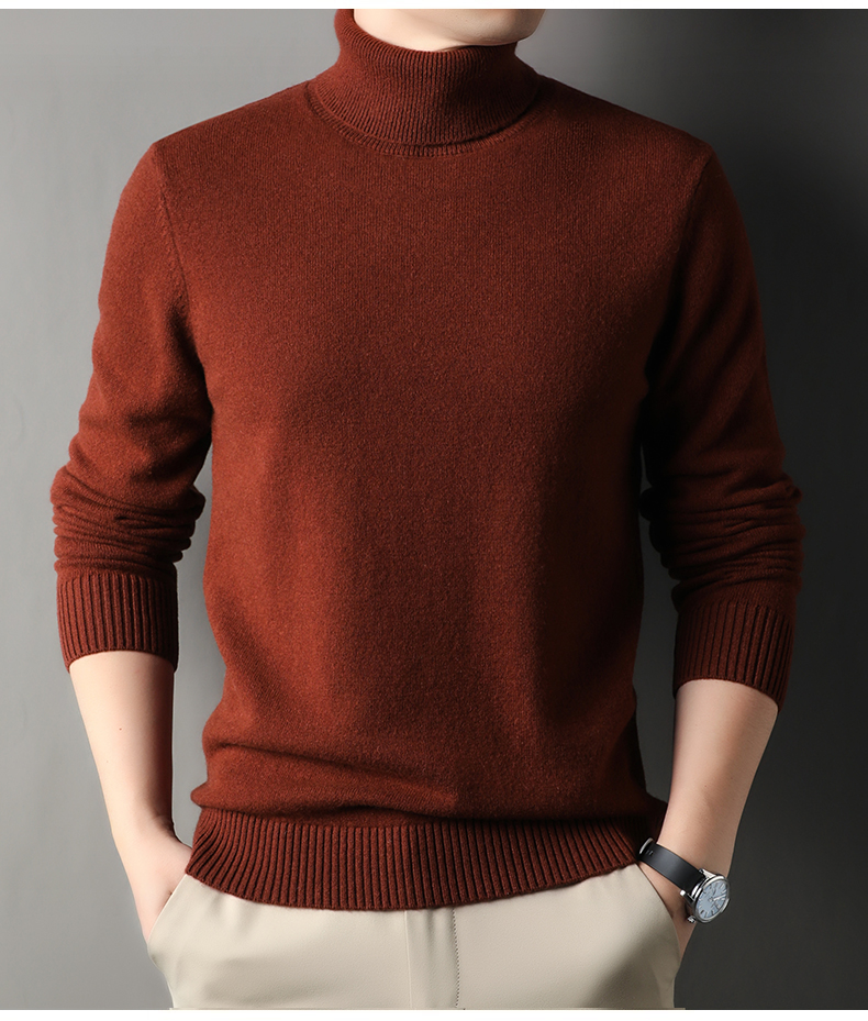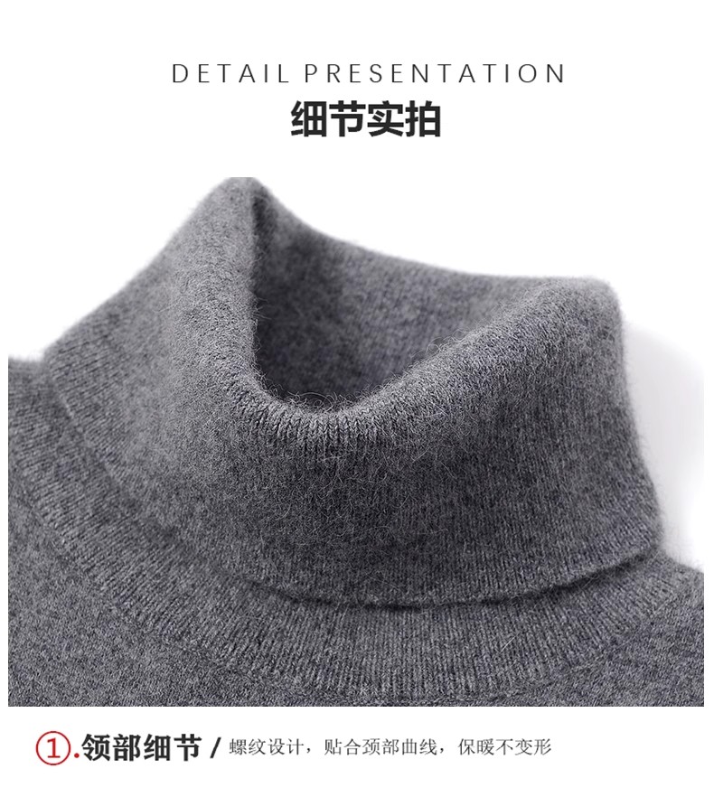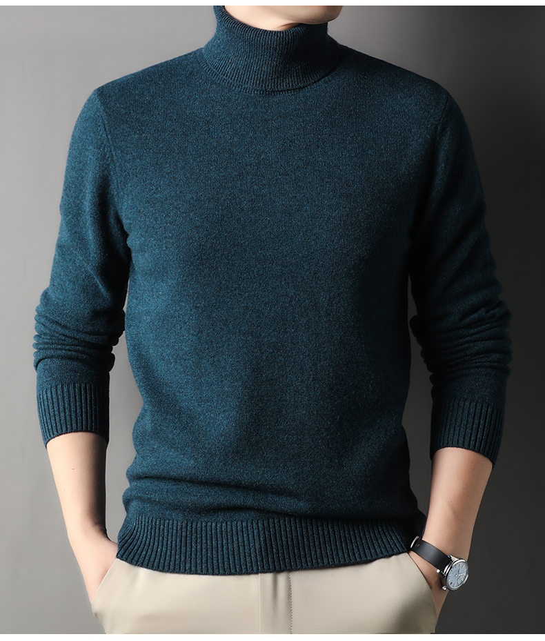 Hengyuanxiang Men's 100% Pure Wool Turtleneck Sweater, Men's Winter Thickened Warm Knitted Base Layer Cashmere Sweater