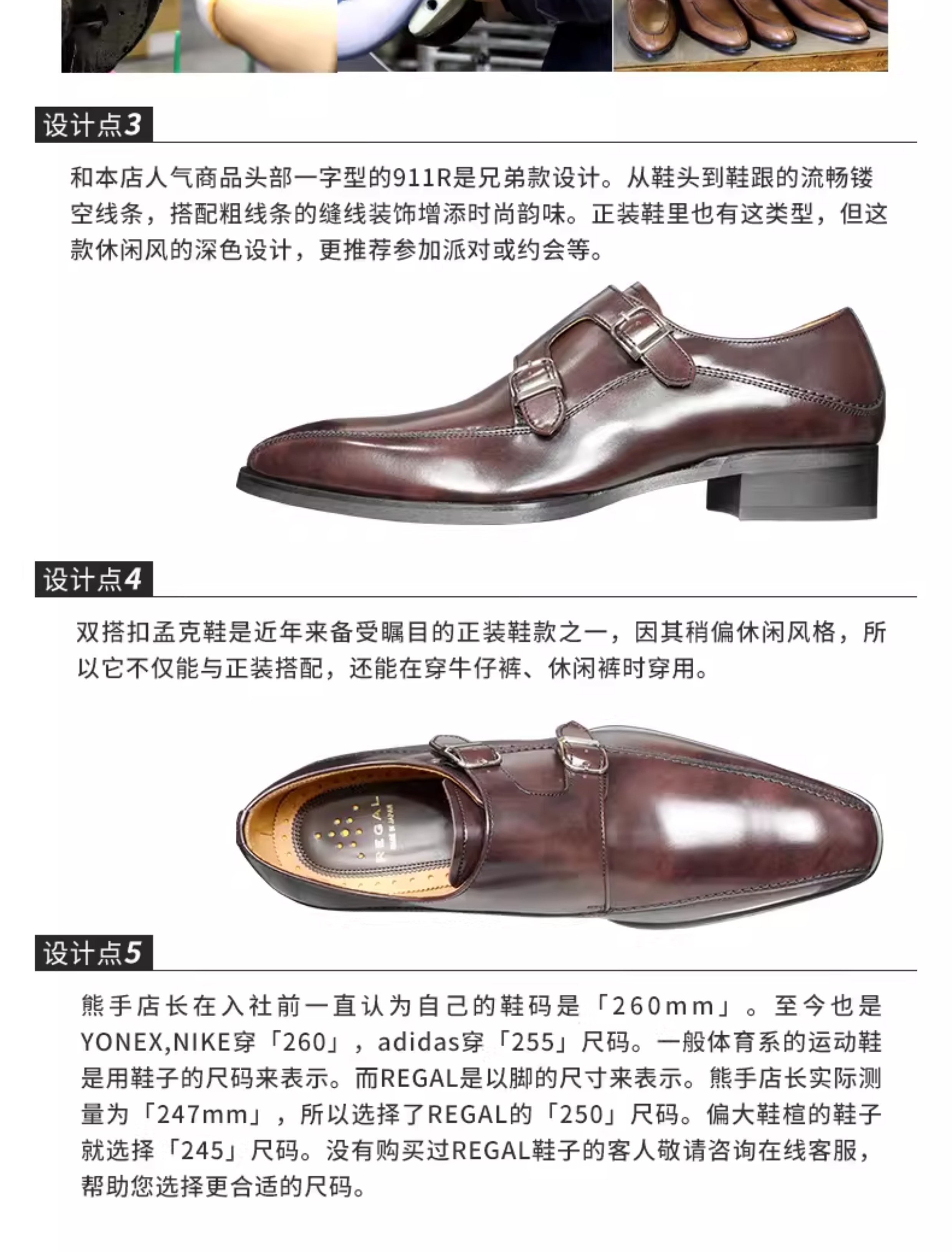 Regal 913R Japanese-Made Business Formal Shoes, Mark Zhi Method 911R Series Men's Fashion Monk Shoes