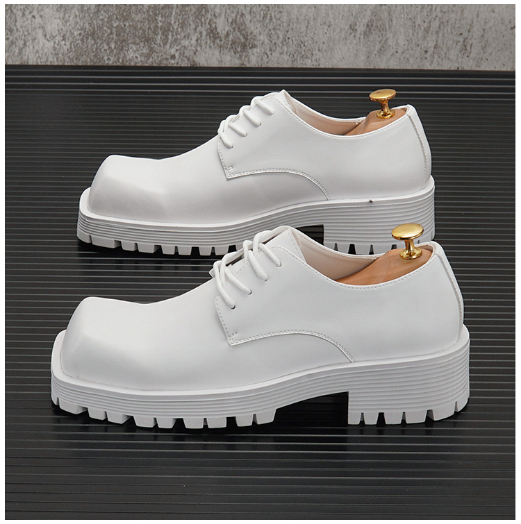 White Square-Toe Shoes, Men's Suit Shoes, Trendy and Unique Thick-Soled Height-Increasing Derby Shoes, Business Formal White Shoes