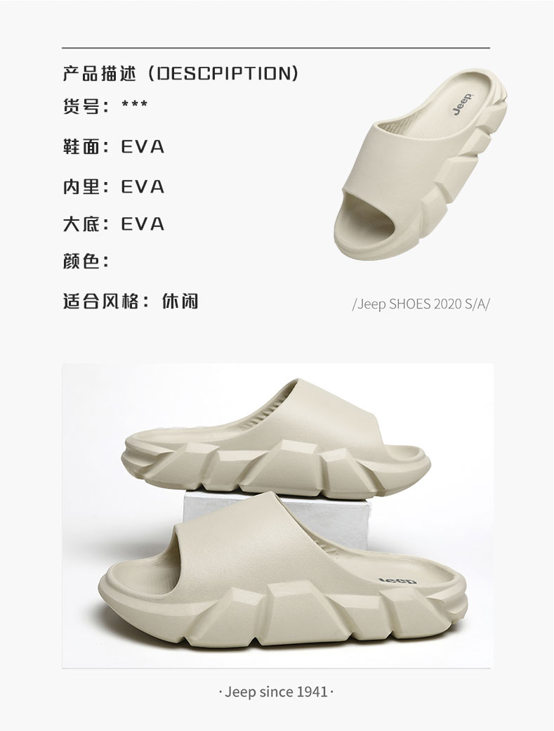 Jeep/Jeep Slippers for Men, New Summer Style for Outdoor Wear, ins Soft-Soled Sandals, Outdoor Sports Couple Style Slip-Ons