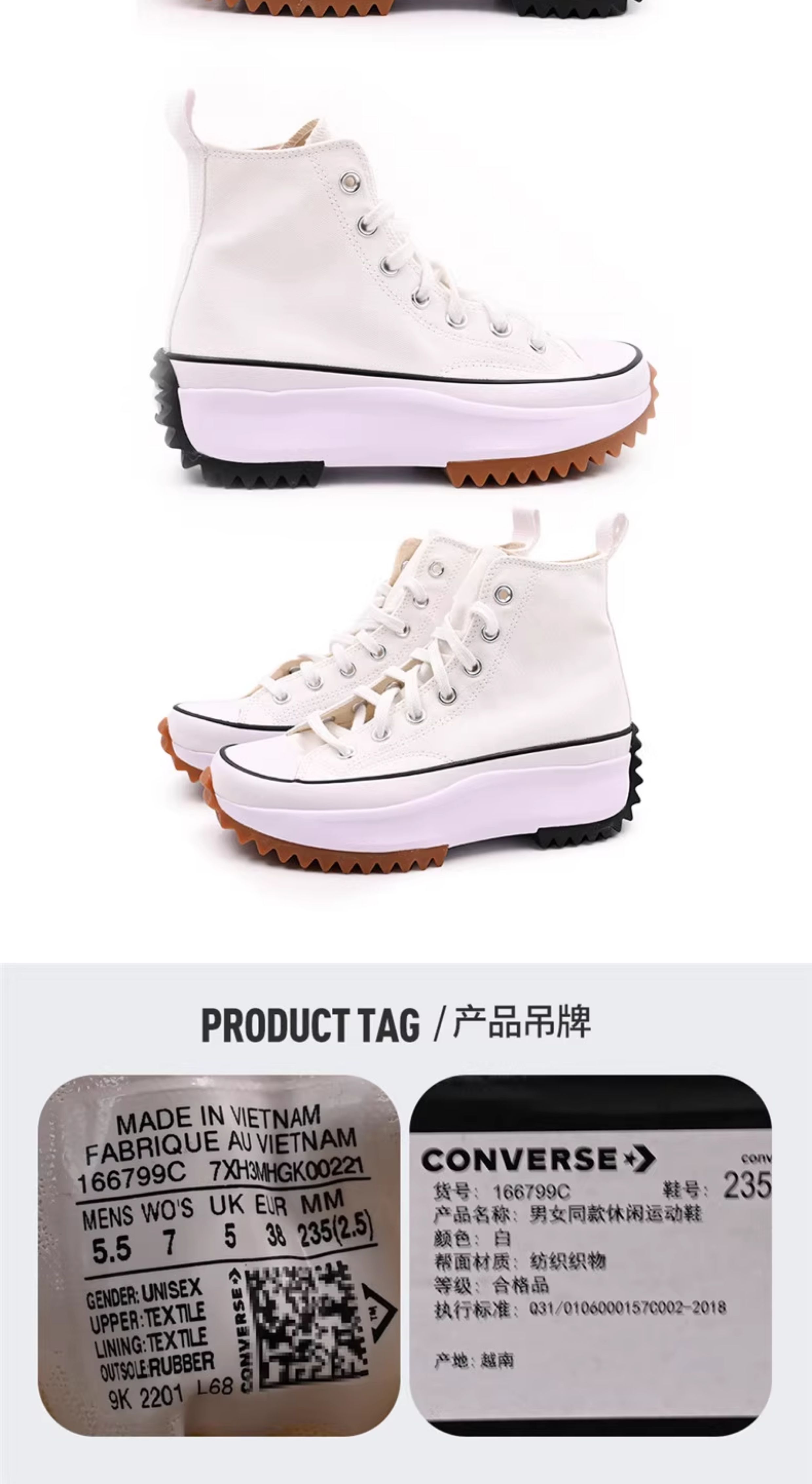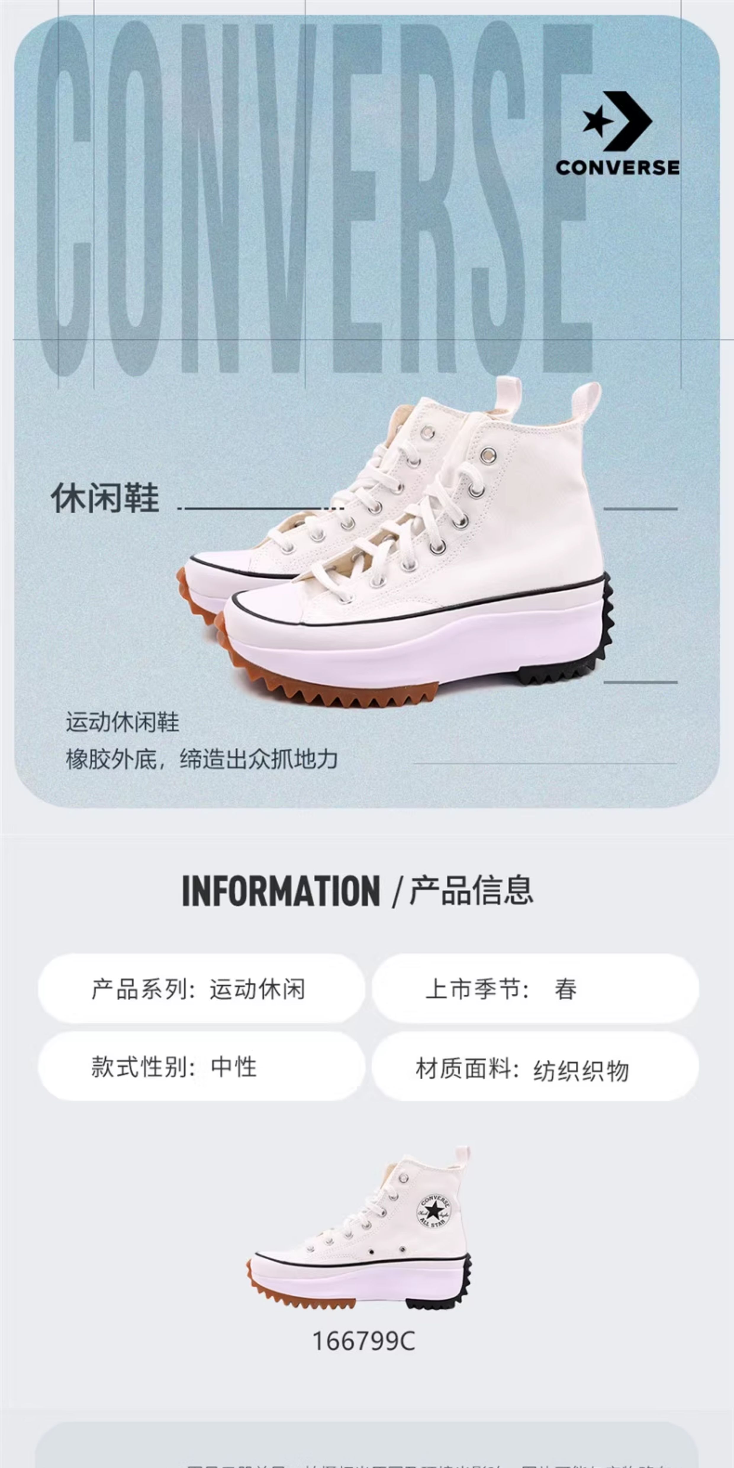 Converse Run Star Hike Men's and Women's High-Top Casual Meteor Thick-Soled Shoes Canvas Shoes 166799C