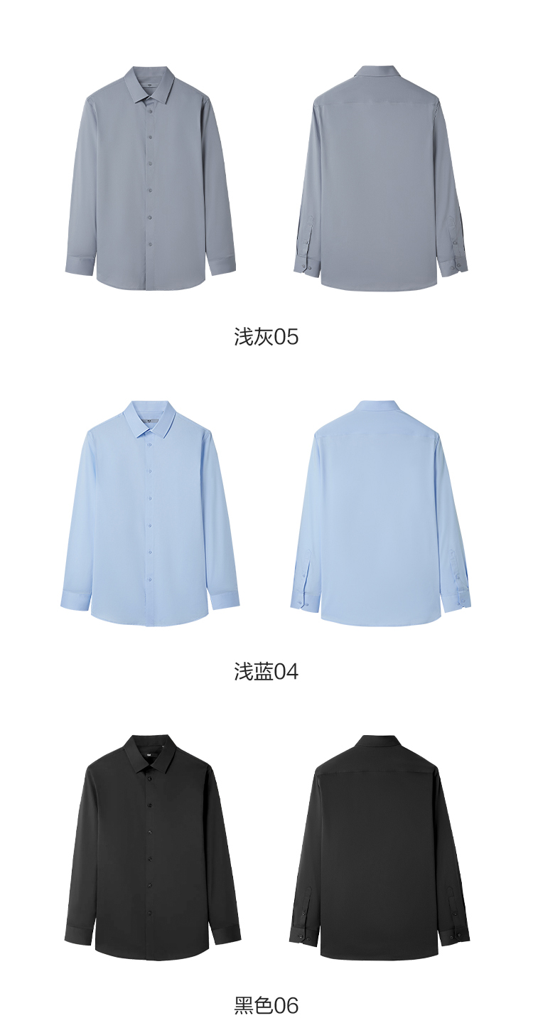 HLA Long-Sleeved White Shirt for Men, Wrinkle-Free Summer Shirt, Simple Business Black Work Shirt for Men