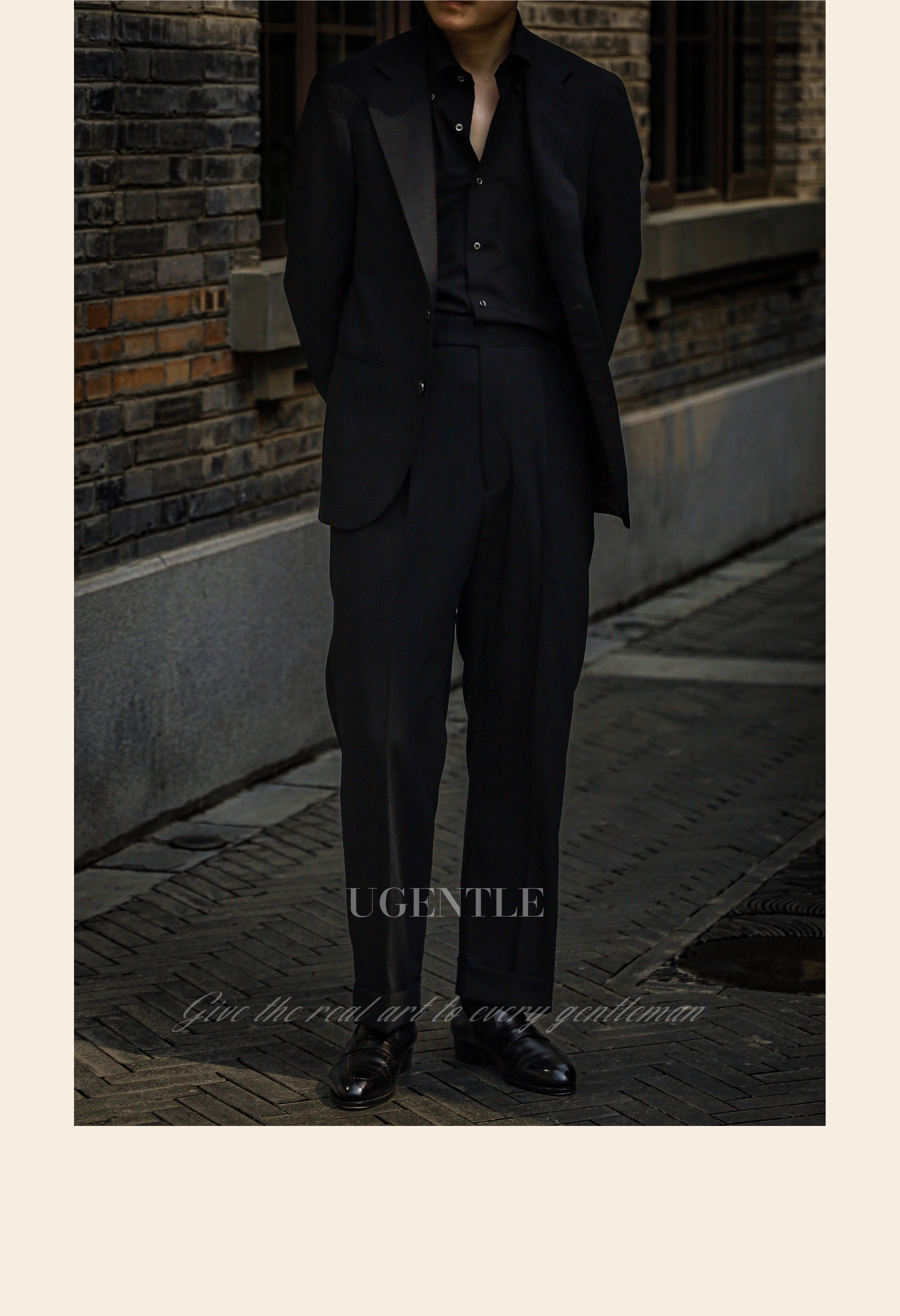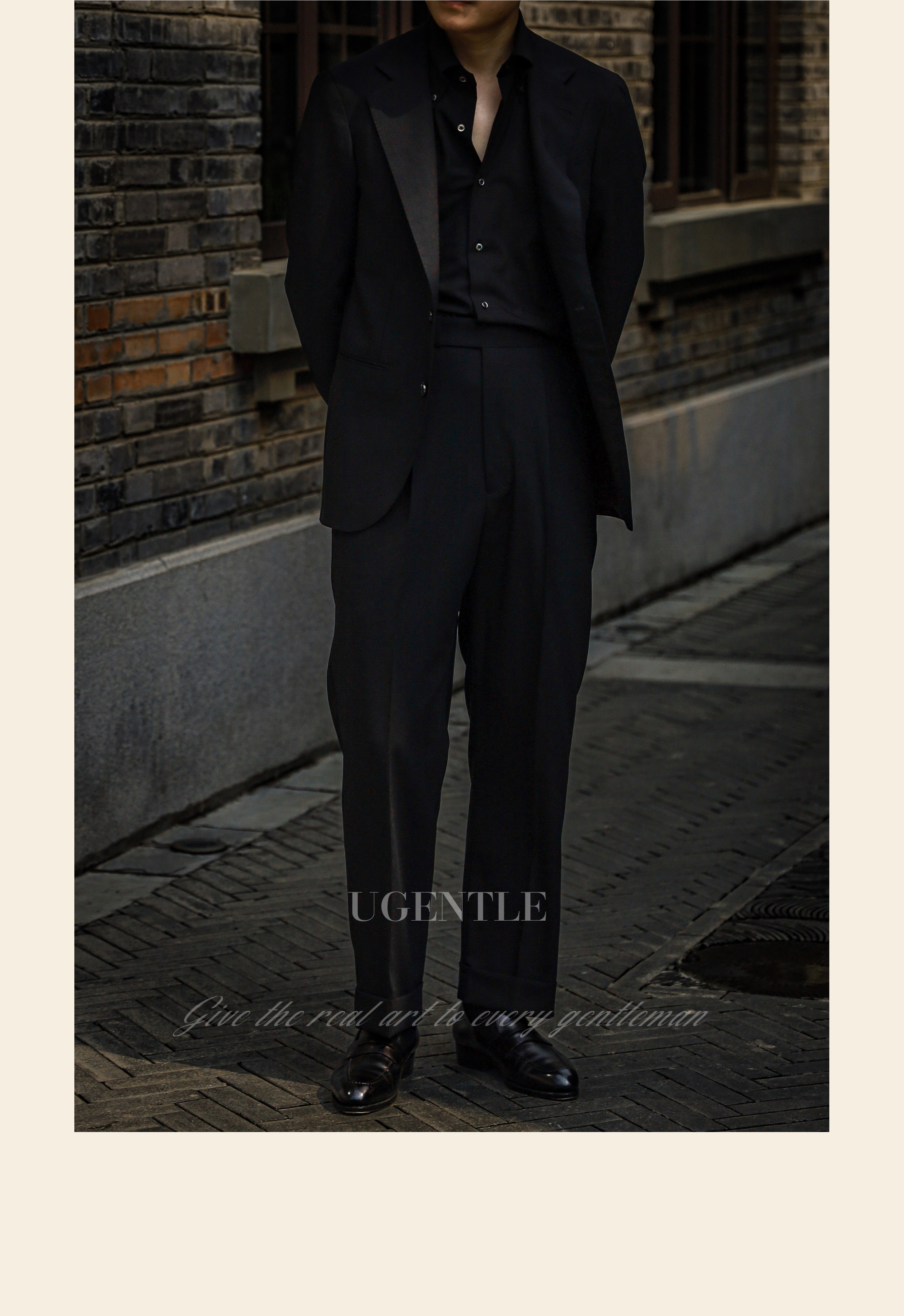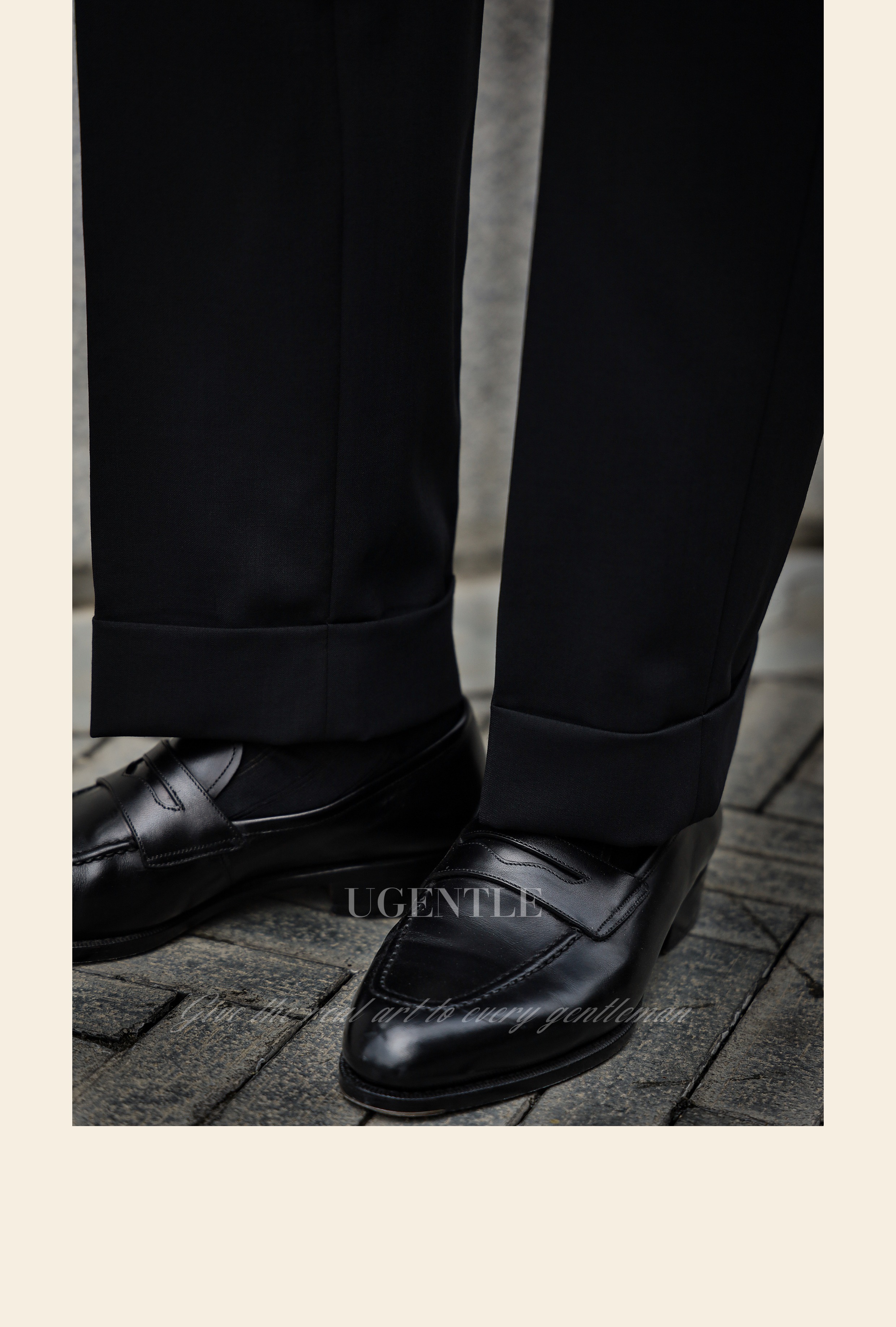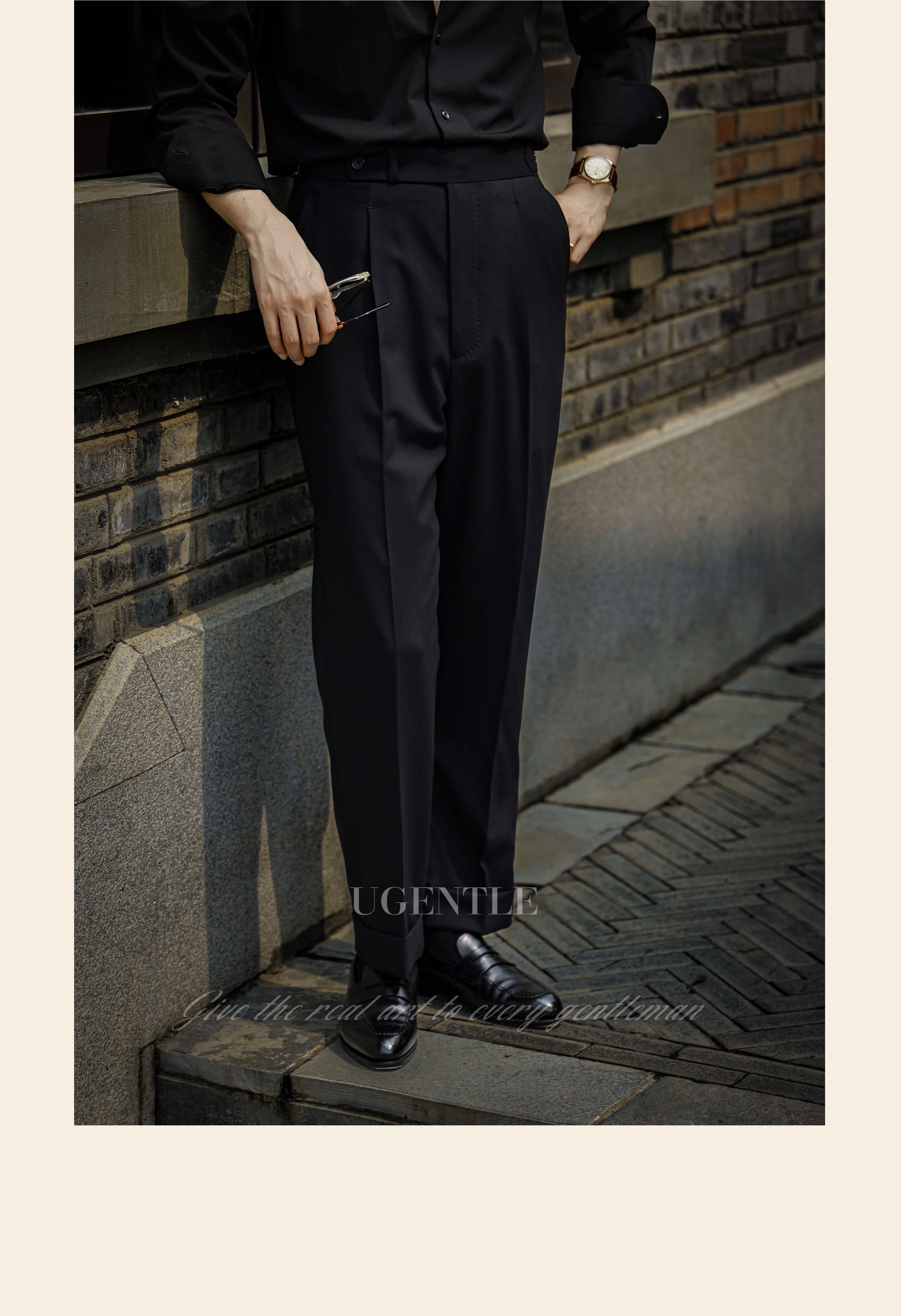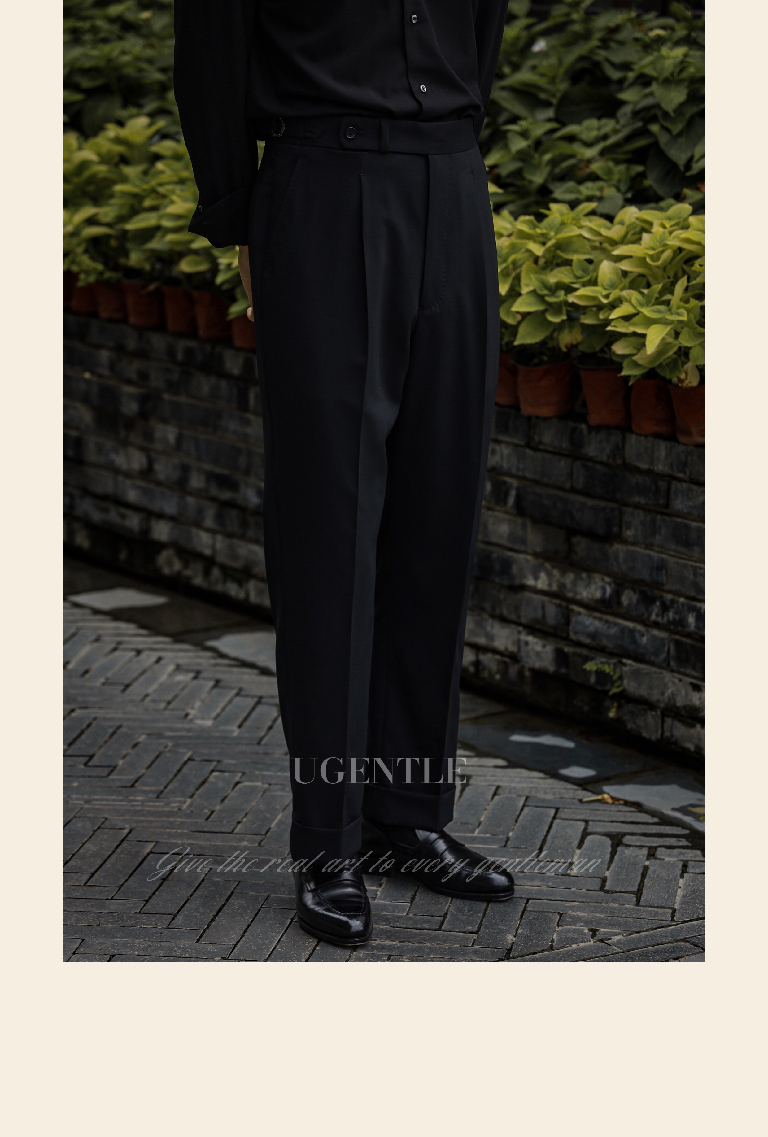 Ugentle Men's Clothing All-Wool High-Craftsmanship Elegant Black Italian Retro Naples High-Waisted Men's Suit Pants