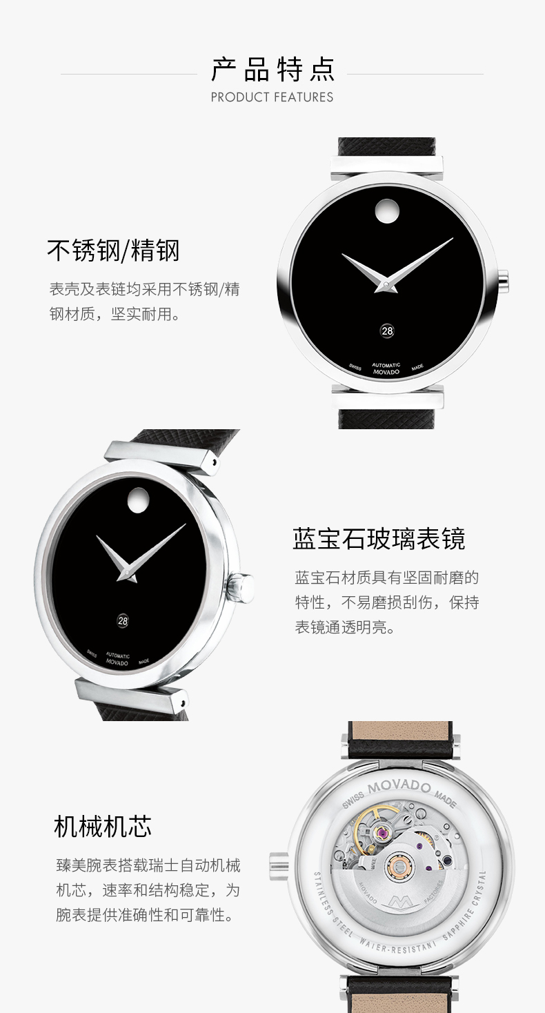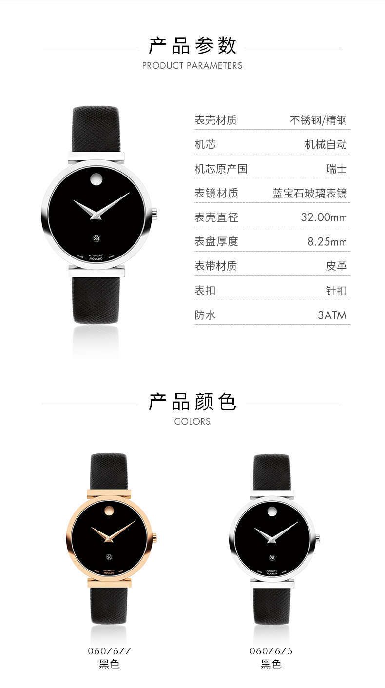 [Double 11] Movado Museum Series Swiss Imported Women's Leather Strap Automatic Mechanical Watch