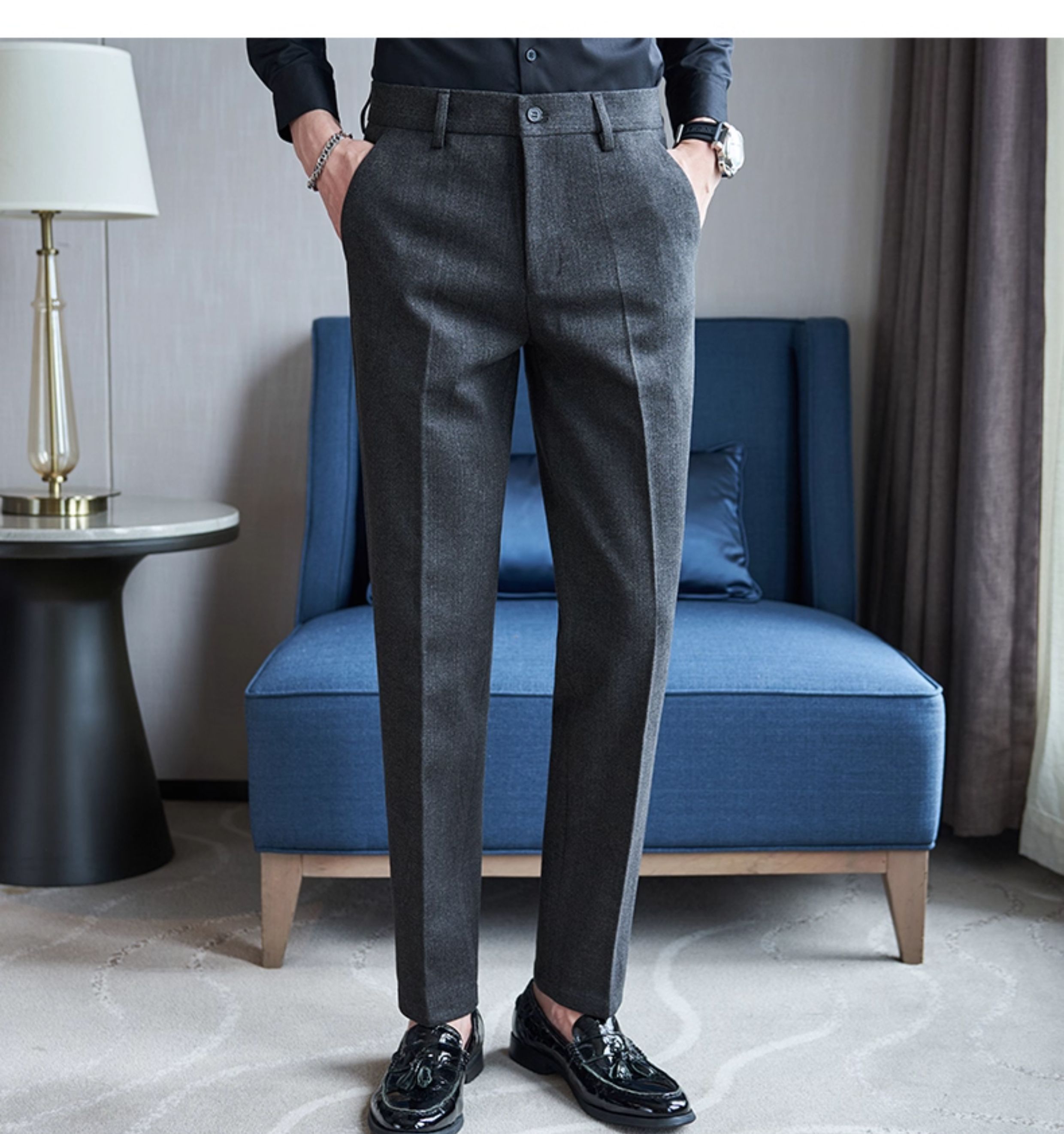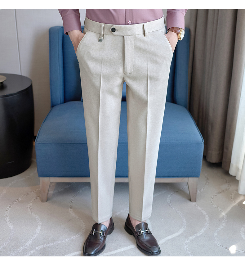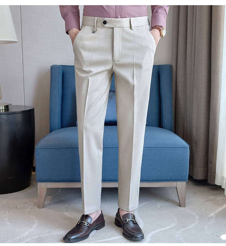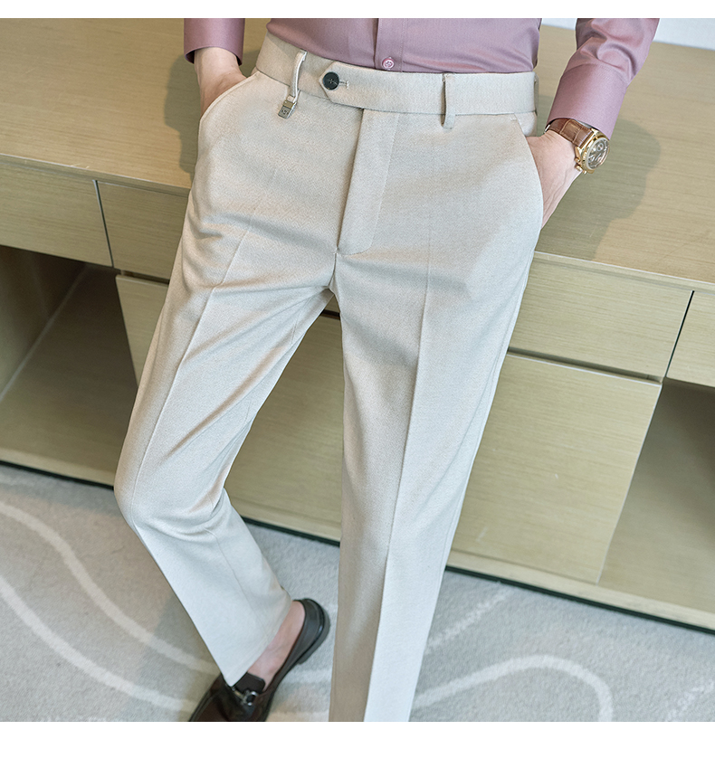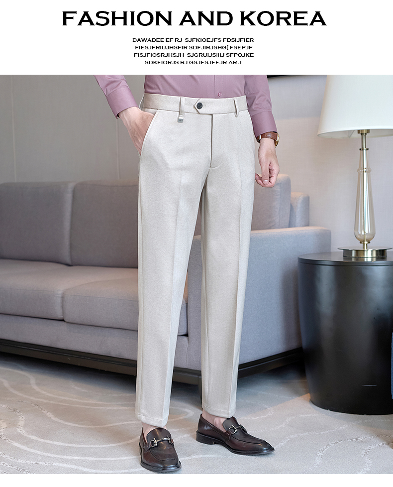 Autumn and Winter Woolen Material Trousers for Men, Winter Herringbone Pattern Woolen Men's Casual Pants, Brushed Business Suit Trousers for Men
