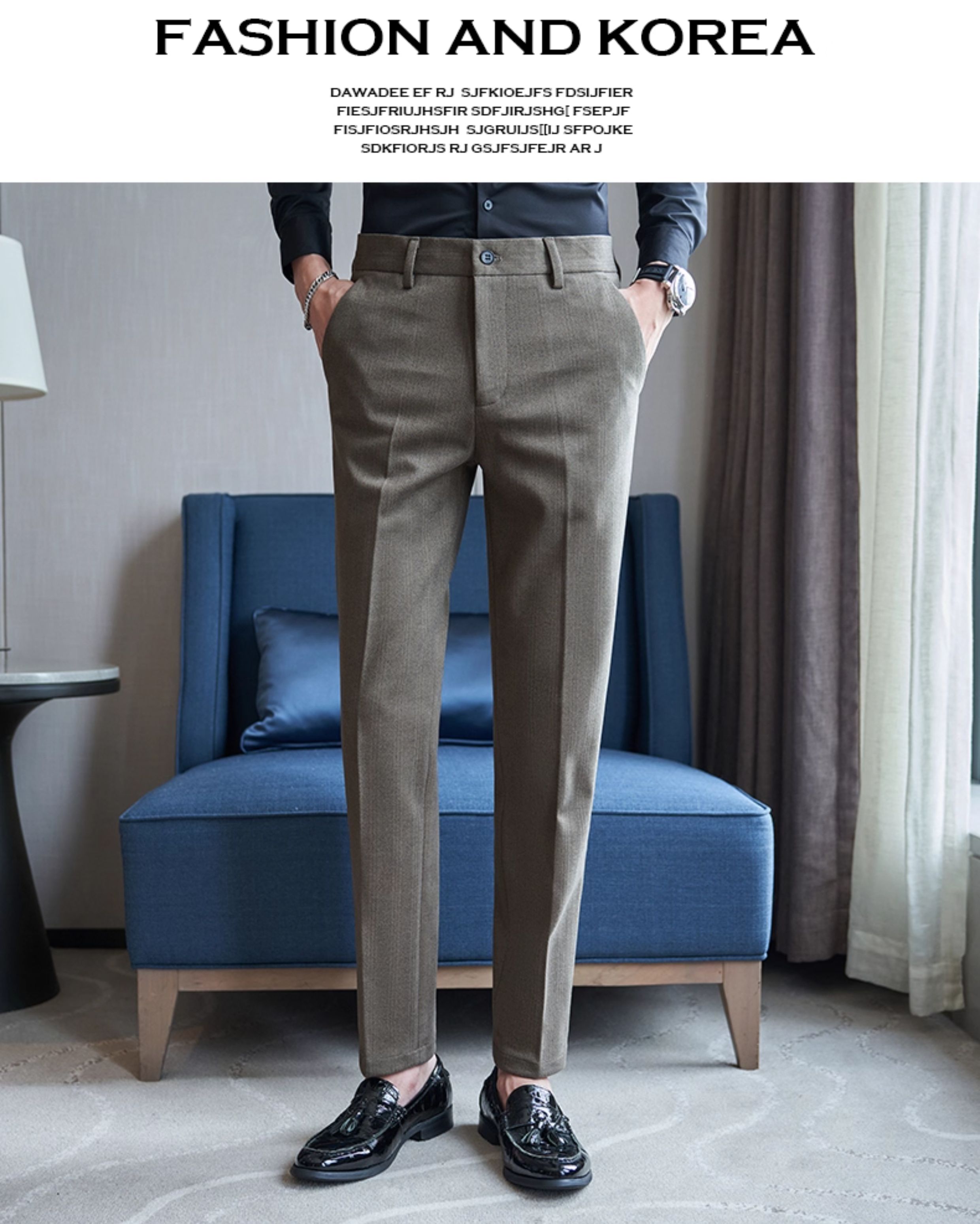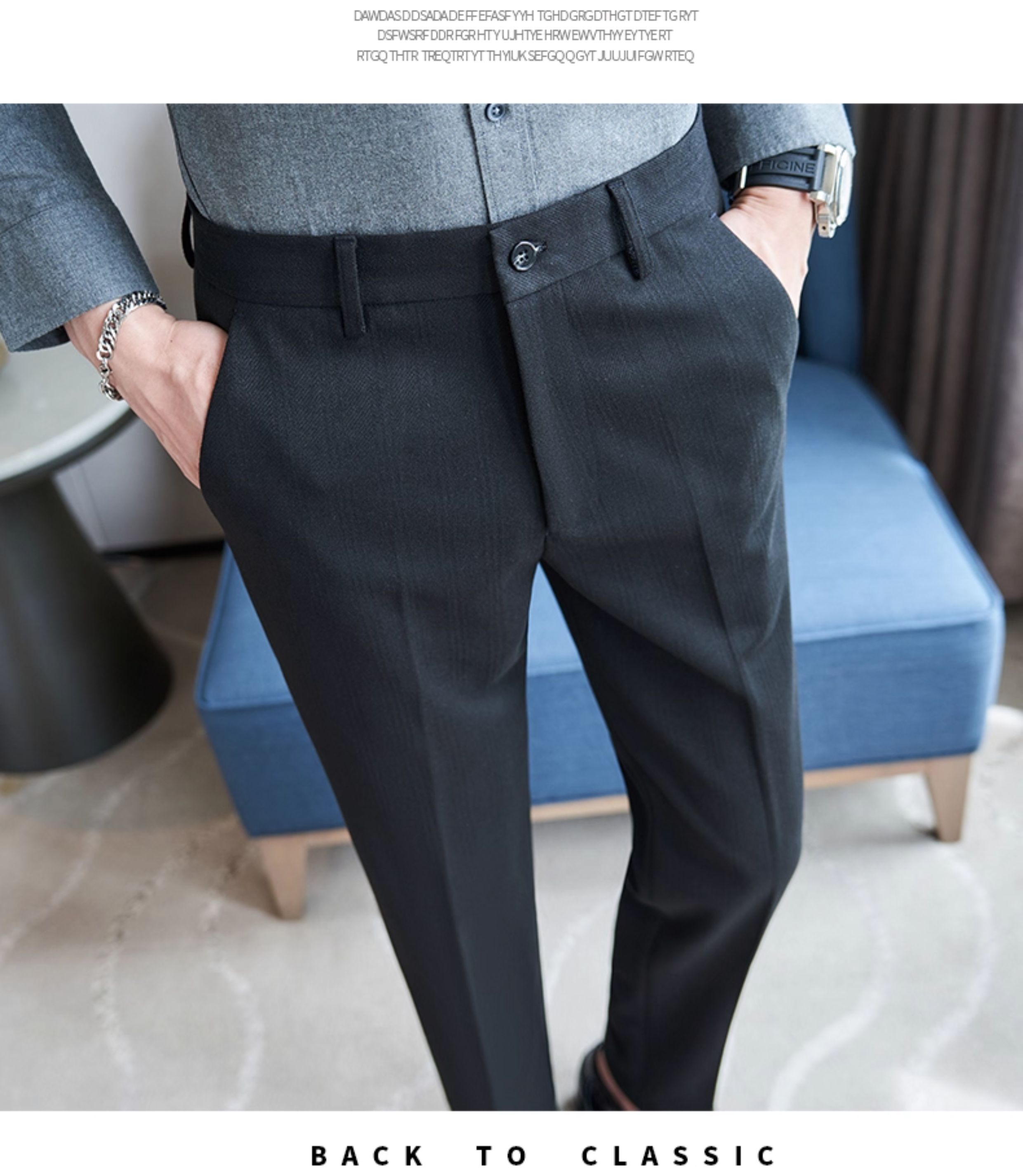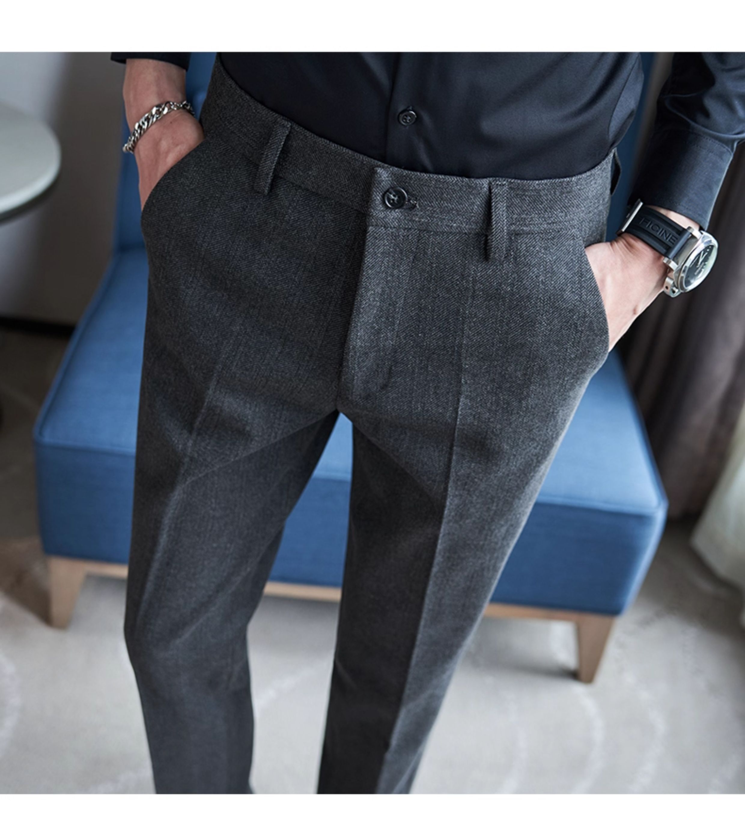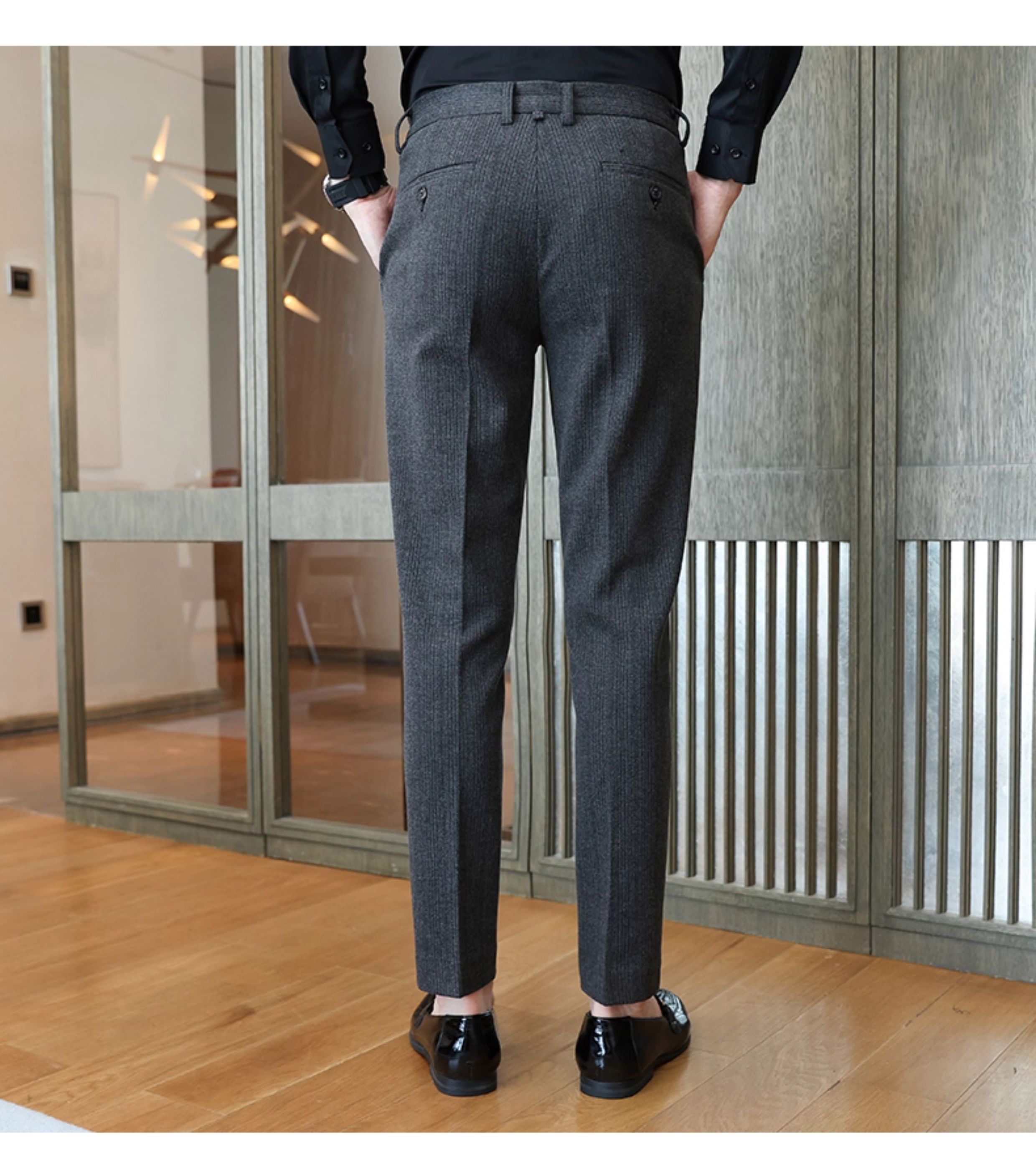 Autumn and Winter Woolen Material Trousers for Men, Winter Herringbone Pattern Woolen Men's Casual Pants, Brushed Business Suit Trousers for Men