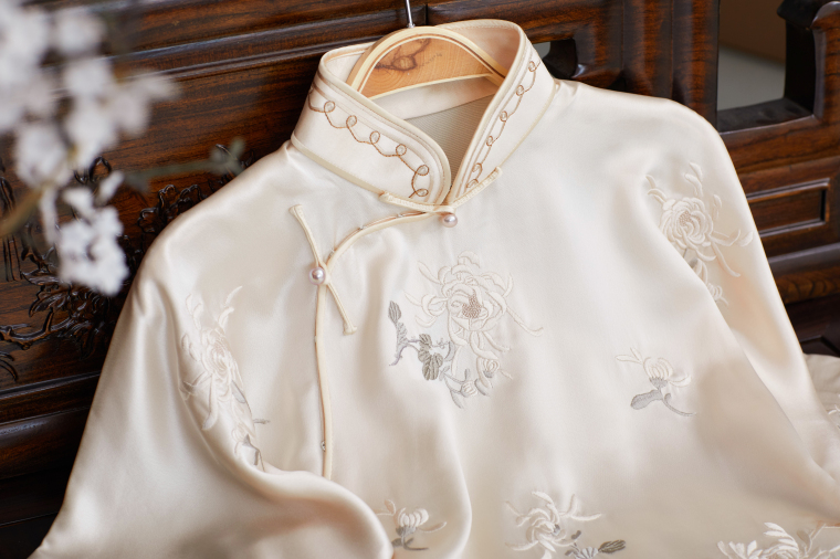 Meng Qingzhi | a City of Wind and Snow | Republic of China Style Embroidered Handmade Buttoned Oversized Sleeve Cheongsam Dress for Daily Wear, Engagement, and Toasting