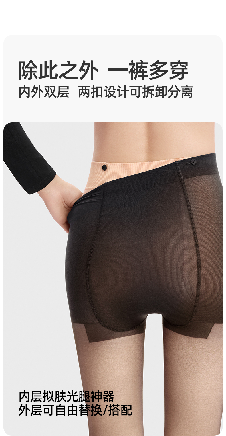 【Same Style as Yang Mi】Xiao Ye Hezi Double-Layer Black Silk Stockings, Autumn and Winter Slimming Black Translucent Skin-Tone Fleece-Lined Pantyhose