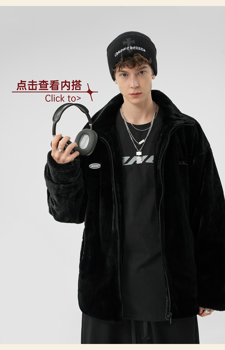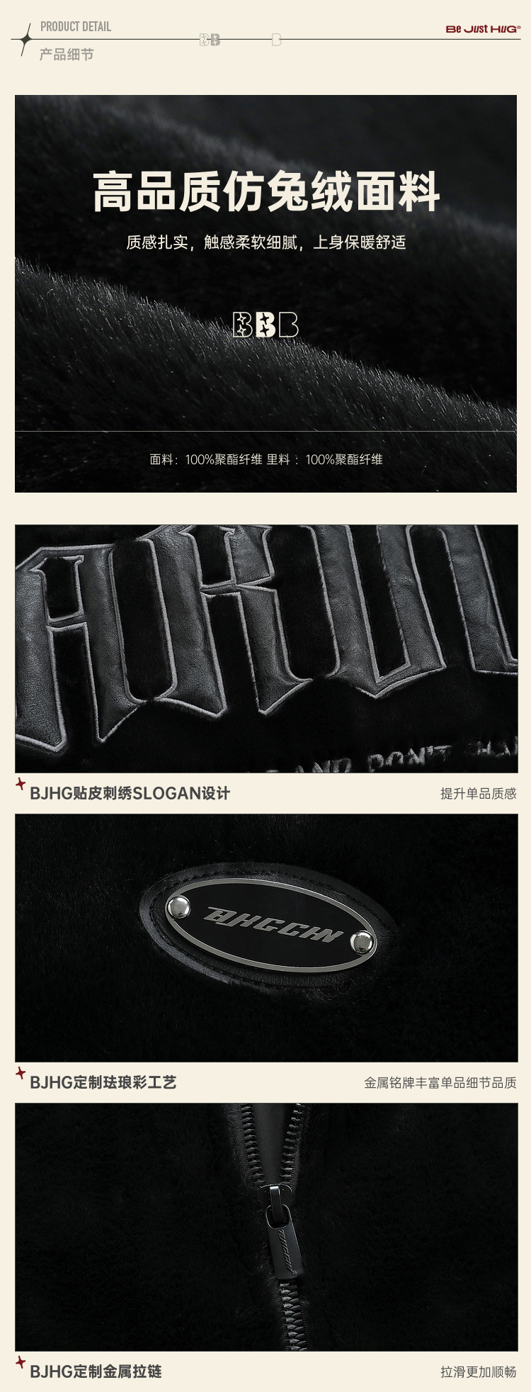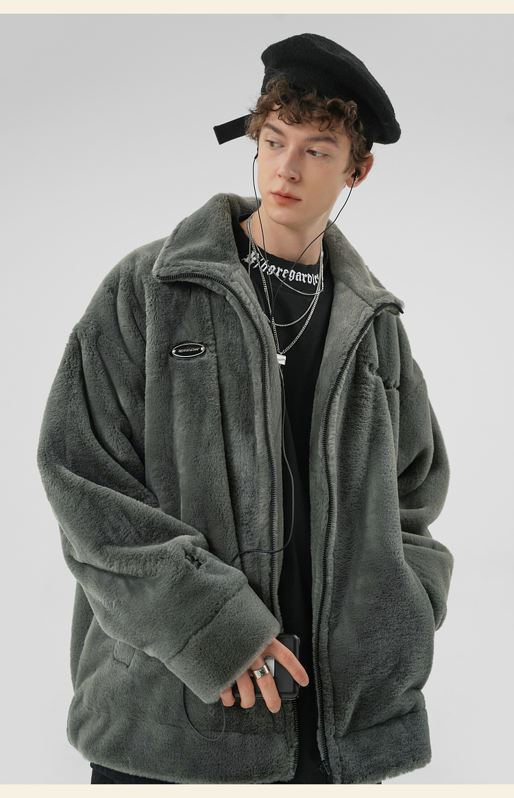 Bjhg Reckless Imitation Rabbit Fur Plush Coat Men's Winter Cotton Jacket American Style Thickened High-End Feel Jacket