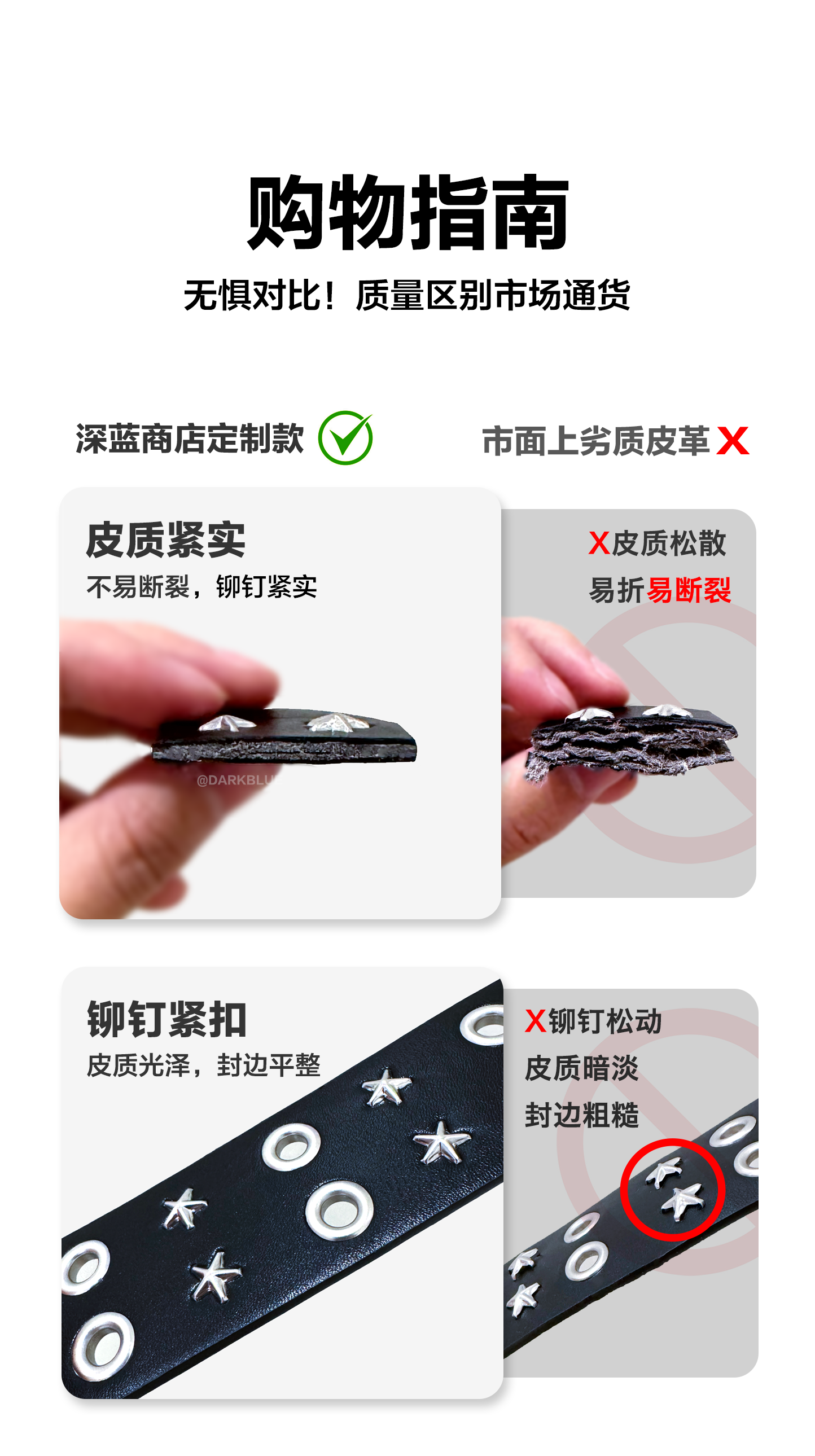 Darkblue Retro Design Studded Punk Star Belt No-Punch Metal Belt for Men and Women ins