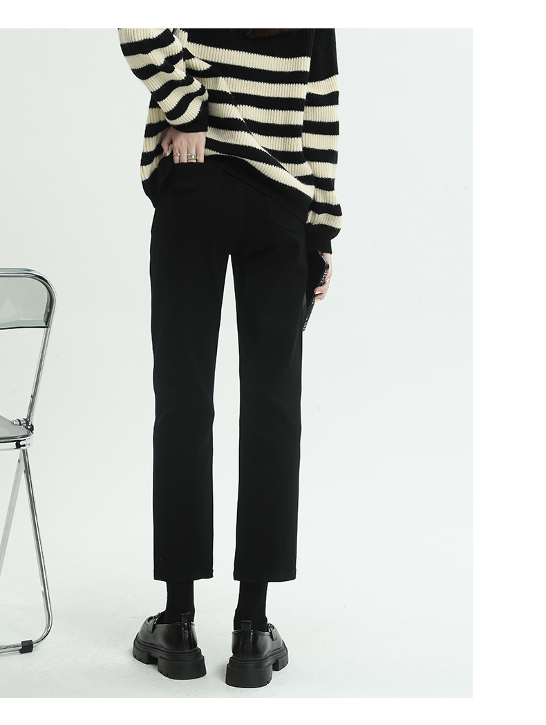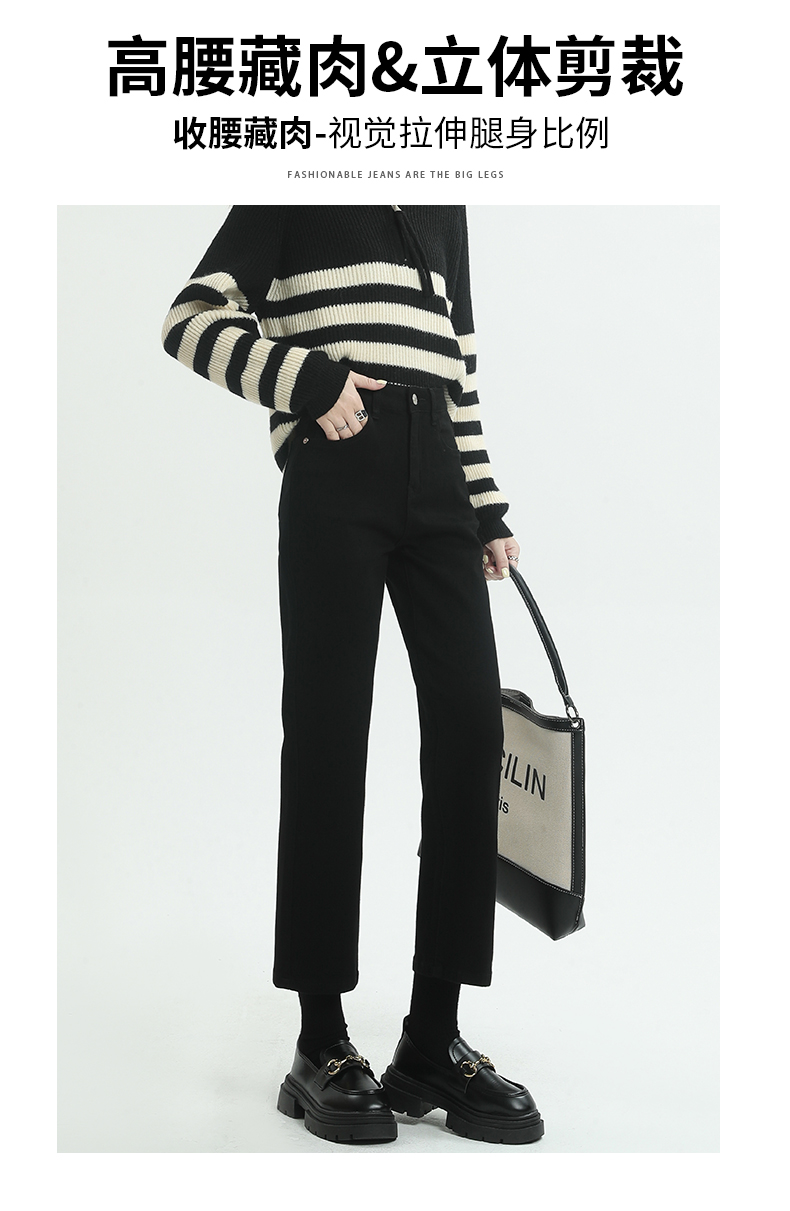 Black Straight-Leg Jeans for Women, Cropped Length, 2025 New Autumn and Winter Fleece-Lined High-Waisted Pants, Spring and Autumn Eight-Ninth Length Pants