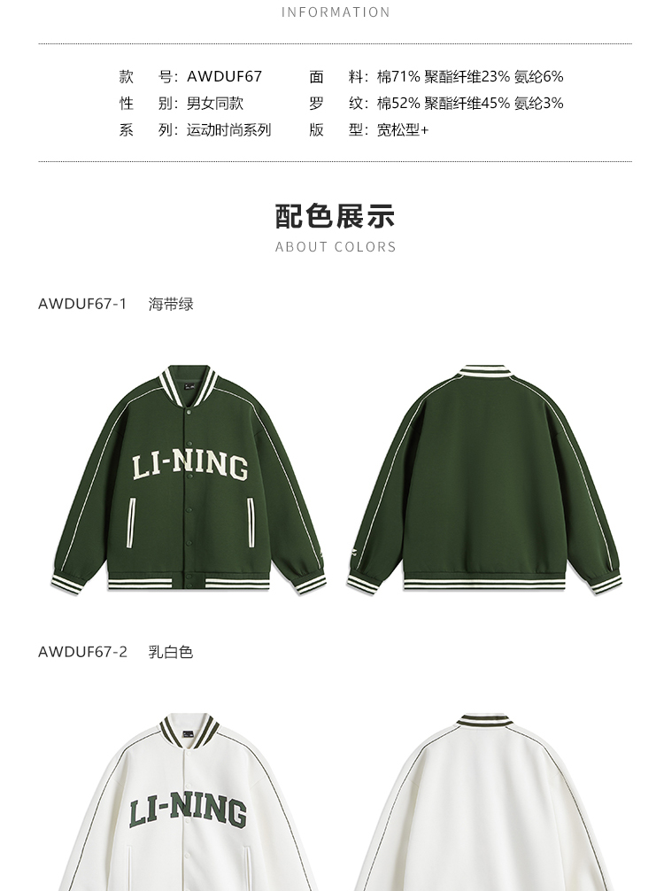 Li-Ning Baseball Jacket for Men, New Autumn and Winter Official Couple Style American Sweatshirt, Loose Top, Sports Jacket for Women