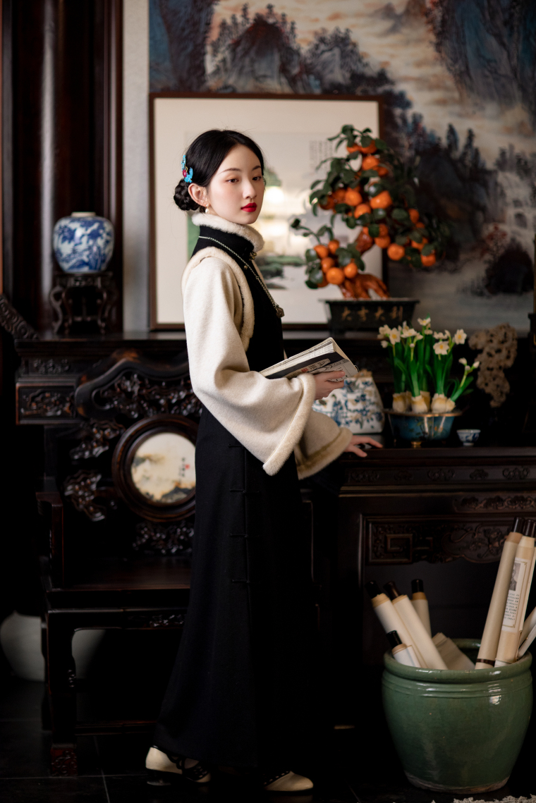 Warm Corner Whispers | a City of Wind and Snow | Retro Fake Two-Piece Woolen Yuanbao Collar with Oversized Sleeves, Republic of China Style Cheongsam