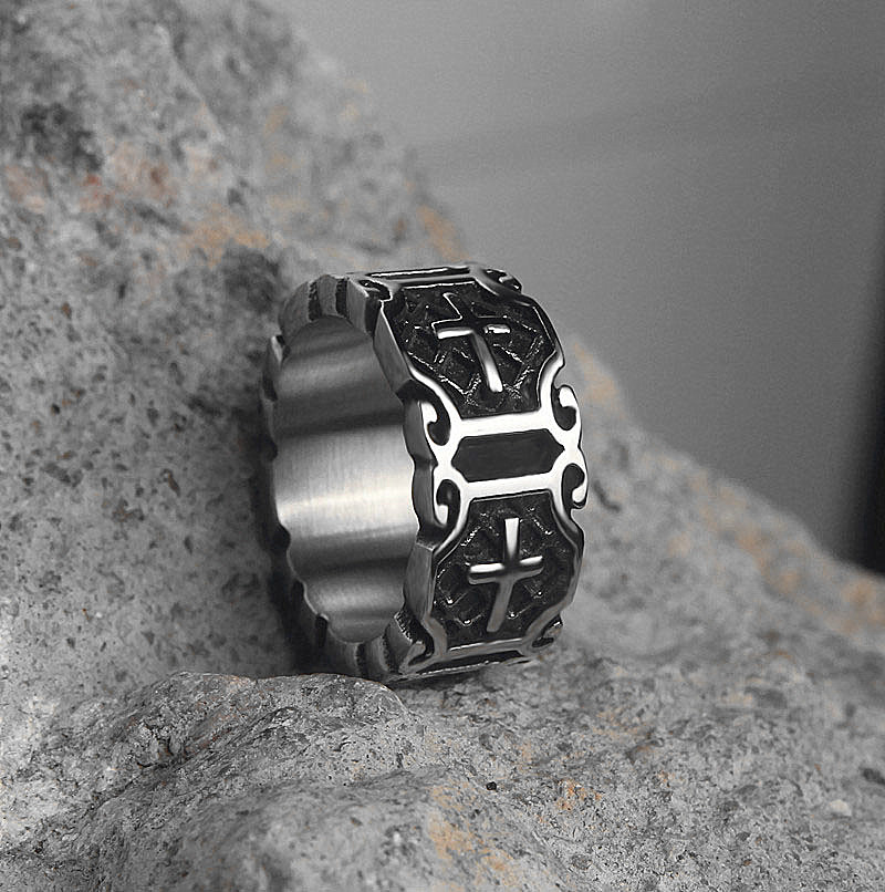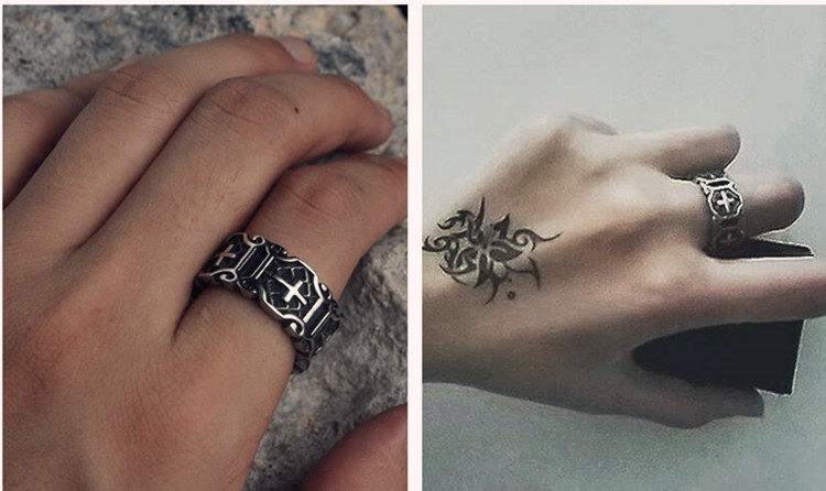 Trendy Cross Ring for Men, High Street Niche Design, Hip-Hop Punk Ring, Light Luxury Titanium Steel Non-Fading Tail Ring for Women