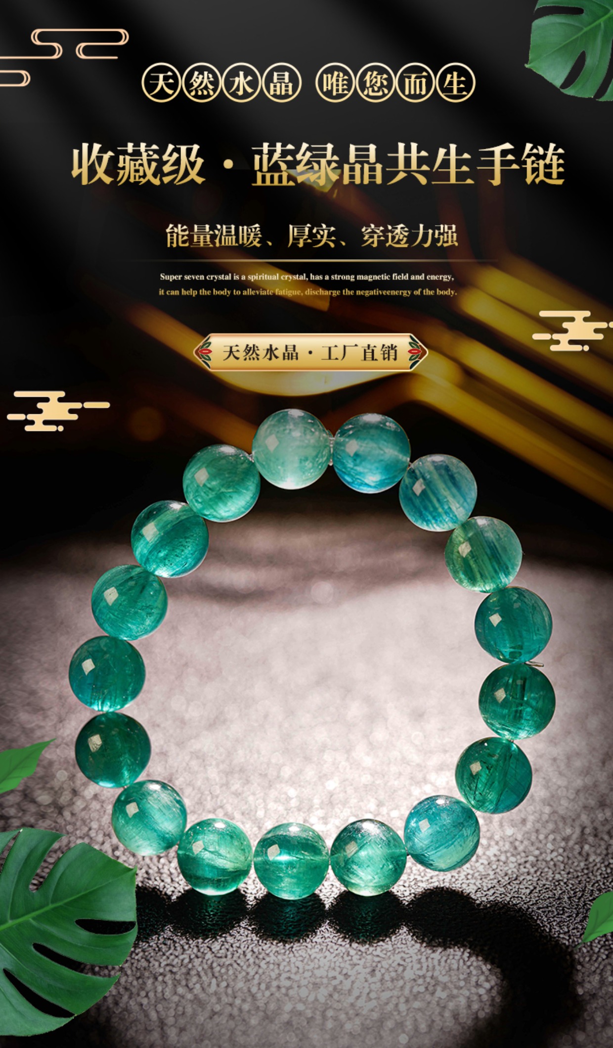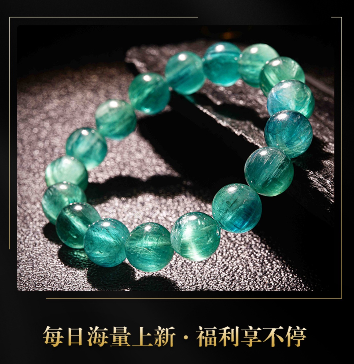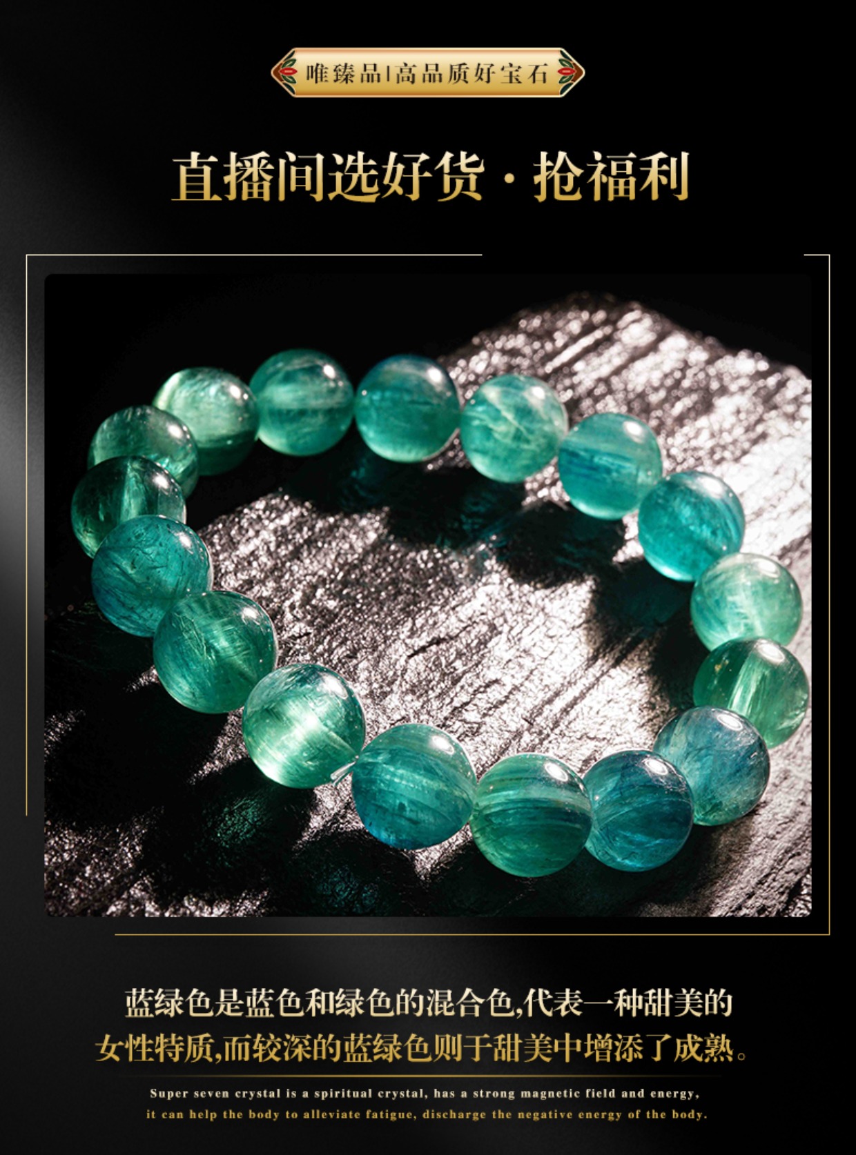 Only the Best Quality Jewelry: Natural Brazilian Blue-Green Crystal Bracelet, Rare Symbiotic Blue Crystal Cat's Eye Blue Crystal Bracelet