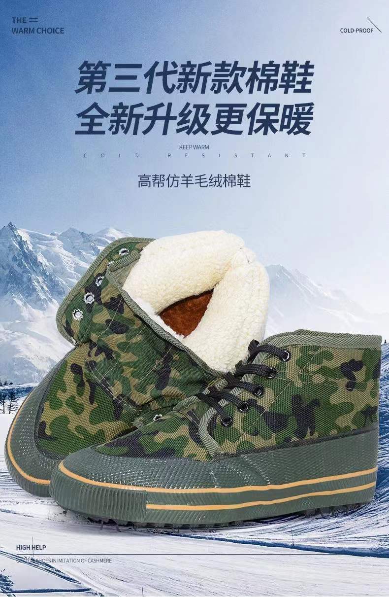 3520 Genuine Liberation Shoes for Men, Fleece-Lined Cotton Shoes, Large Size Work Safety Rubber Shoes, Warm Snow Shoes, Outdoor Hiking Shoes