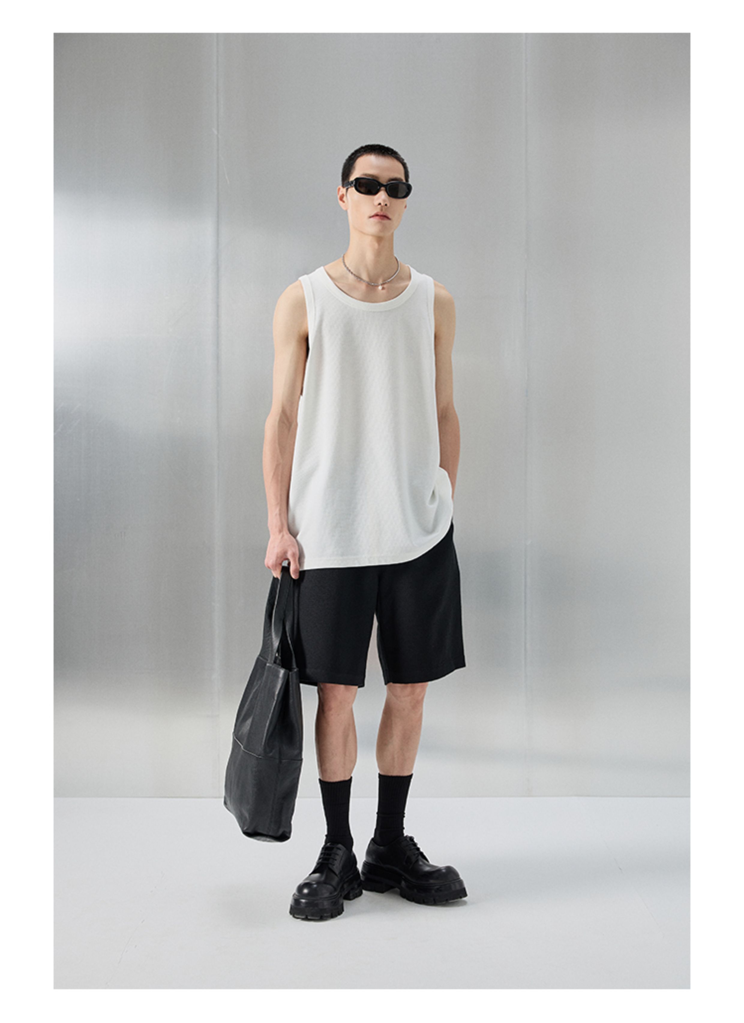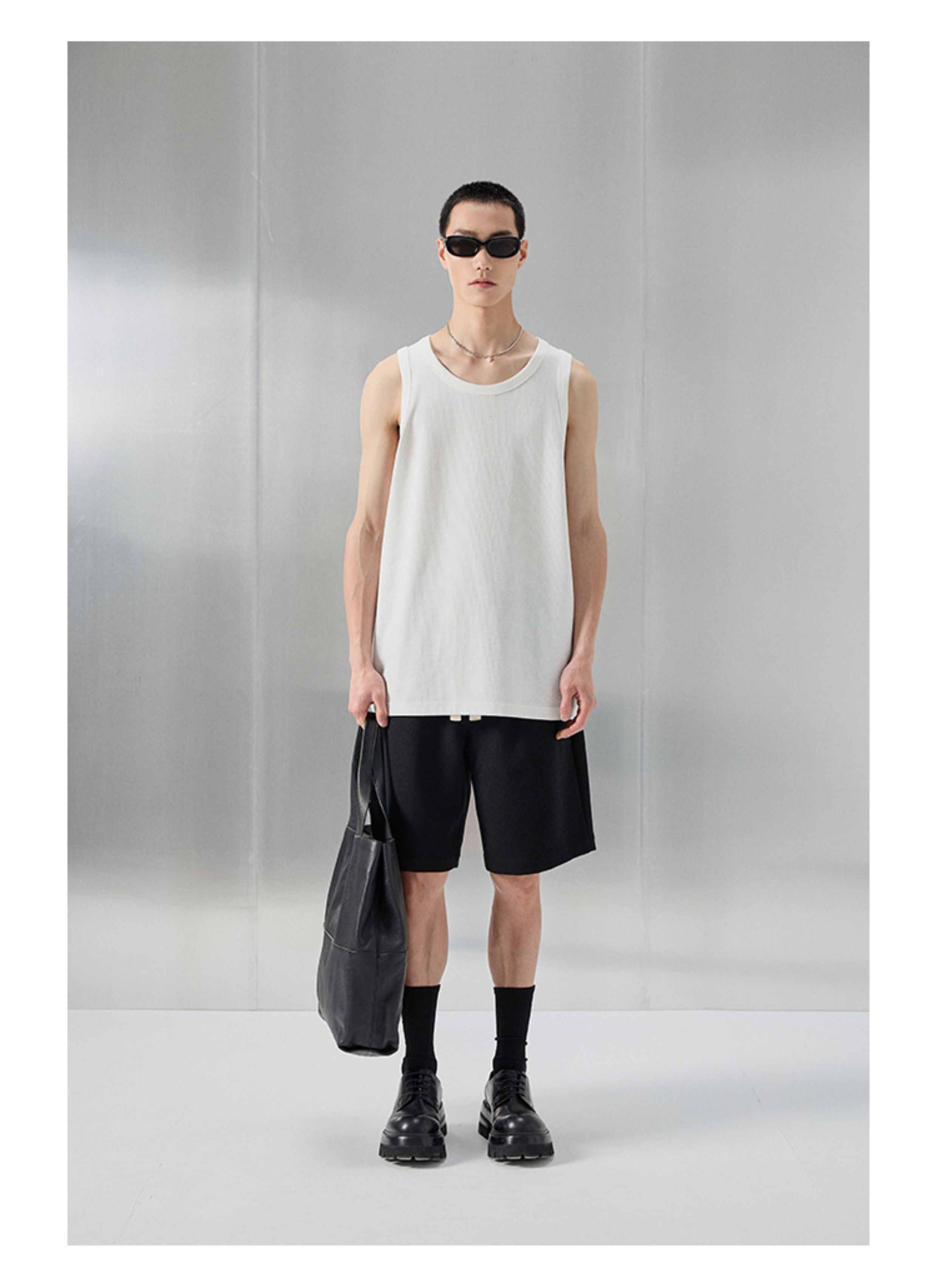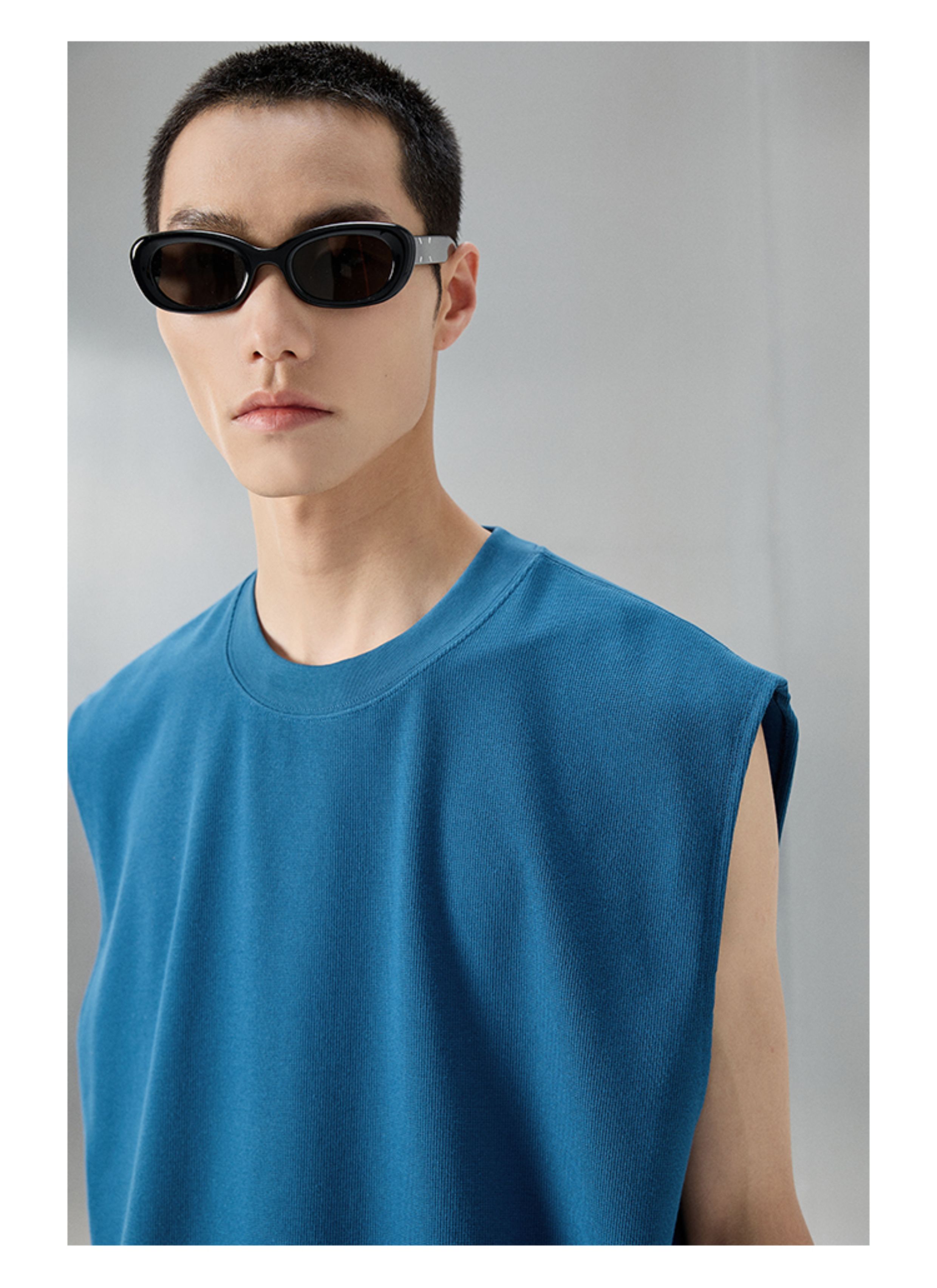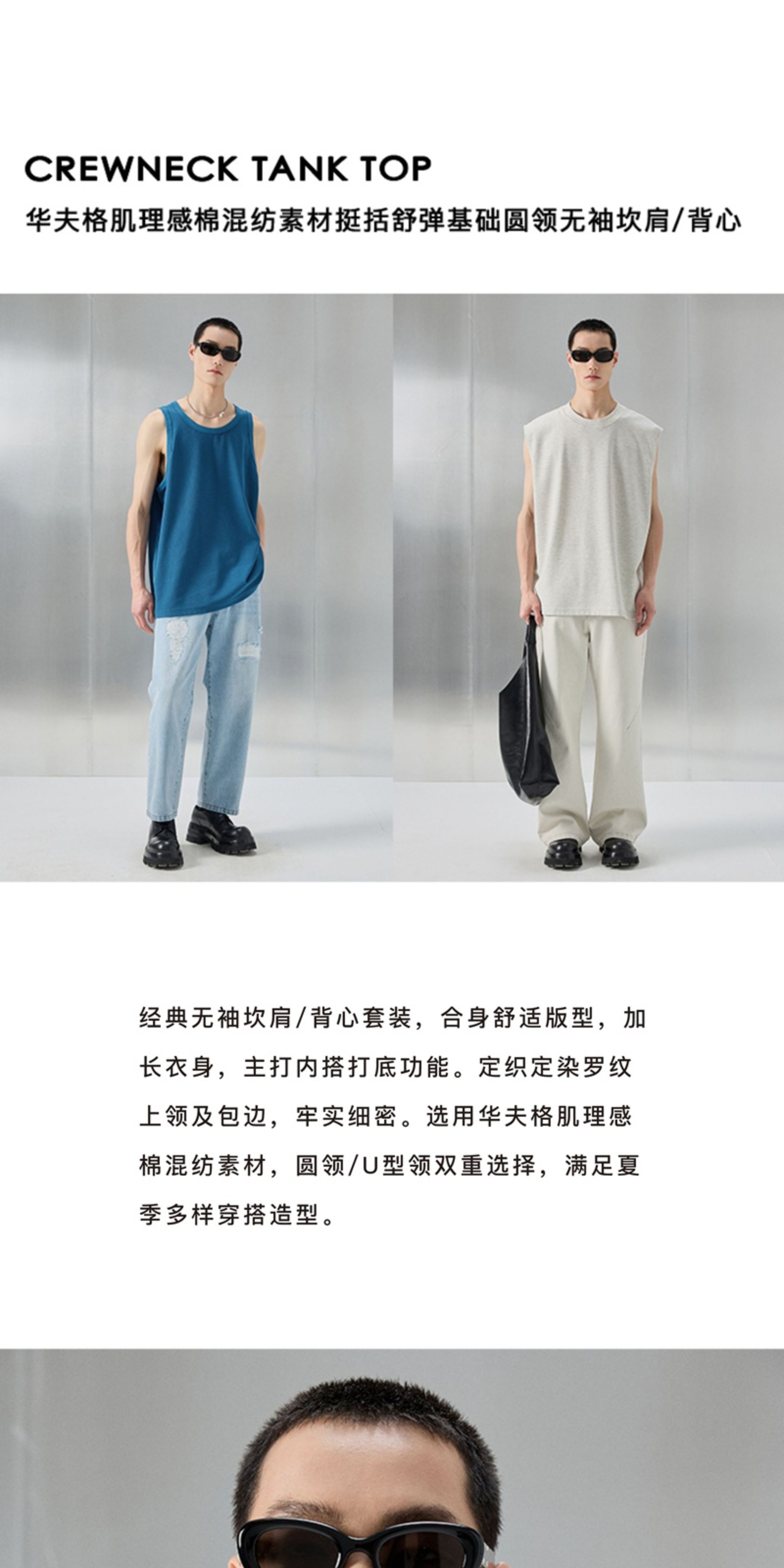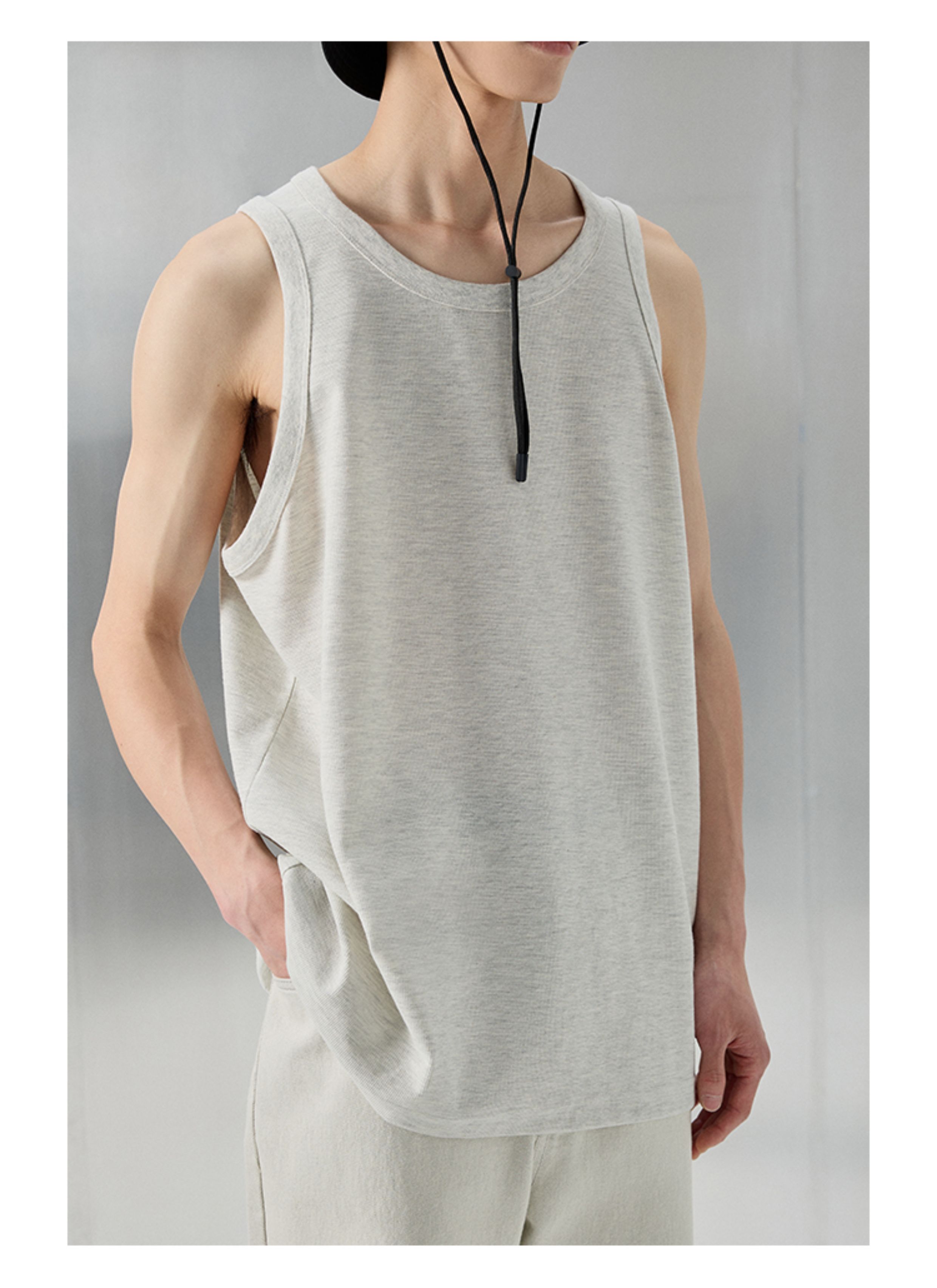 【Nans】Waffle Texture Cotton Blend Material, Crisp and Stretchy, Basic Round Neck Sleeveless Vest/Tank Top