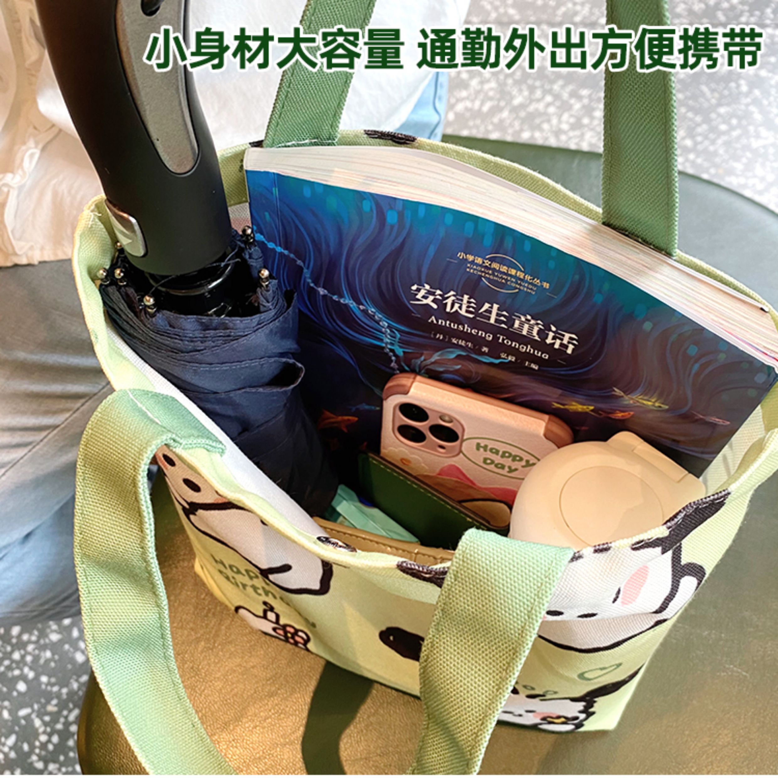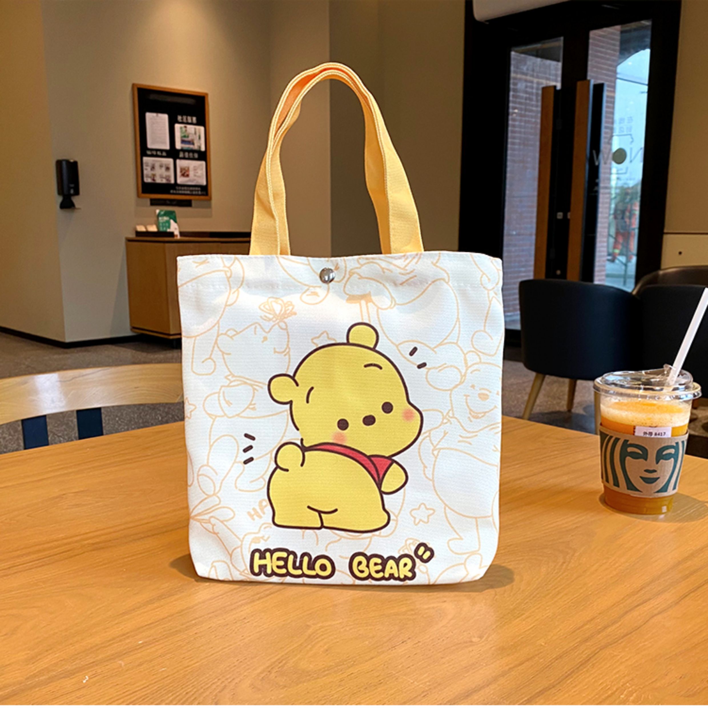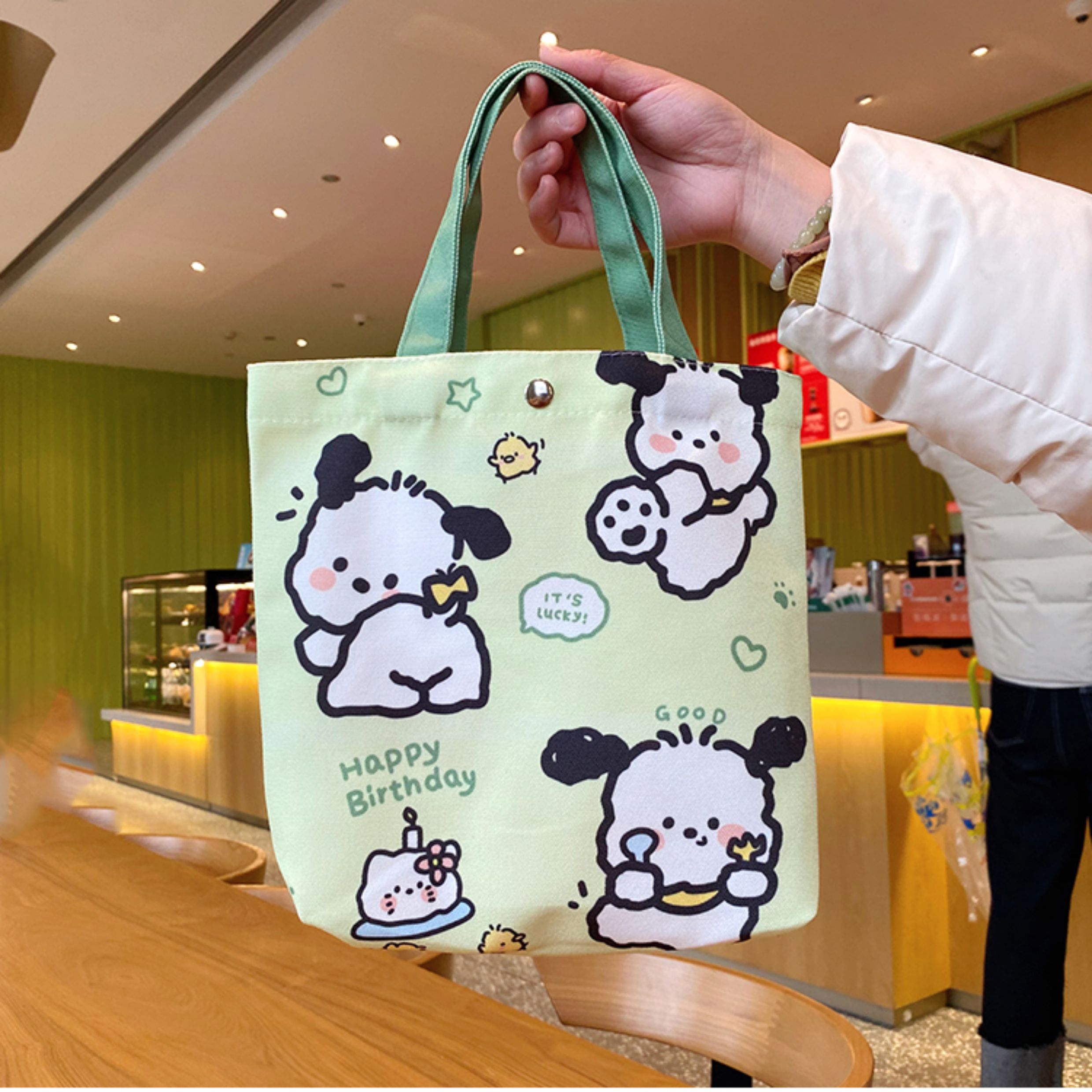 Jiyikawa Canvas Bag Small Portable Water Bottle Student Handbag Document Work Commute Cartoon Tote Bag