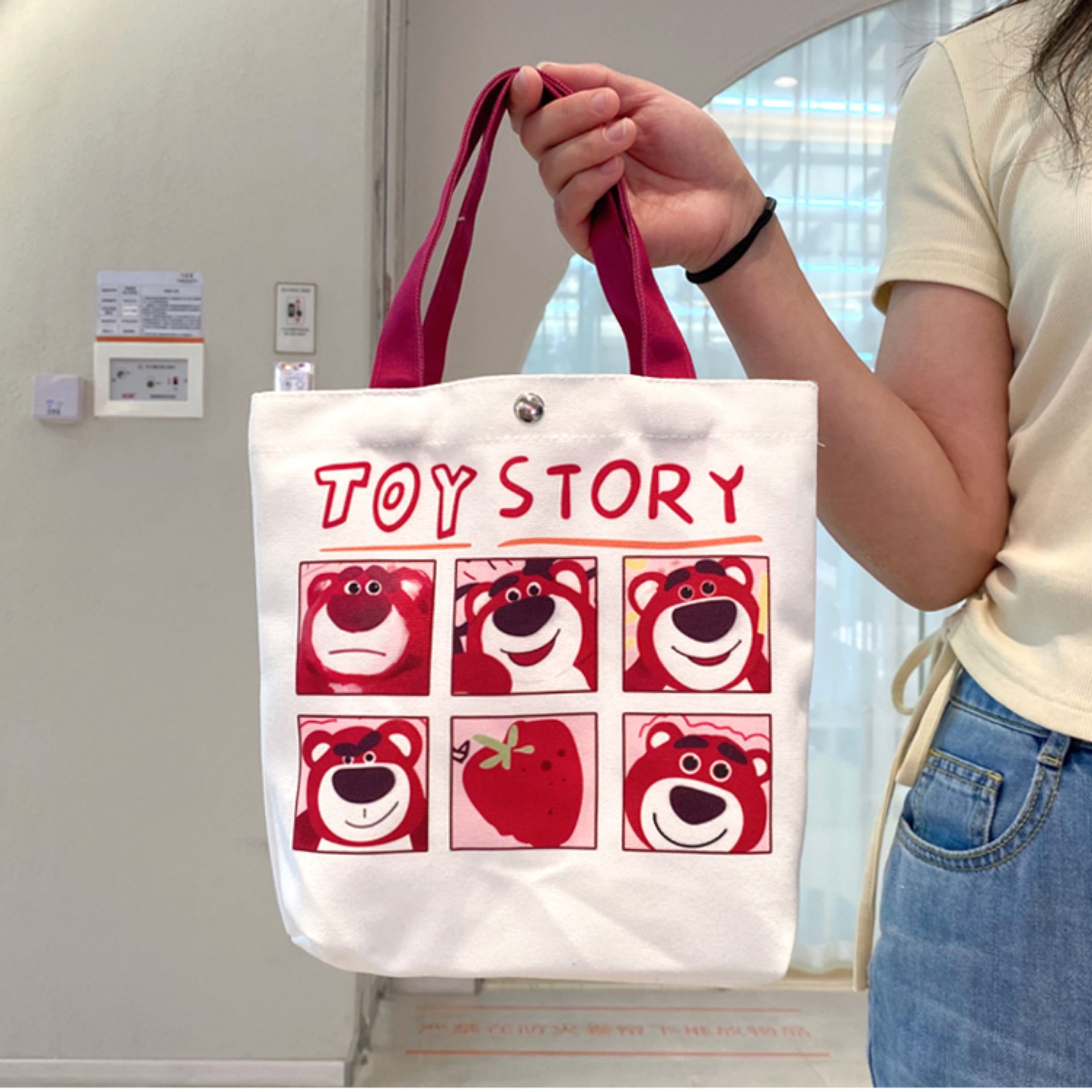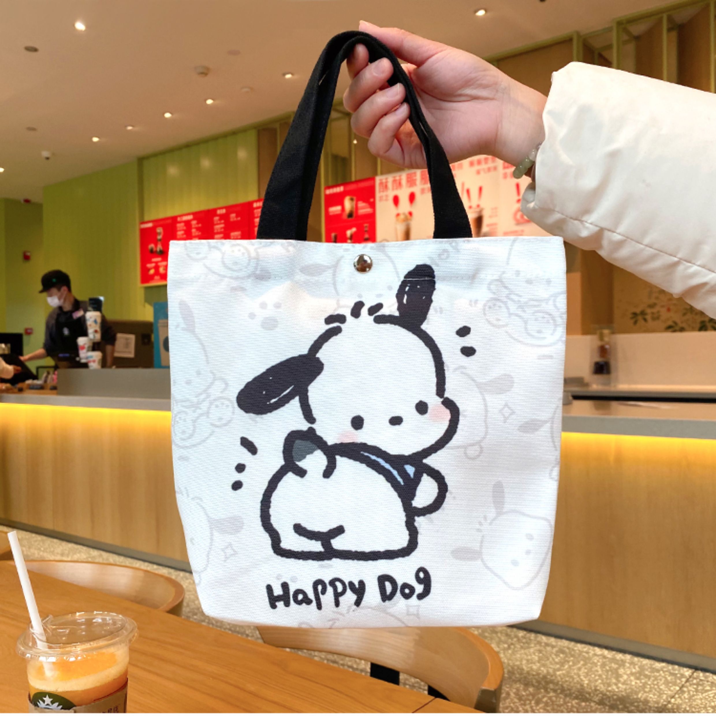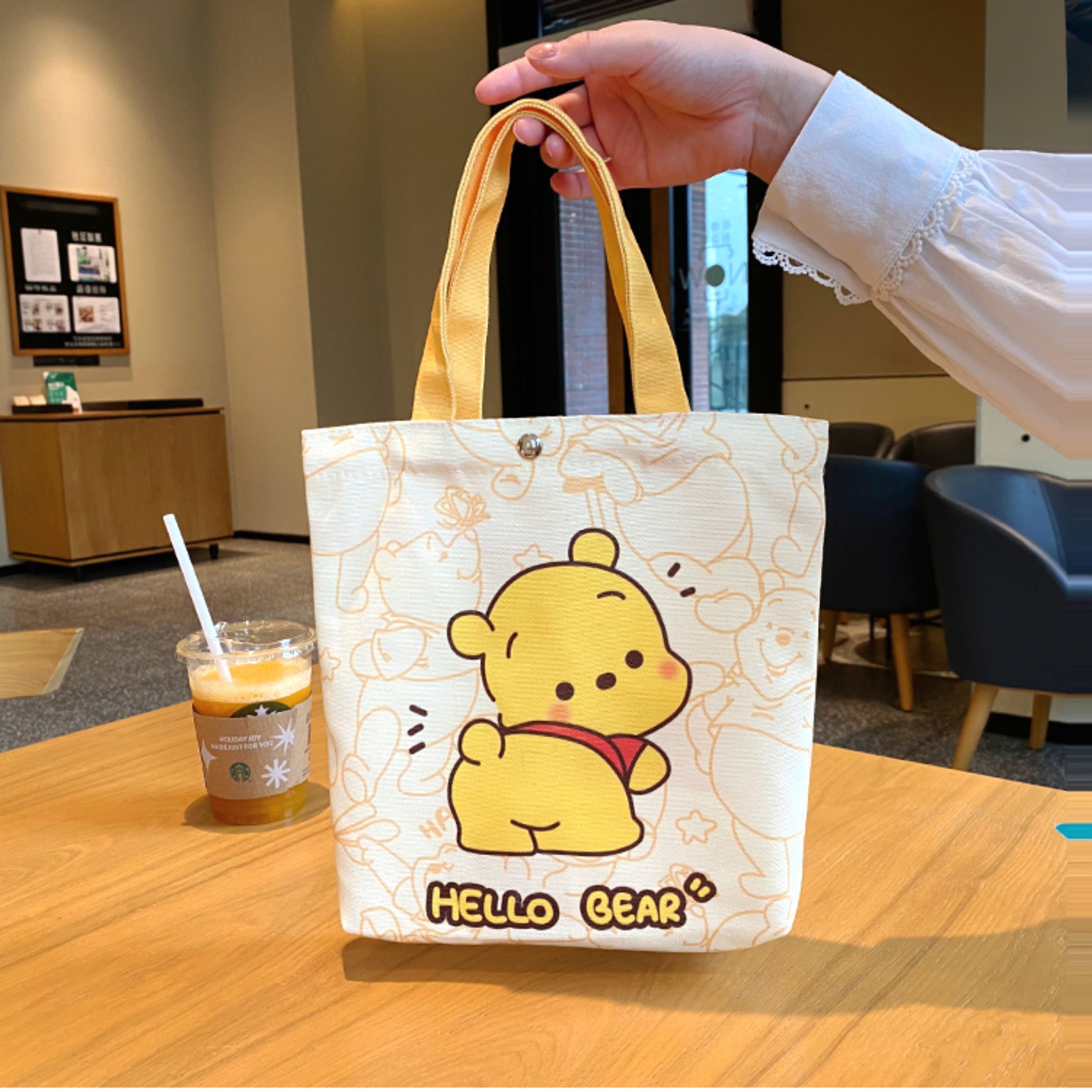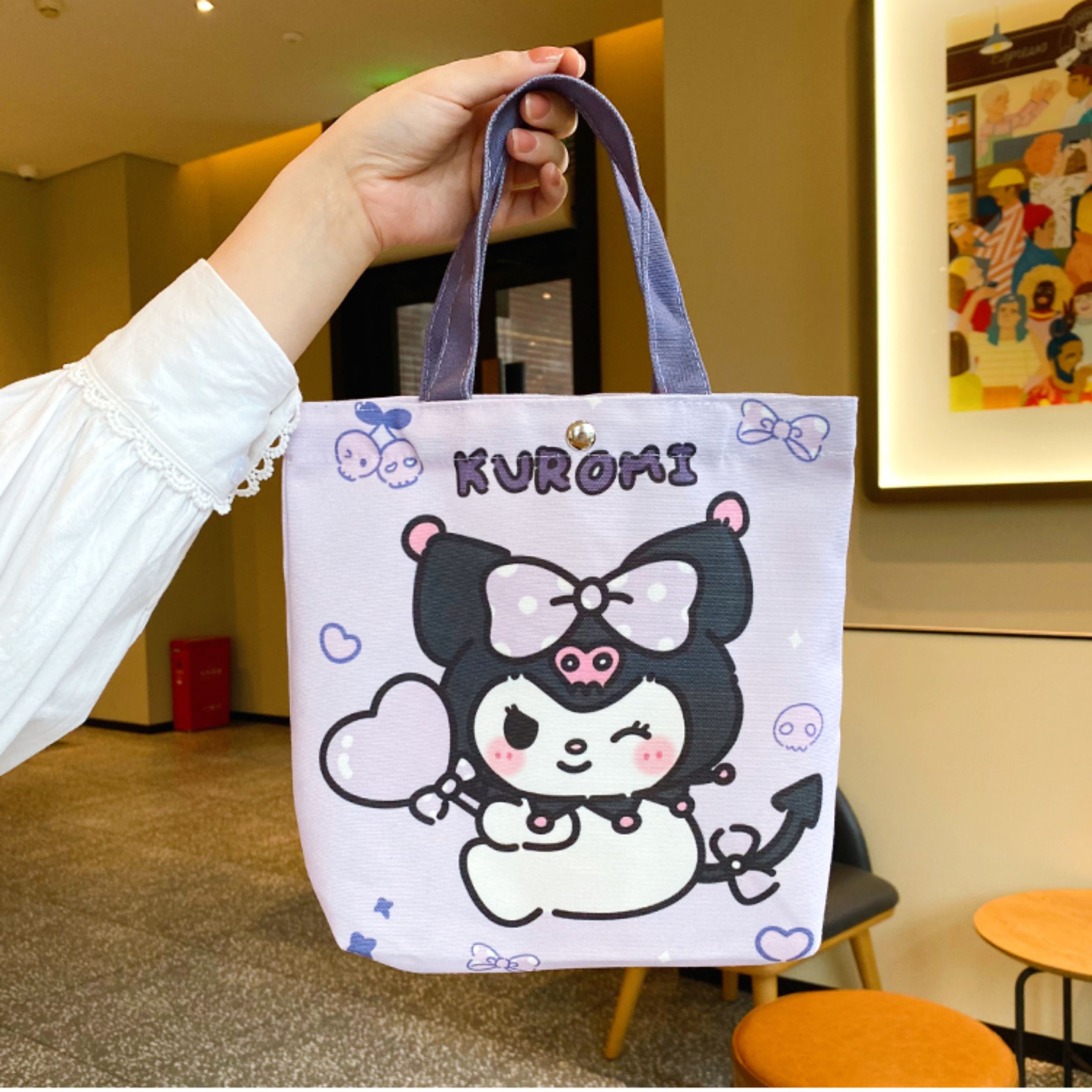 Jiyikawa Canvas Bag Small Portable Water Bottle Student Handbag Document Work Commute Cartoon Tote Bag