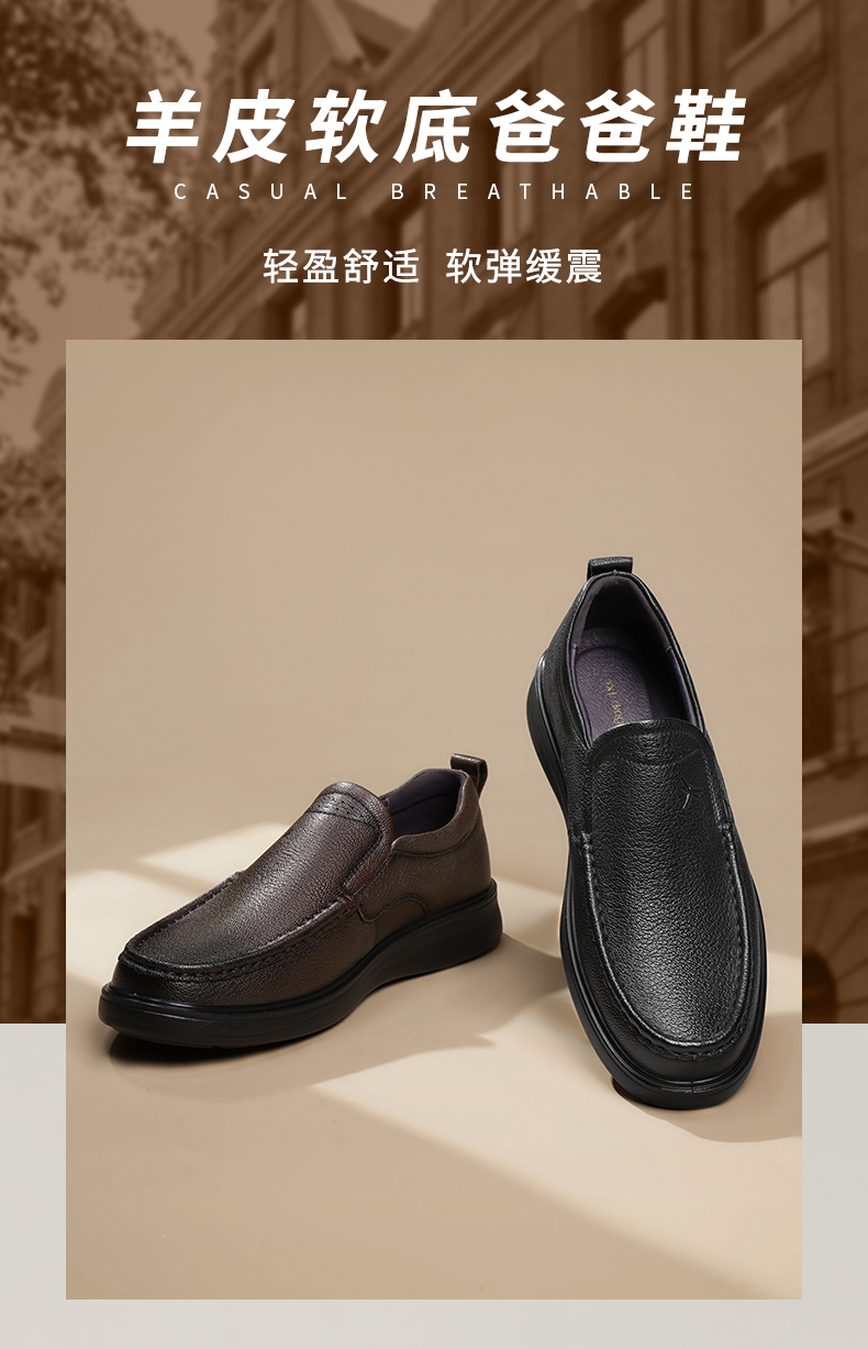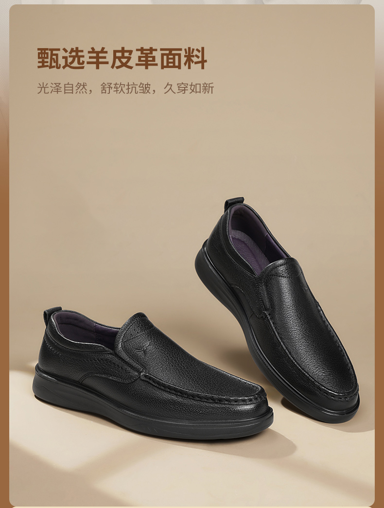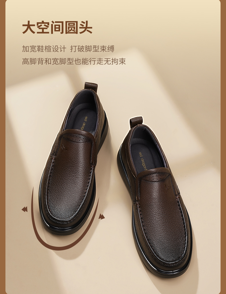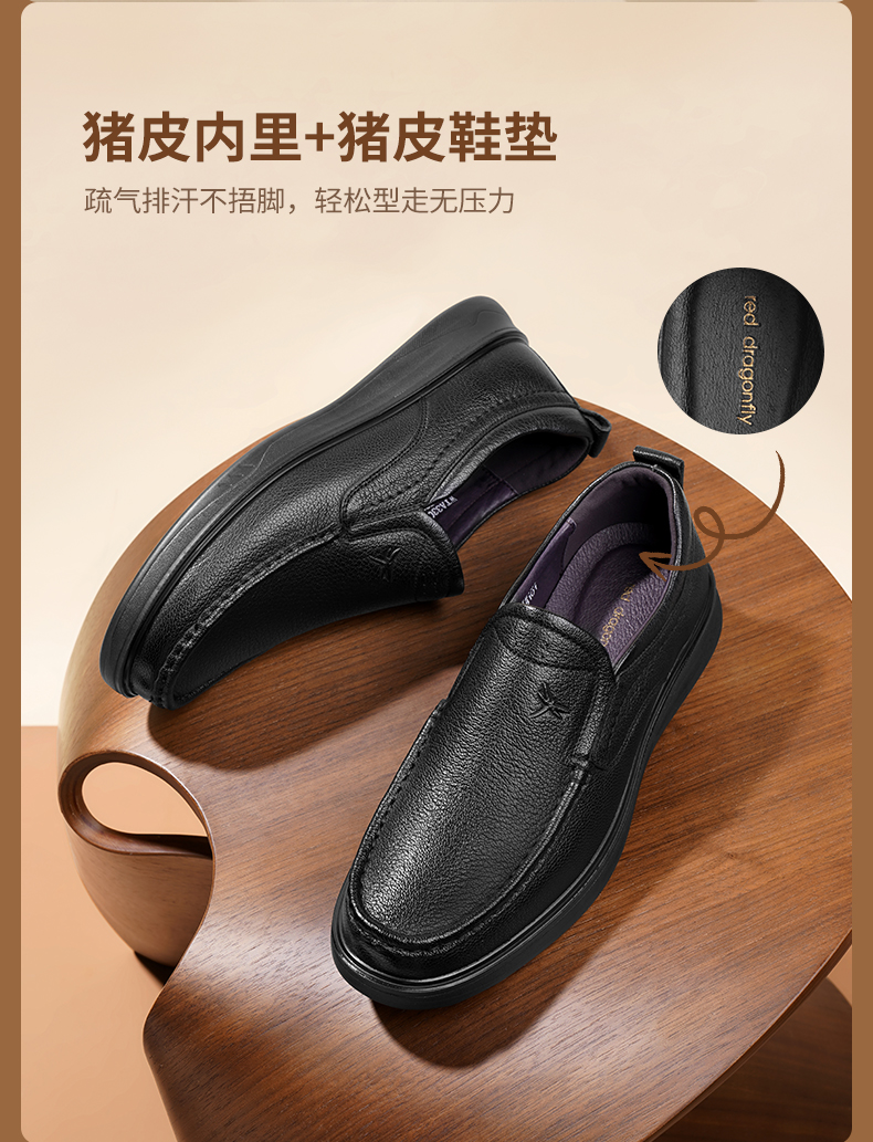Red Dragonfly Dad Men's Leather Shoes Autumn Slip-On Genuine Leather Men's Shoes Comfortable Middle-Aged and Elderly Men's Large Size Shoes