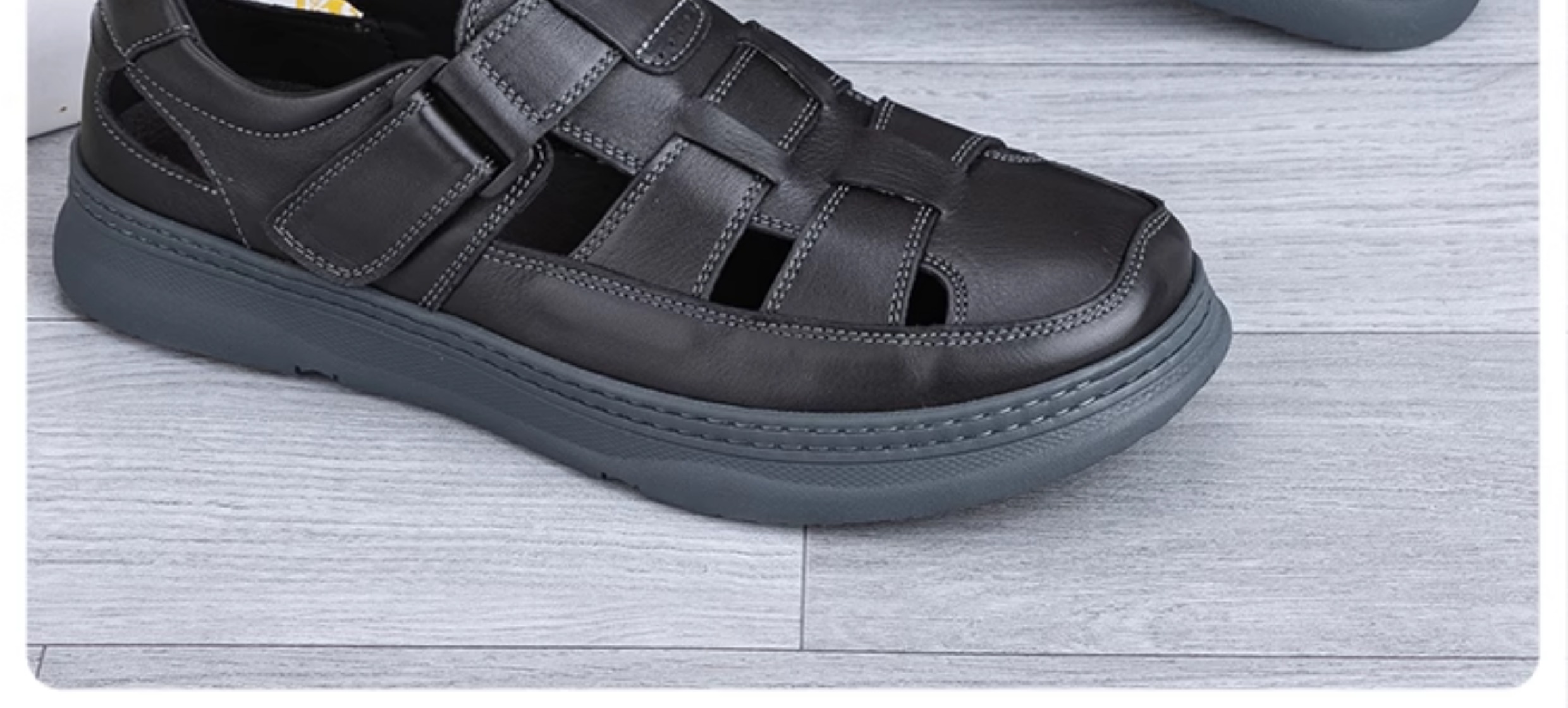 Genuine Leather Sandals Summer Breathable First-Layer Cowhide Soft-Soled Soft-Surface Casual Shoes Clogs Lightweight Thick-Soled Cut Out Men's Shoes