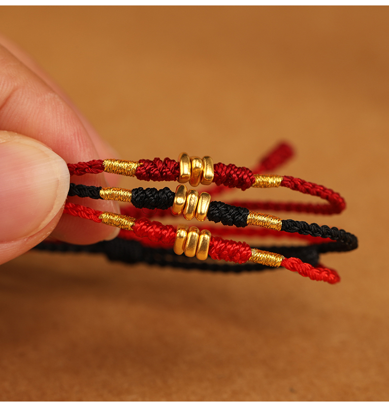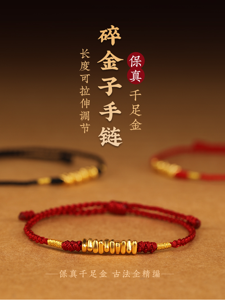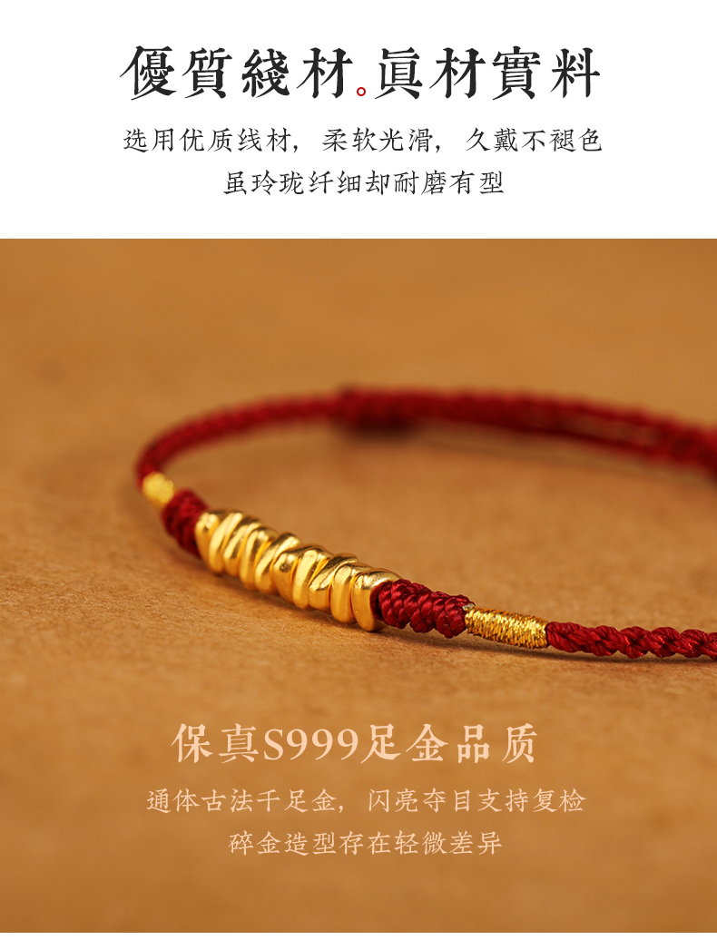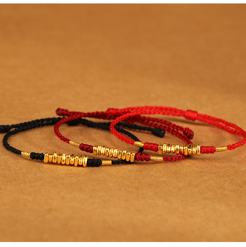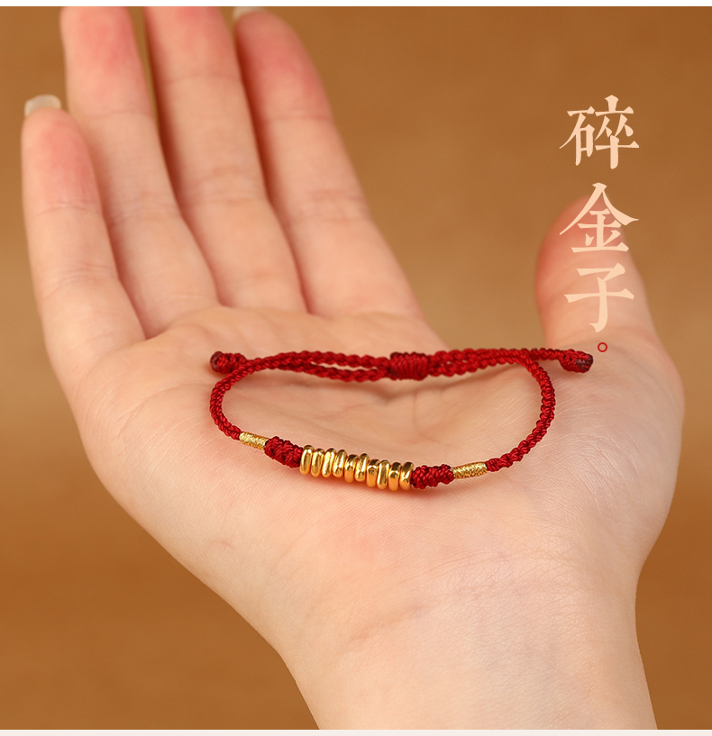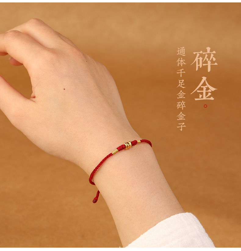 999 Pure Gold Red Rope Braided Broken Gold Bracelet for Women 24K Gold Couple's Birth Year Good Luck Small Bracelet for Men
