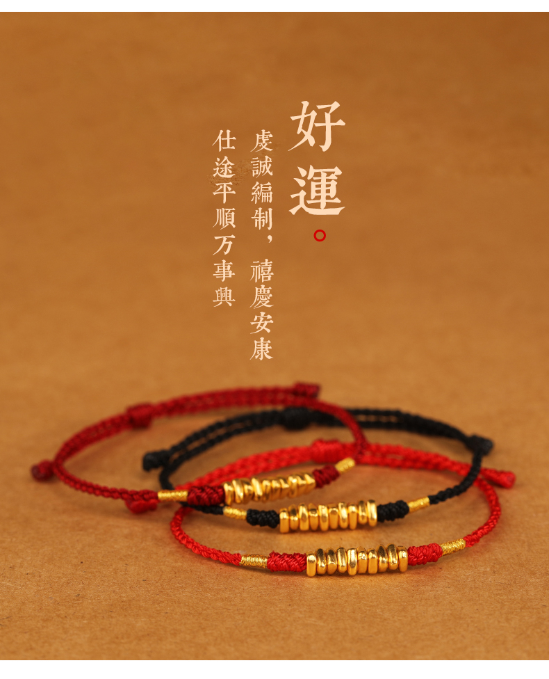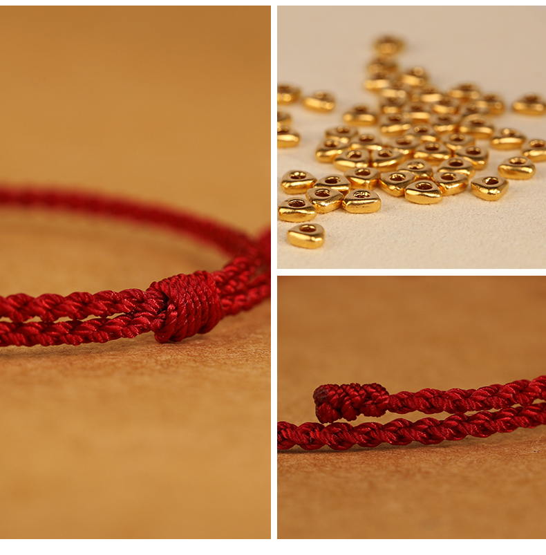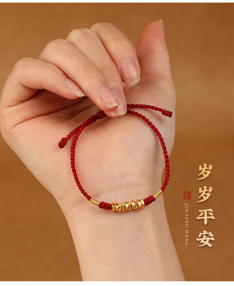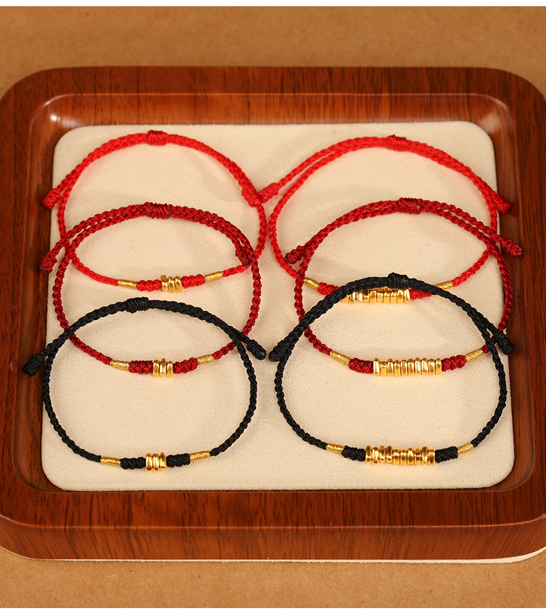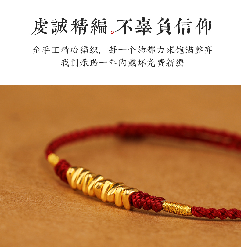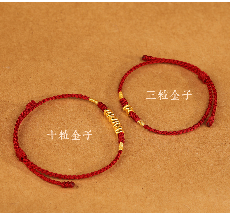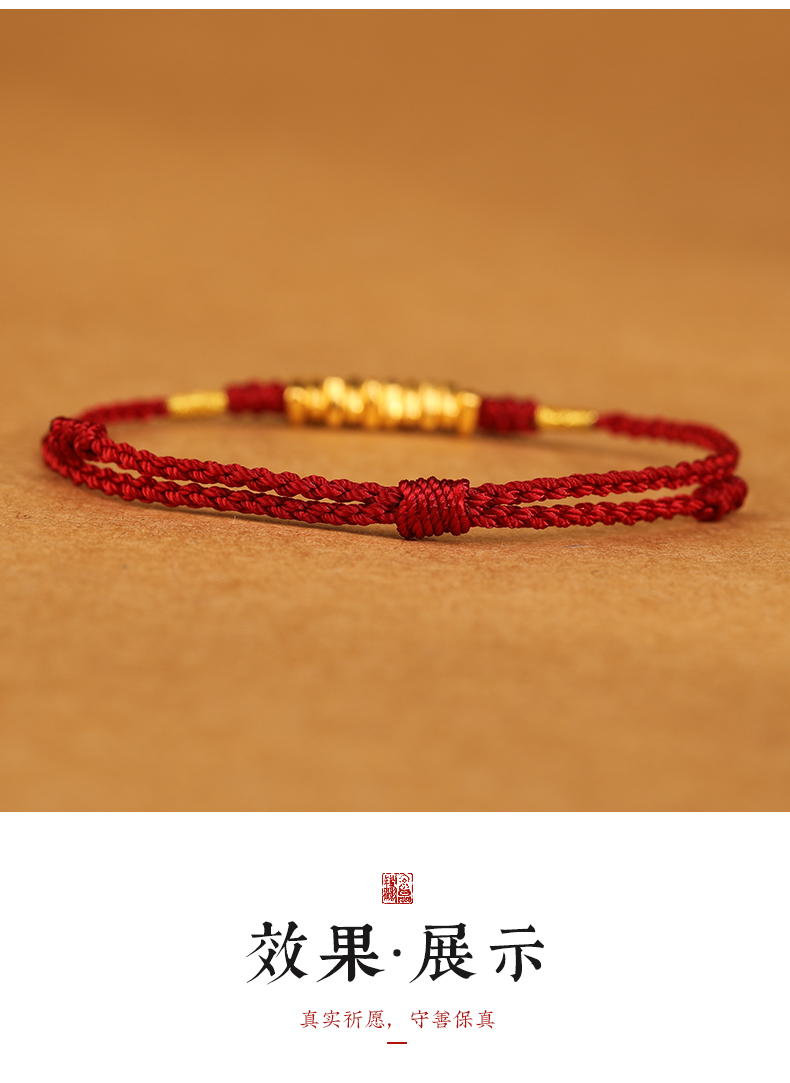 999 Pure Gold Red Rope Braided Broken Gold Bracelet for Women 24K Gold Couple's Birth Year Good Luck Small Bracelet for Men